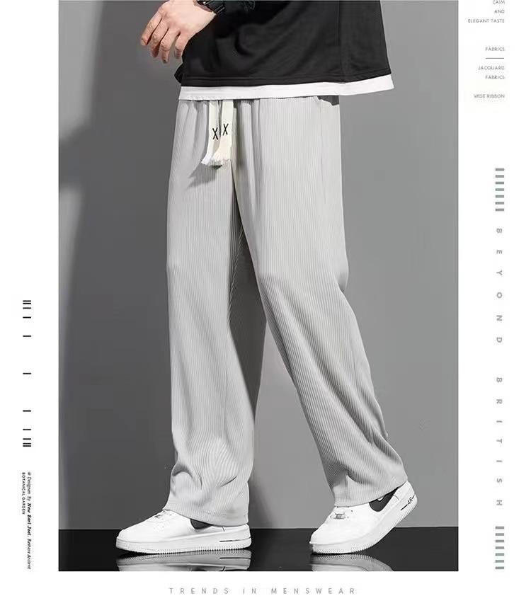 Compra Pantalones para hombre, verano 2025, nuevo estilo americano, rectos, frescos, de seda helada, de pierna ancha, casuales, sueltos, de color sólido, deportivos. al por mayor en Joom.pro
