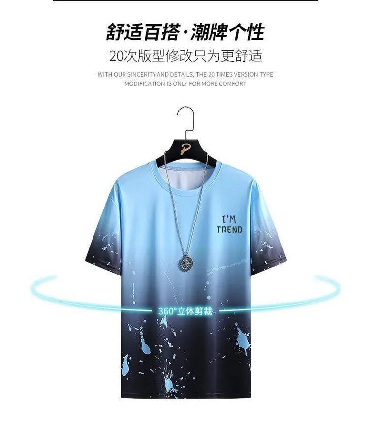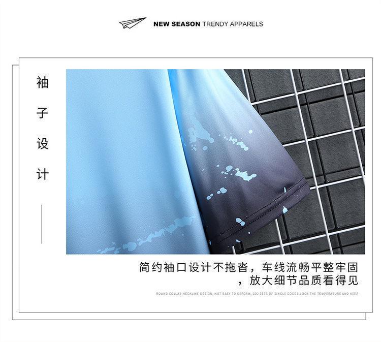 Nuevo traje de seda de hielo degradado de secado rápido, camiseta de manga corta para hombre, pantalones cortos casuales de verano, ropa deportiva de dos piezas para hombre atractivo