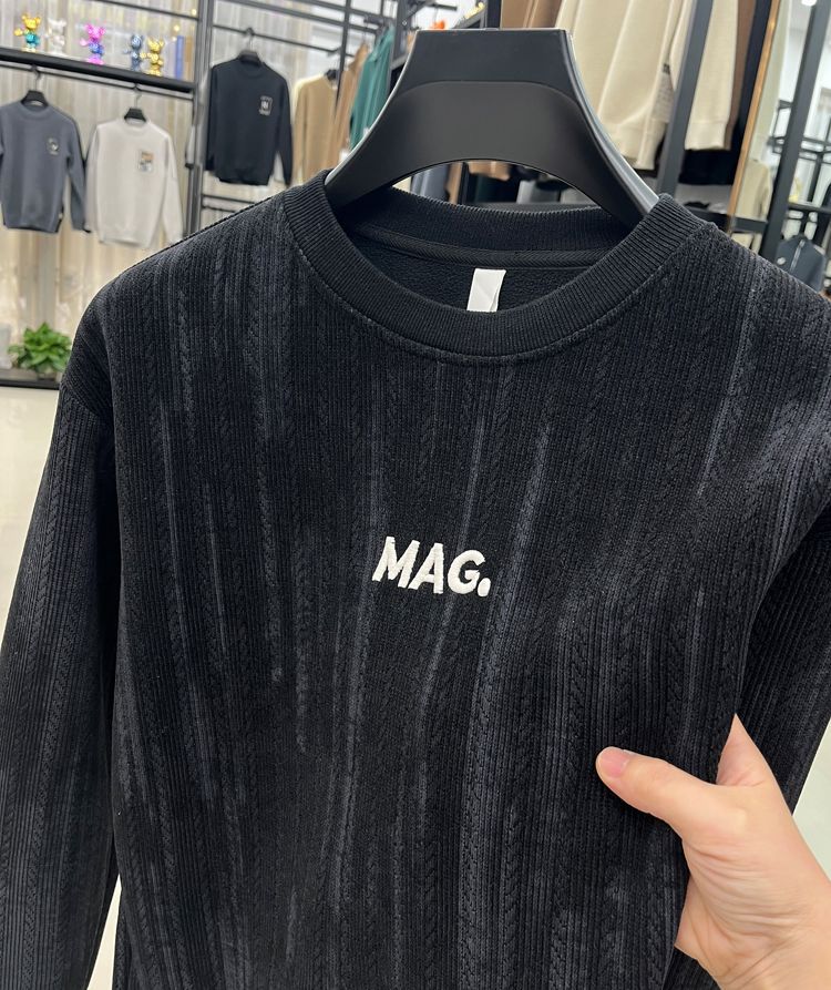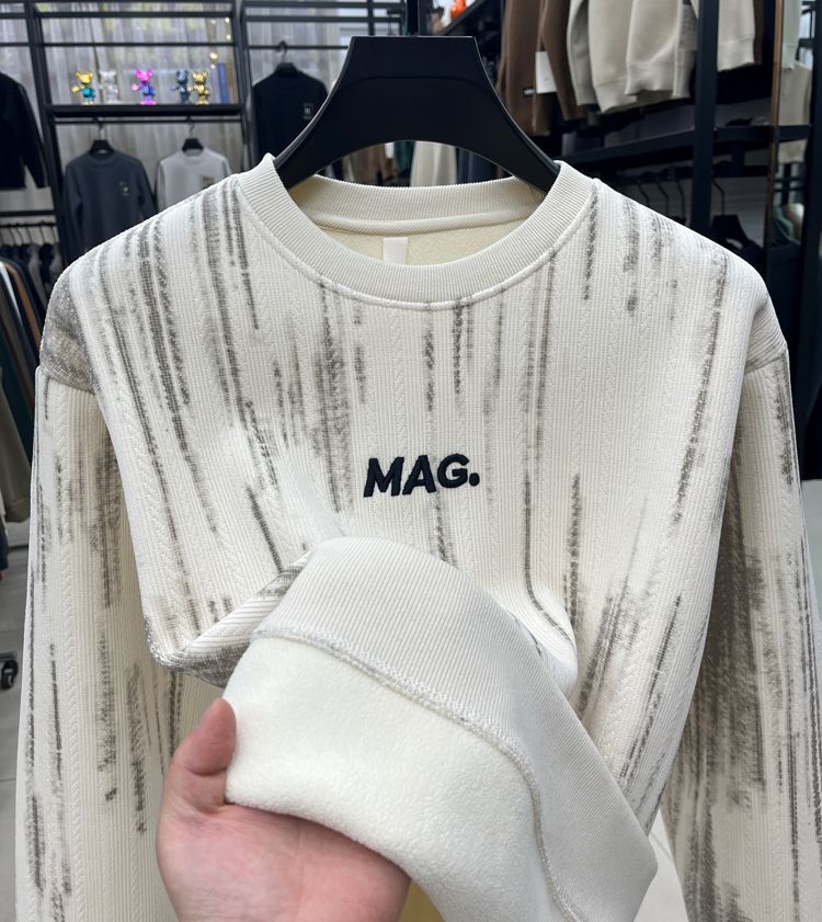 Moda Otoño e Invierno Suéter de Manga Larga para Hombre de Una Pieza con Forro Polar Grueso Cálido Suéter Juvenil Cuello Redondo Suéter de Moda