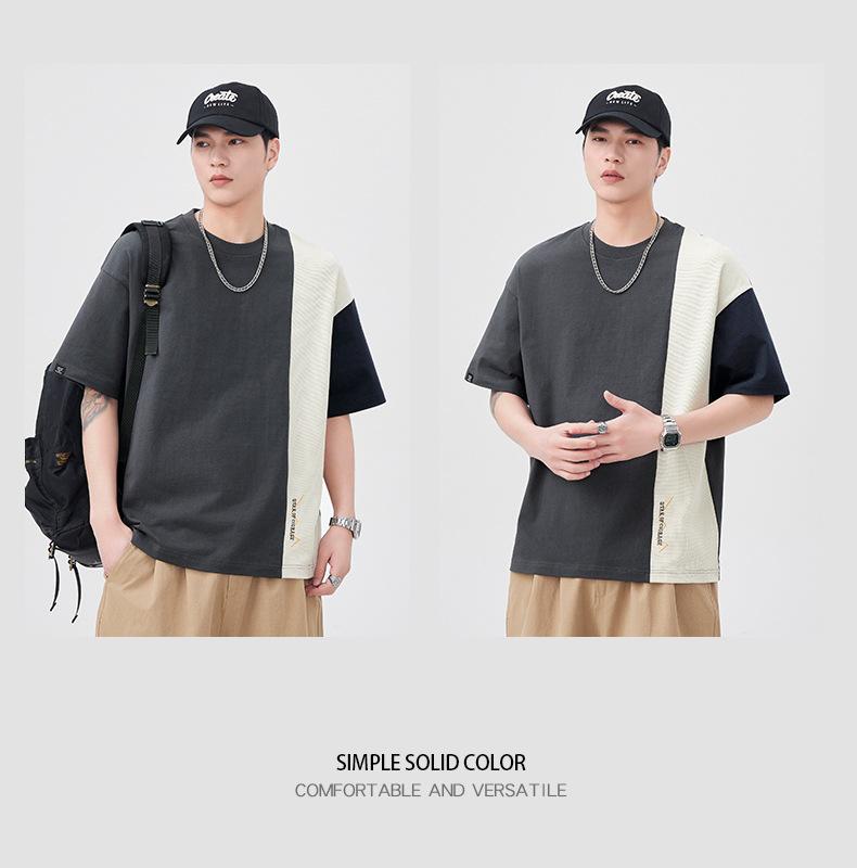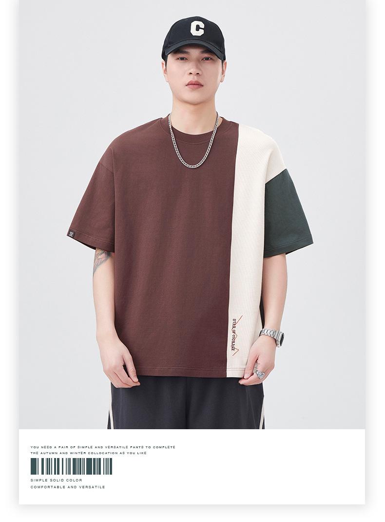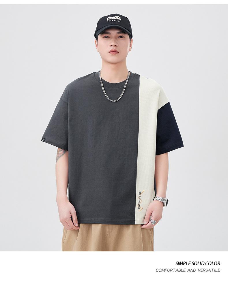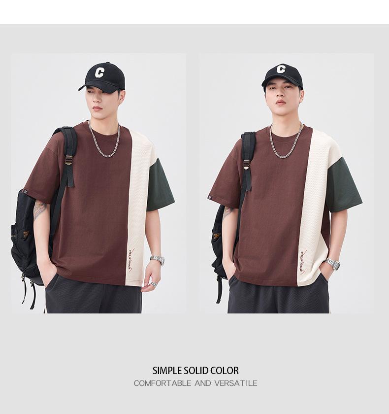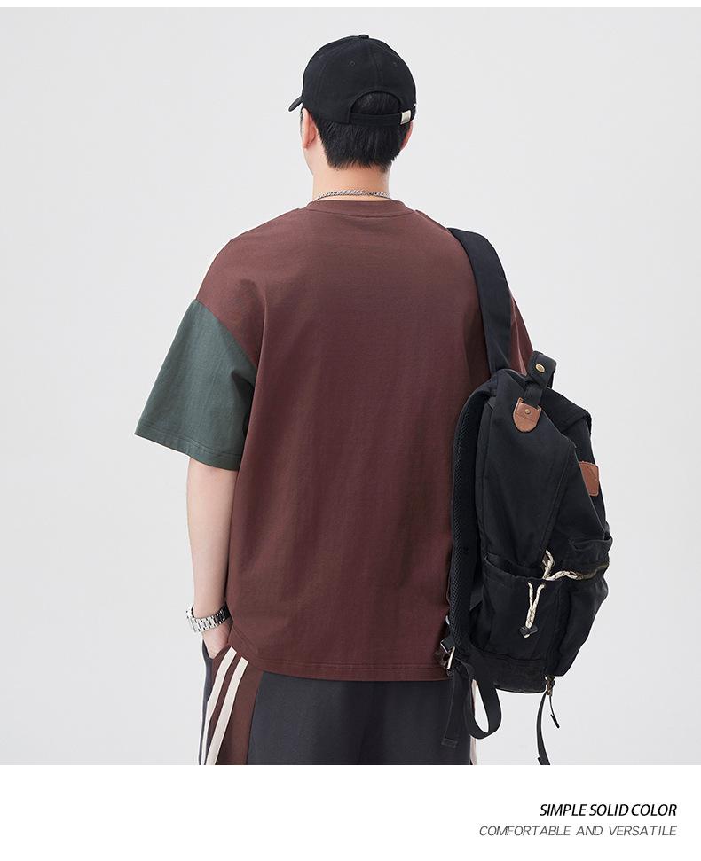 Diseño de combinación de colores manga corta para hombre verano 2025 nuevo americano retro 250g camiseta pesada para hombre top holgado para hombre