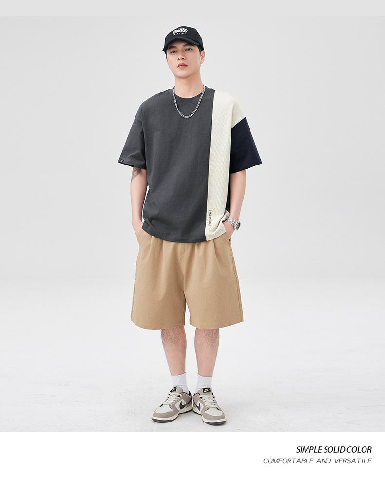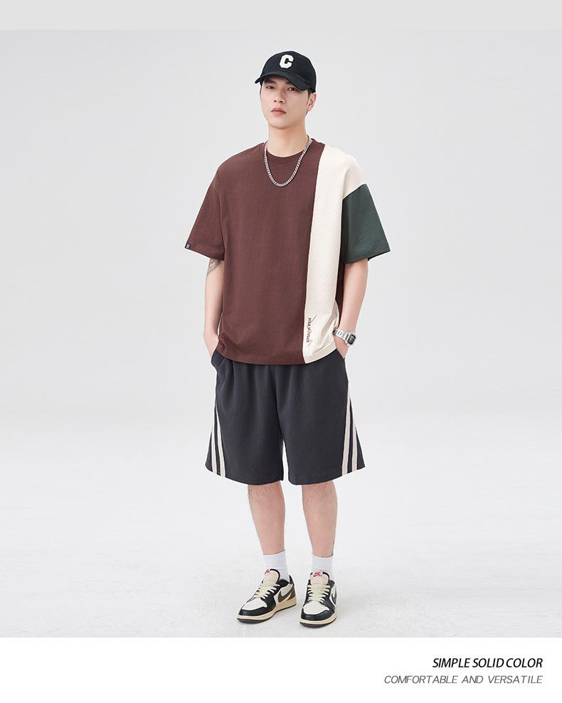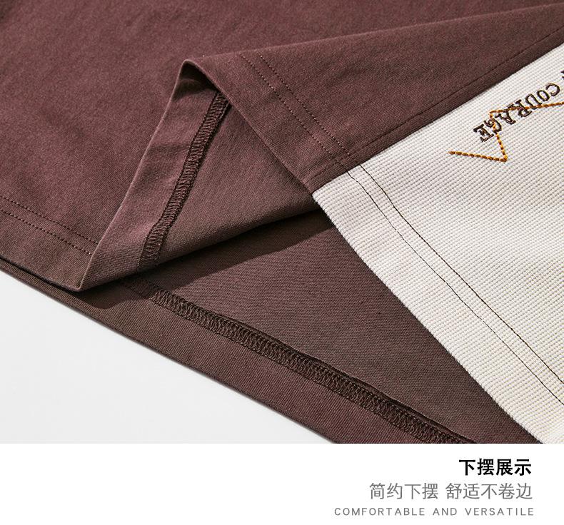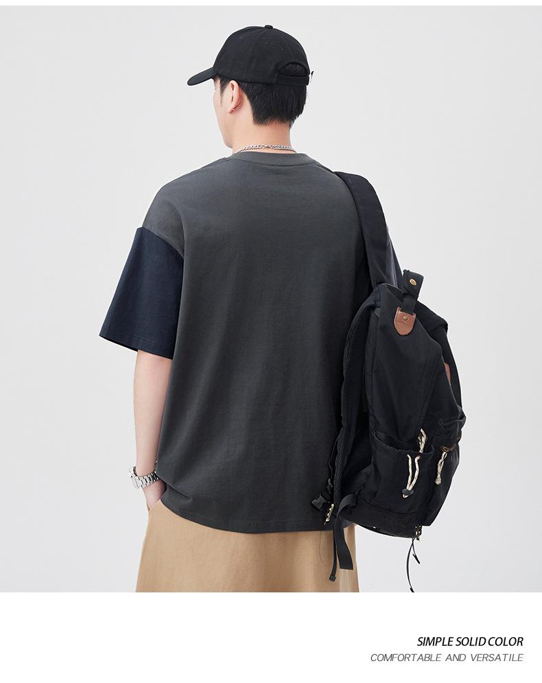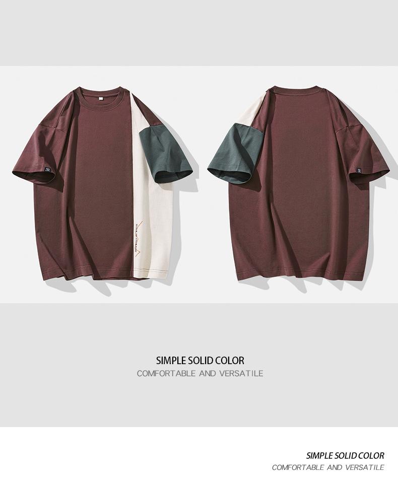 Diseño de combinación de colores manga corta para hombre verano 2025 nuevo americano retro 250g camiseta pesada para hombre top holgado para hombre