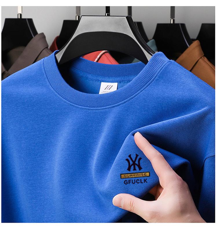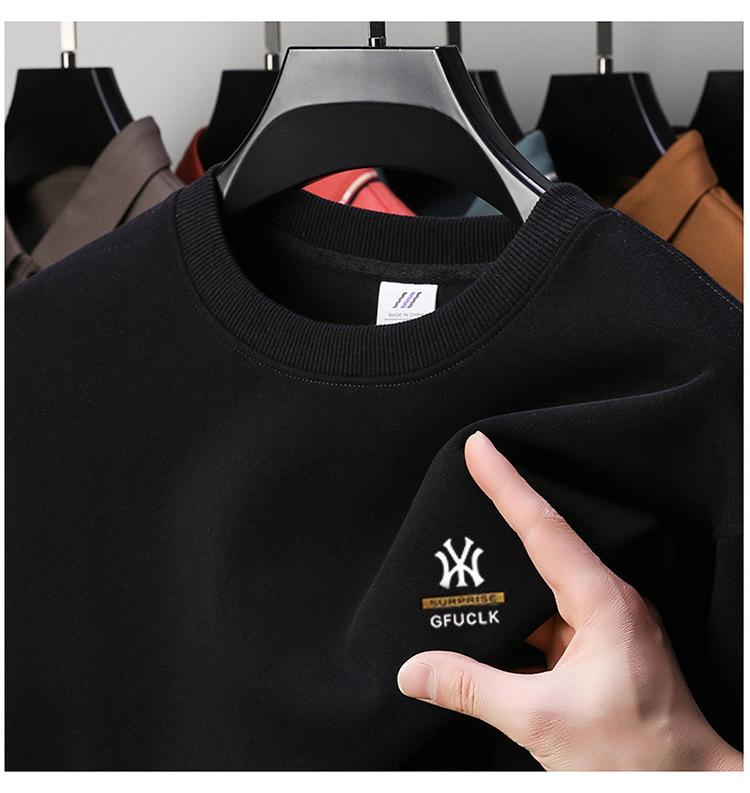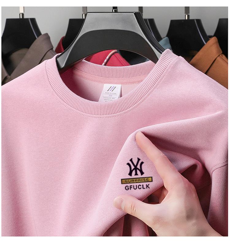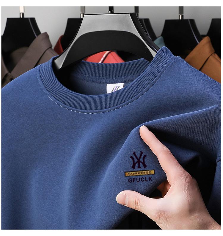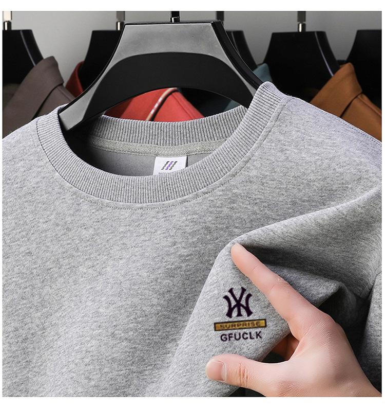 Suéter de algodón grueso para hombre, primavera 2025, nuevo, juvenil, cuello redondo, manga larga coreana, básico para hombre