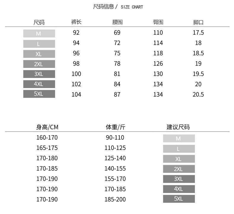 M, L, XL, 2XL, 3XL, 4XL, 5XL