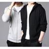 Suéter con cremallera de otoño e invierno para hombre, suéter con capucha y forro polar de color liso, top combinable, cárdigan deportivo informal de moda coreana