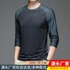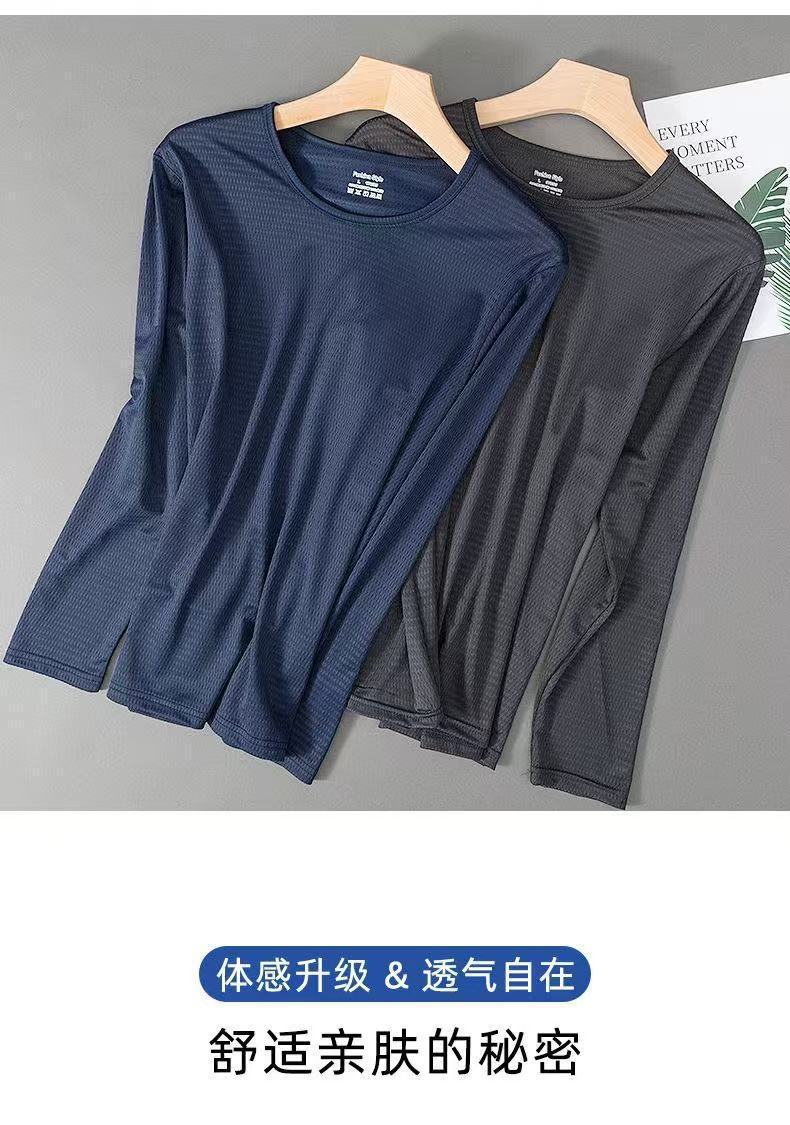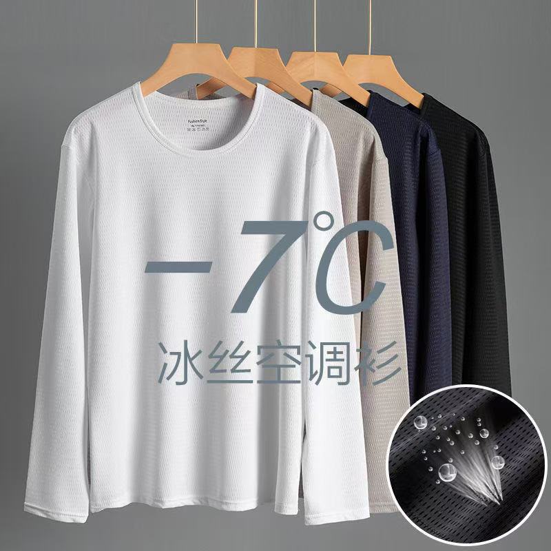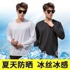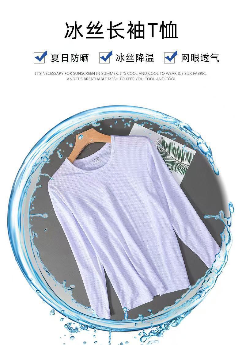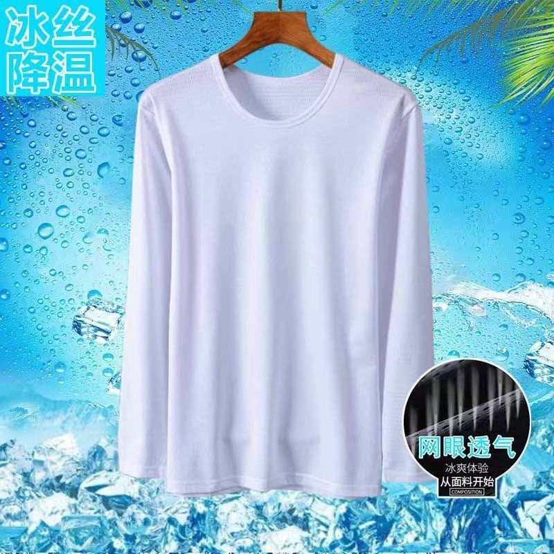 Camiseta de Manga Larga para Hombre de Malla de Color Sólido Seda de Hielo Transpirable Secado Rápido Holgada Ligera Casual Base Protección Solar Ropa de Hombre
