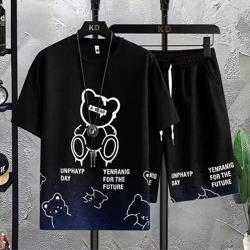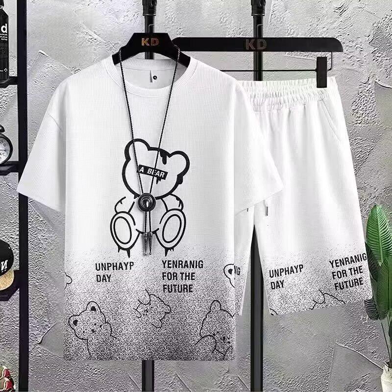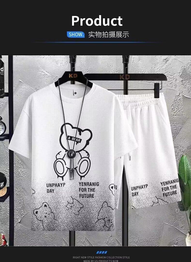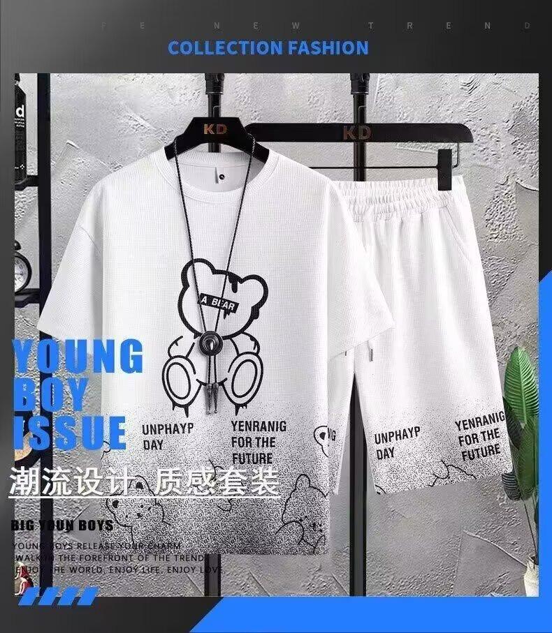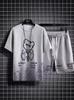 Traje Deportivo Casual Moda de Marca para Hombre Verano Falso de Dos Piezas Manga Corta Talla Extra Conjunto de Ropa para Hombre con Ropa de Estudiante Guapa