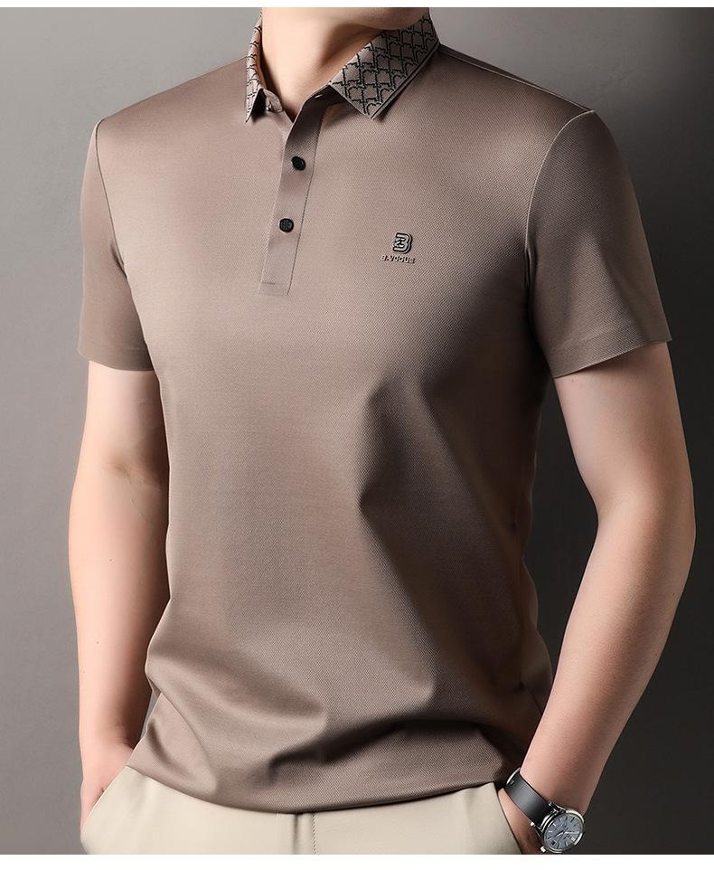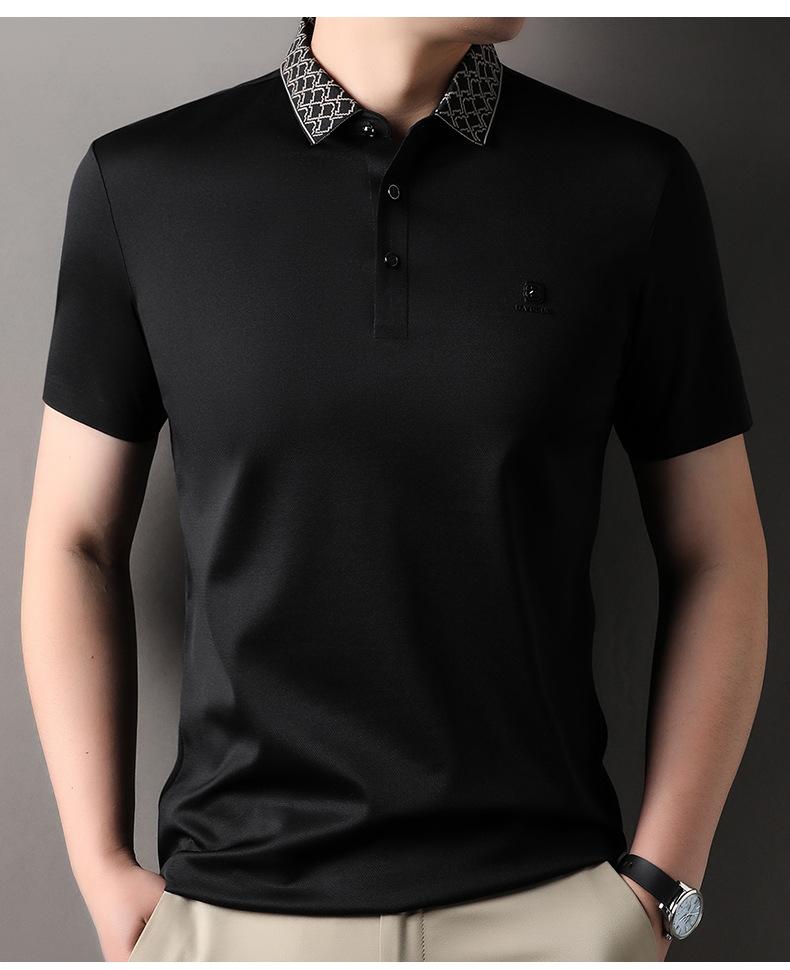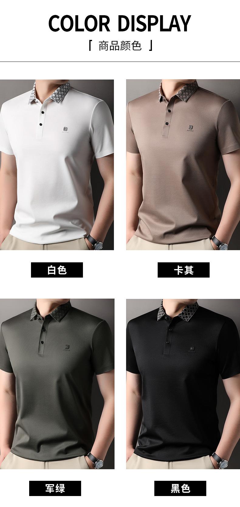 Polo de verano de manga corta para hombre, de seda fría, tacto fresco, sin dejar marcas, informal, ligero, de lujo, fino y transpirable.