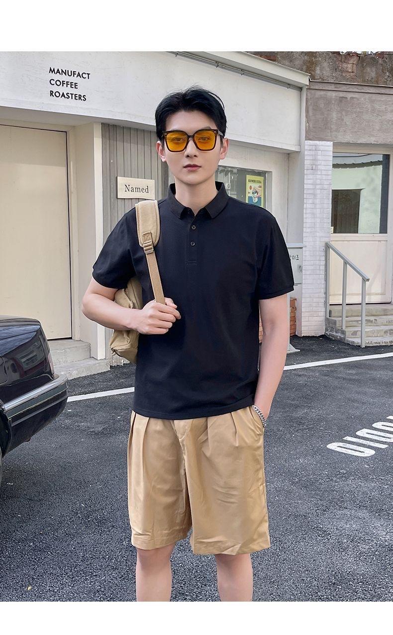 Verano 2025 Nueva Camiseta Polo Hombre Holgada Manga Corta Transpirable Lapp Resistente a las Arrugas Color Sólido Top Delgado de Media Manga