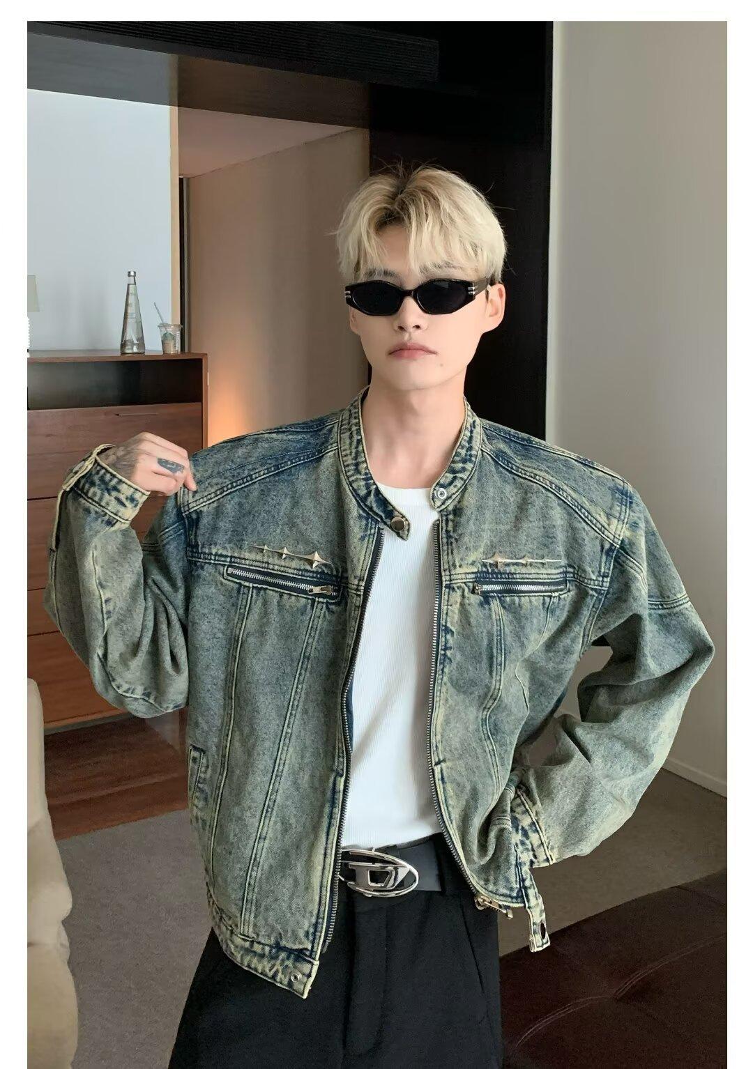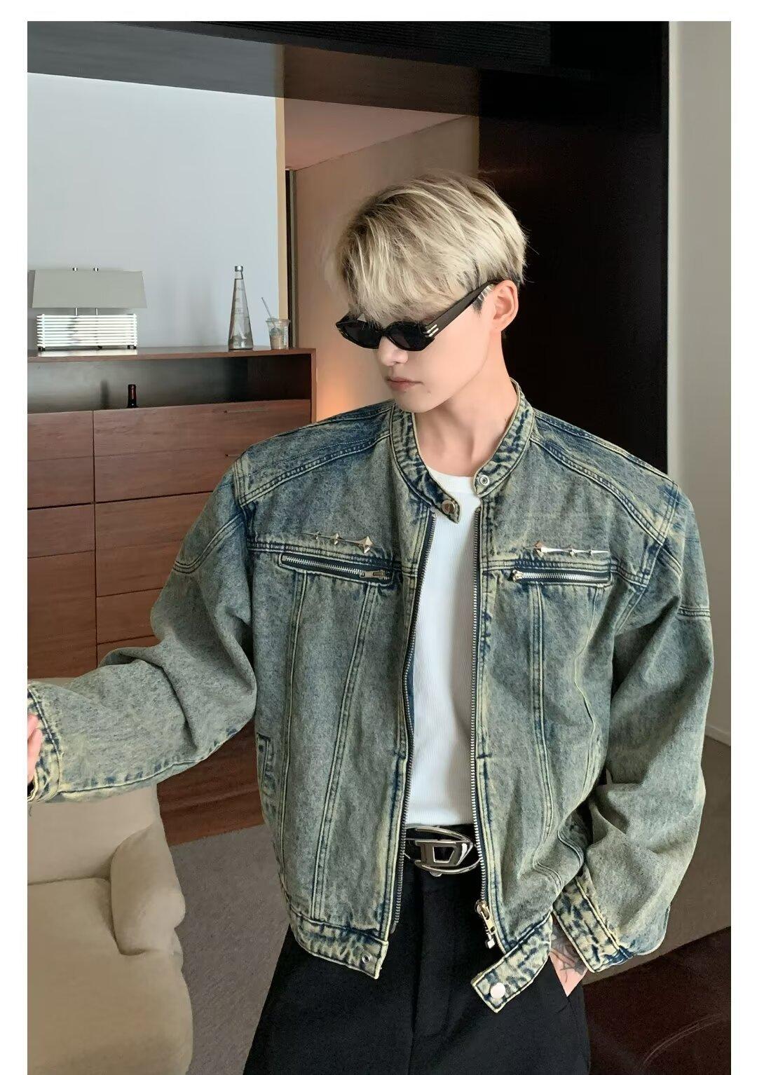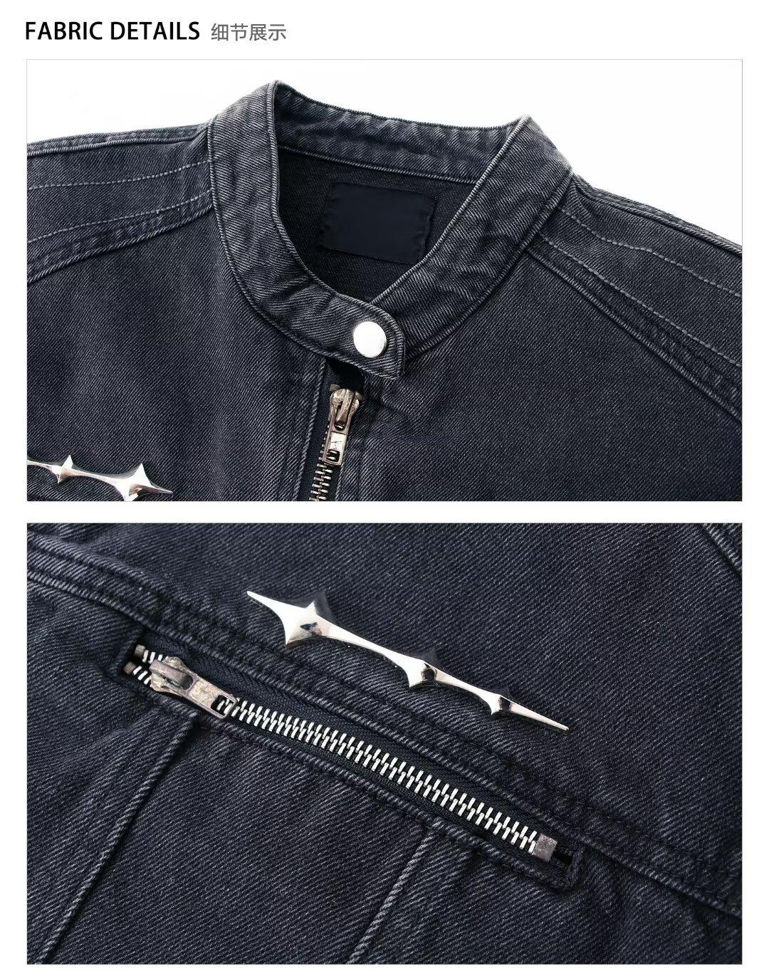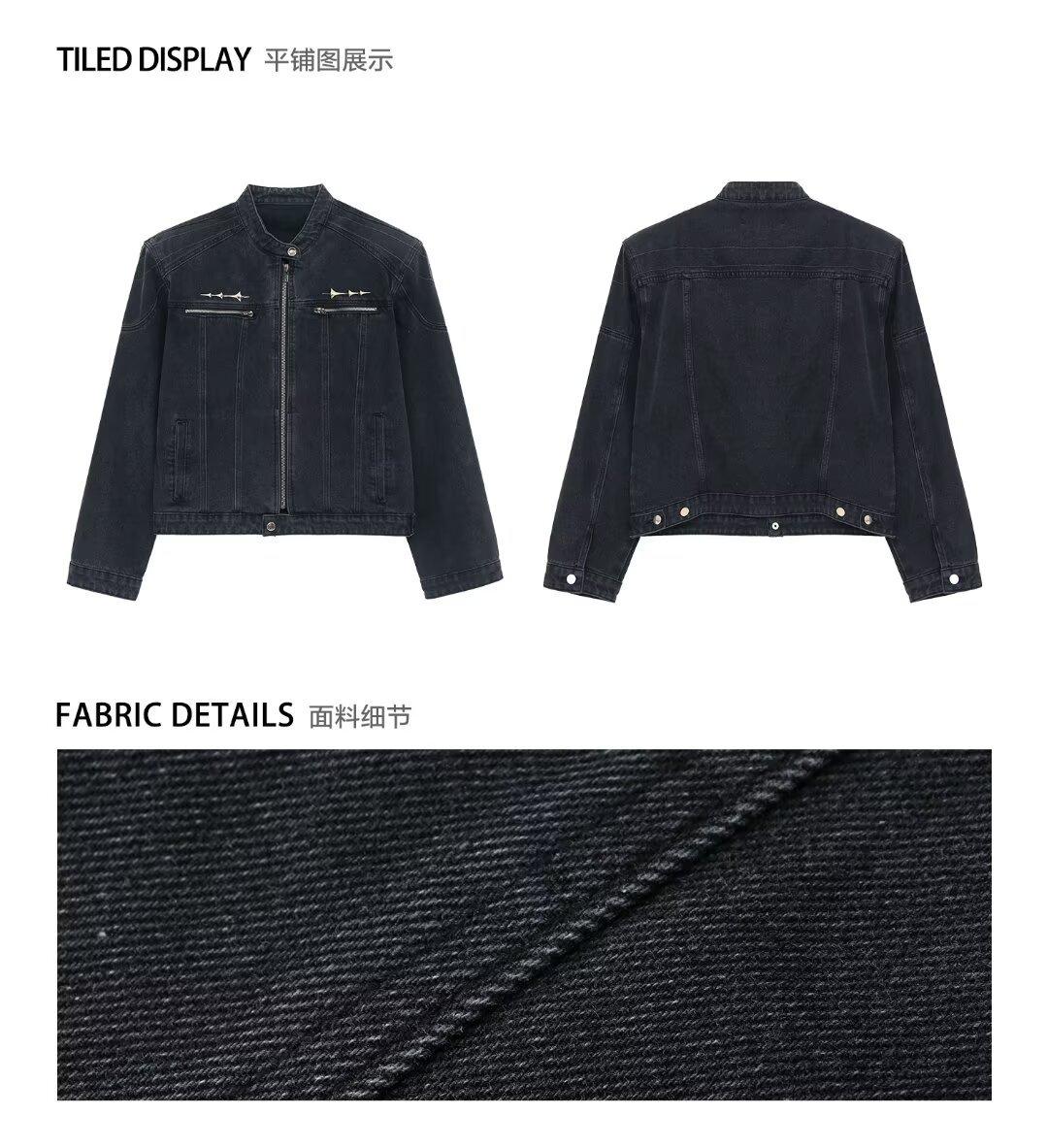 Chaqueta de mezclilla lavada de estilo retro americano para hombres y mujeres, primavera y otoño, diseño de cremallera de nicho, cuello de alta calidad, chaqueta corta