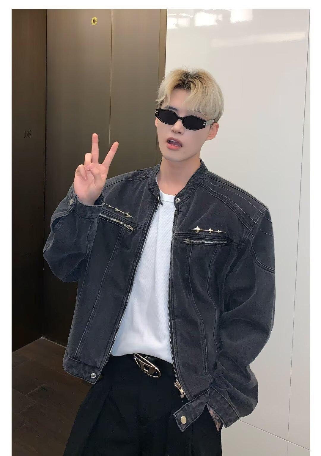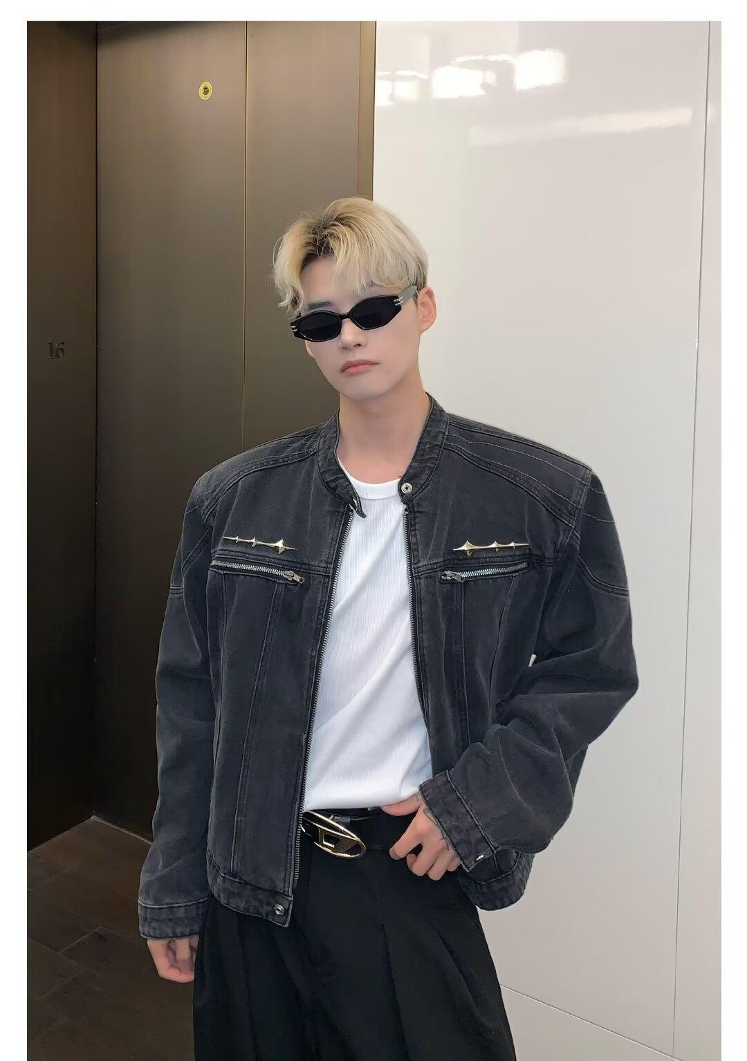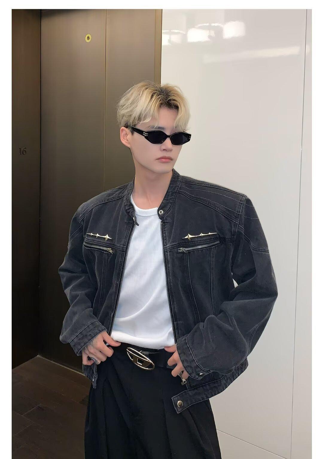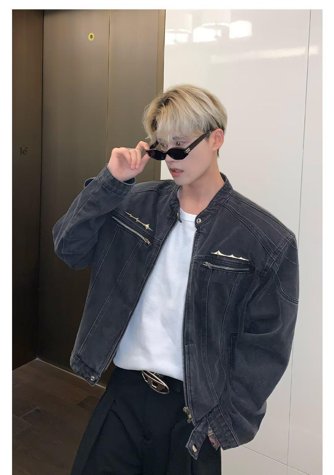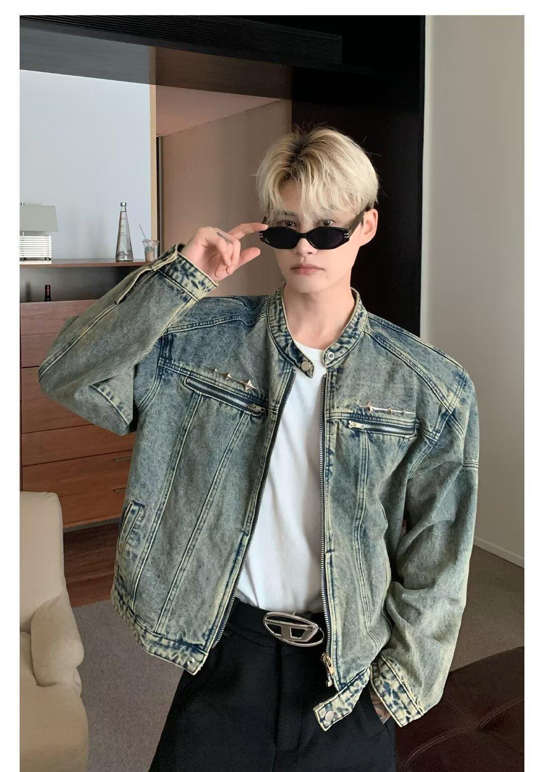 Chaqueta de mezclilla lavada de estilo retro americano para hombres y mujeres, primavera y otoño, diseño de cremallera de nicho, cuello de alta calidad, chaqueta corta