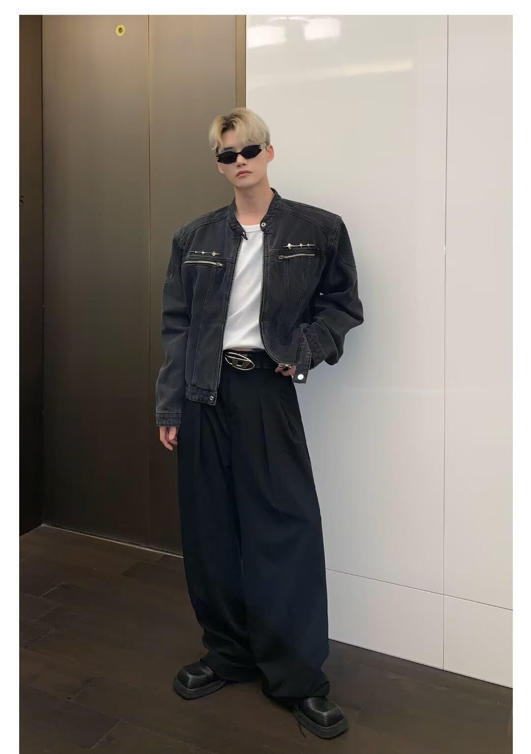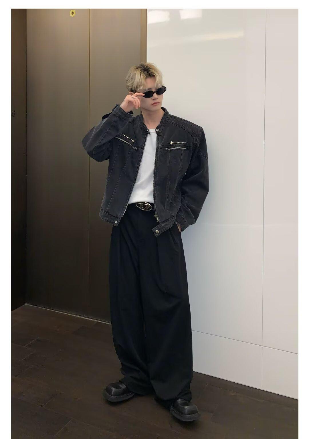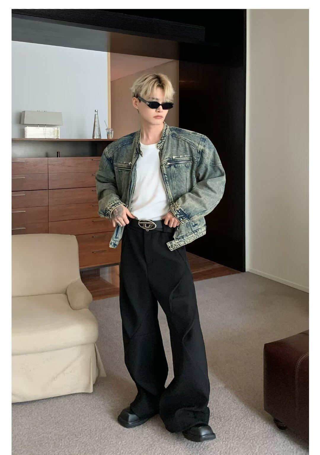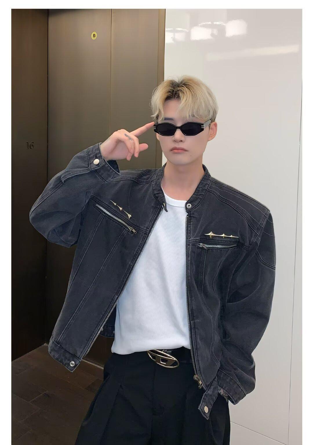Chaqueta de mezclilla lavada de estilo retro americano para hombres y mujeres, primavera y otoño, diseño de cremallera de nicho, cuello de alta calidad, chaqueta corta