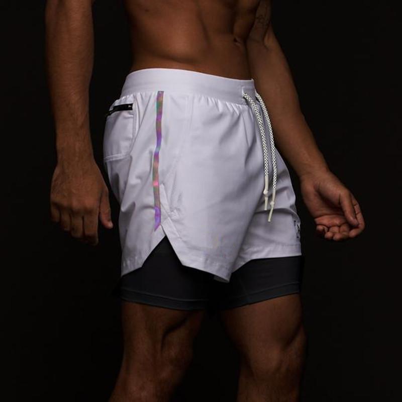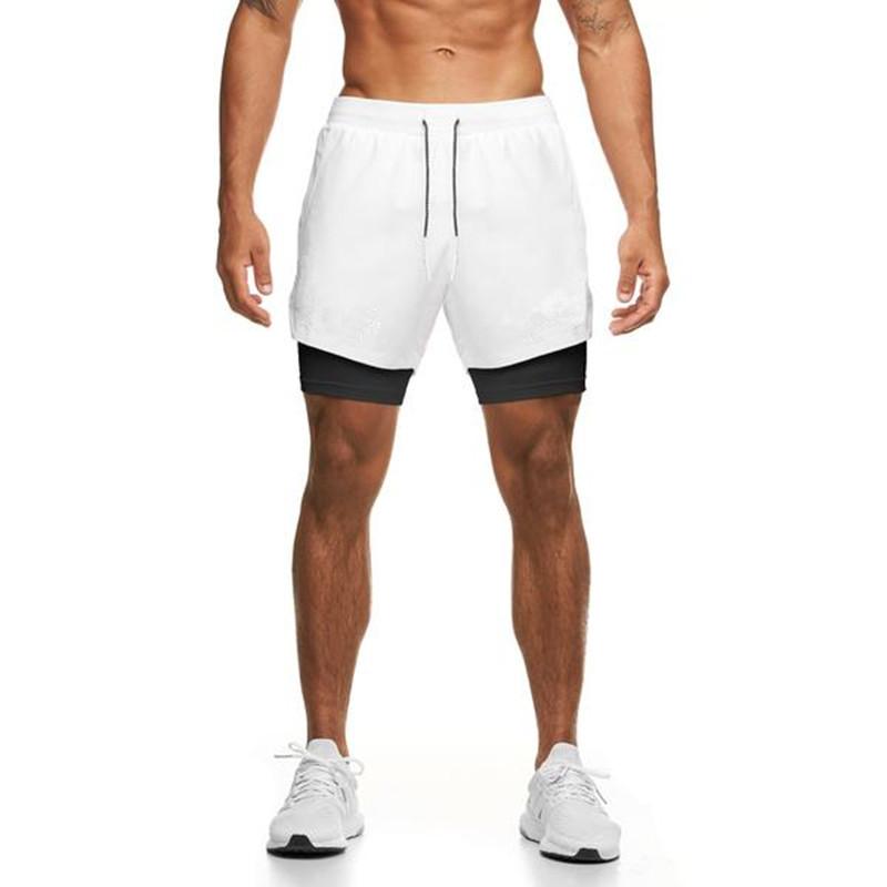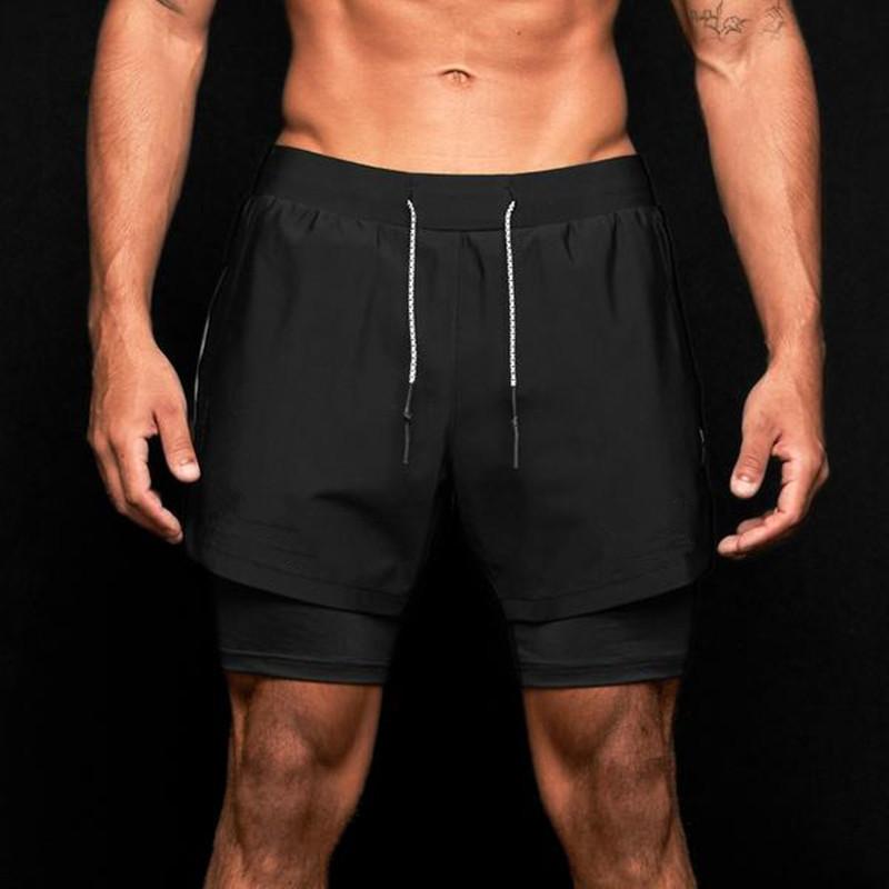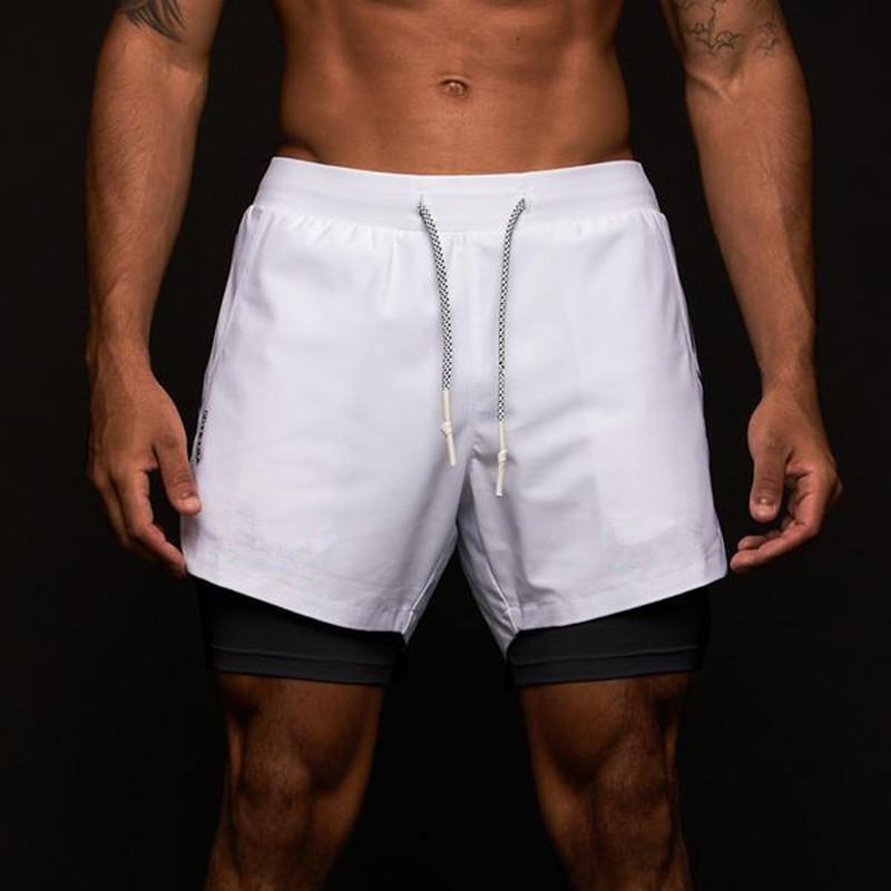 Pantalones cortos deportivos anti-caminar para hombre, de verano, de doble capa, de cinco puntos, para baloncesto, running, entrenamiento, sentadillas, de alta elasticidad y secado rápido.
