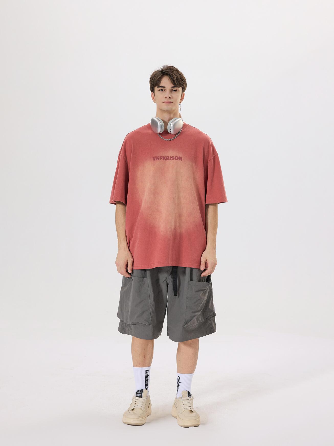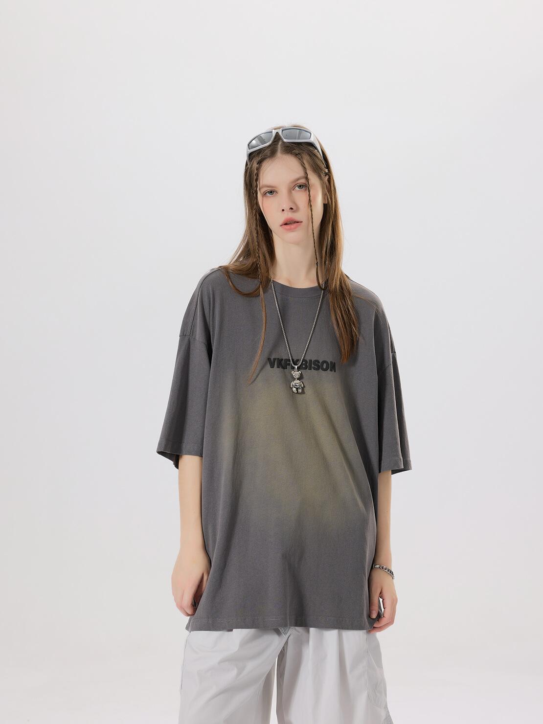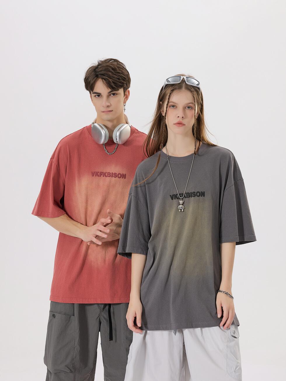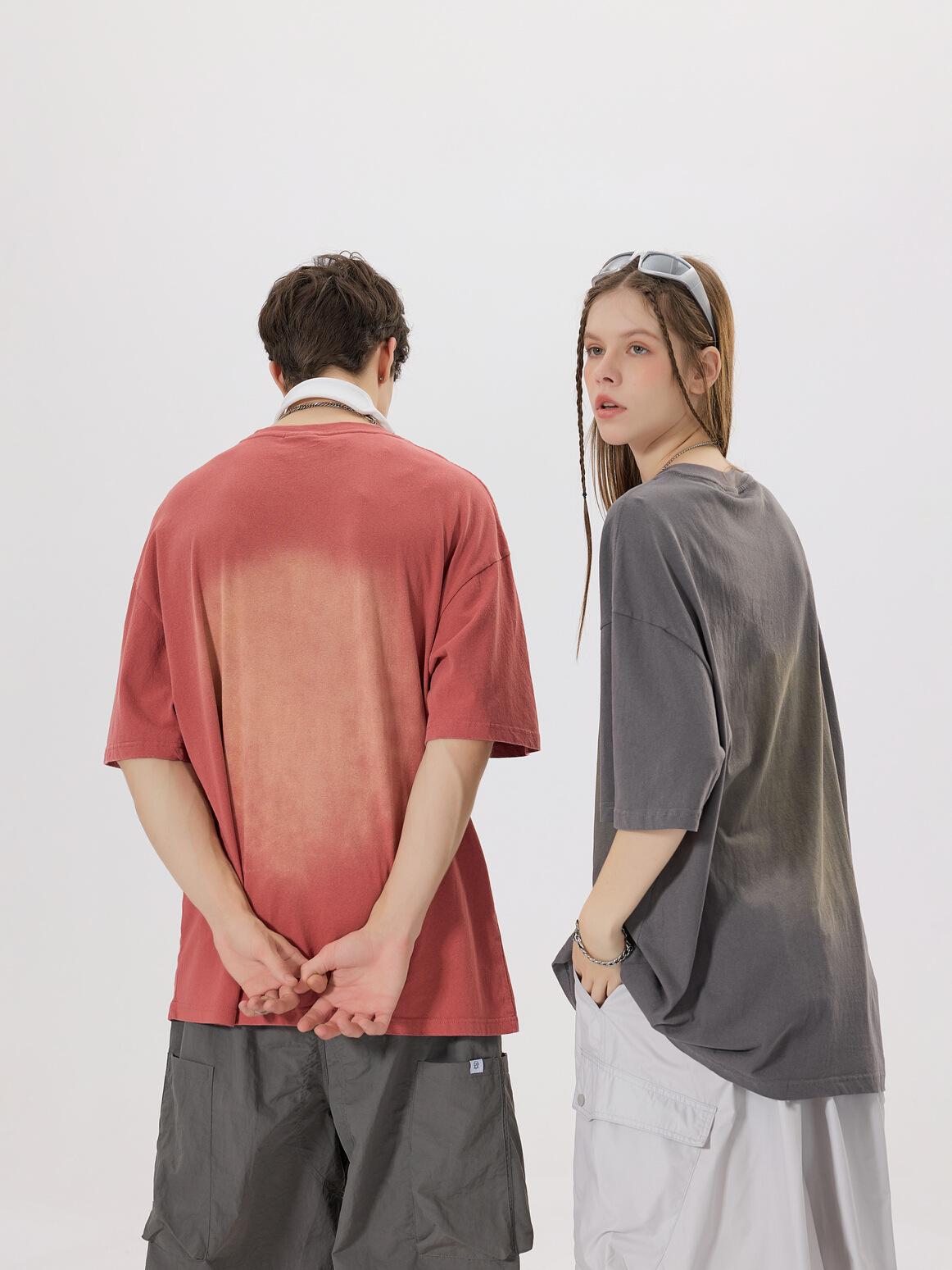 Camiseta de Verano Nacional Moda Hip Hop Degradado Manga Corta Hombre Moda de Marca Oversize Suelta Pareja Camiseta Básica Top