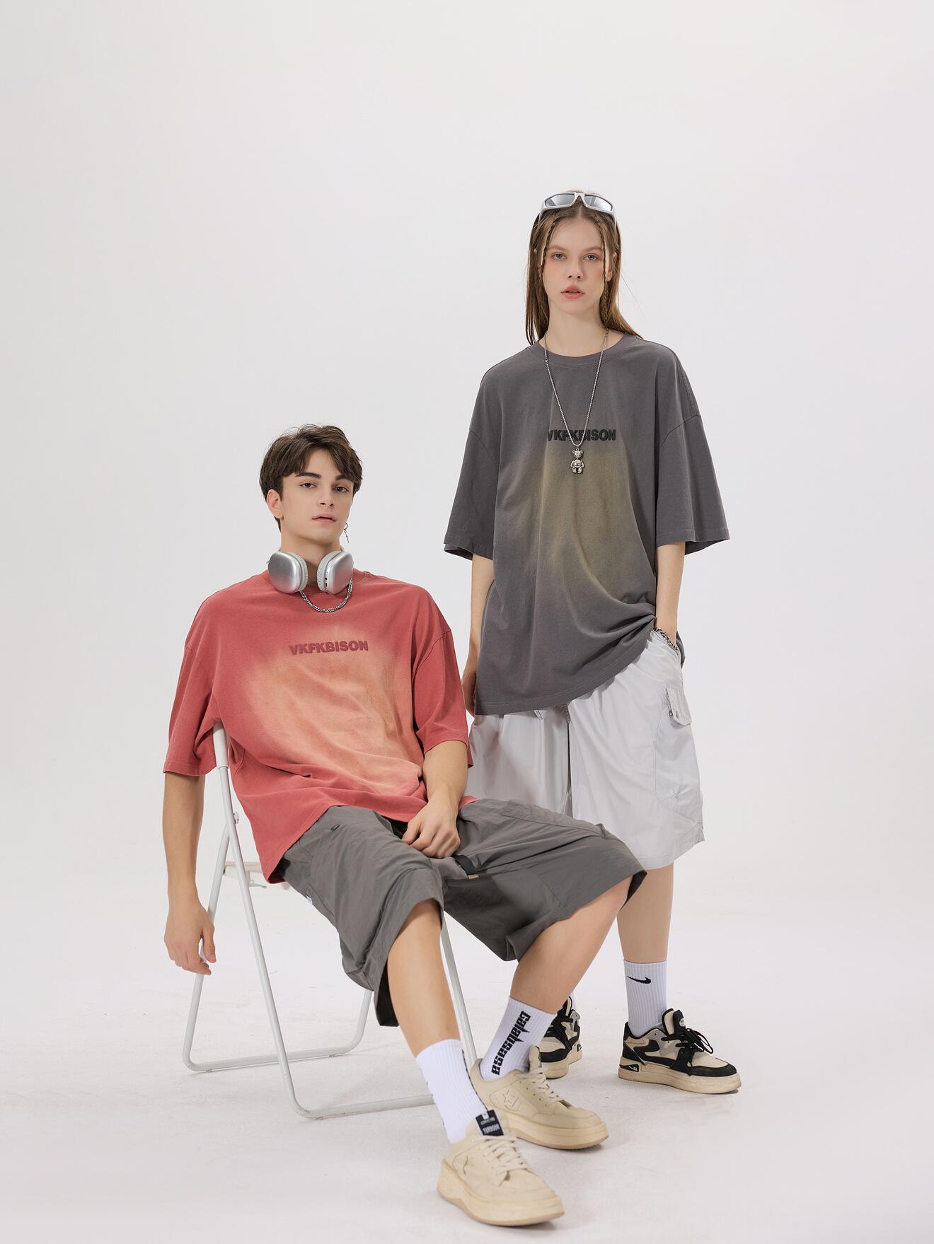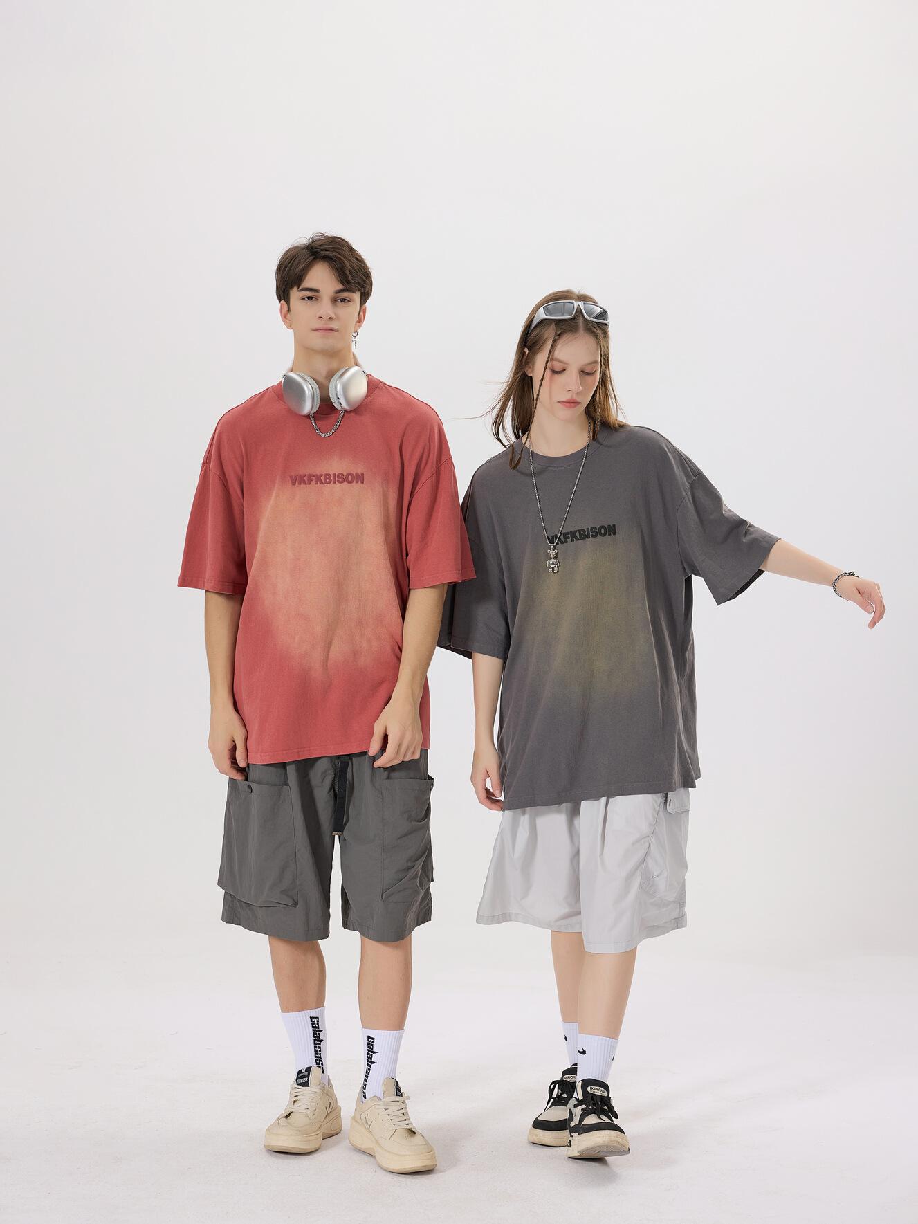 Compra Camiseta de Verano Nacional Moda Hip Hop Degradado Manga Corta Hombre Moda de Marca Oversize Suelta Pareja Camiseta Básica Top al por mayor en Joom.pro