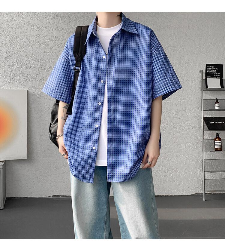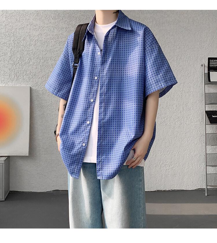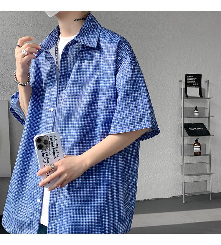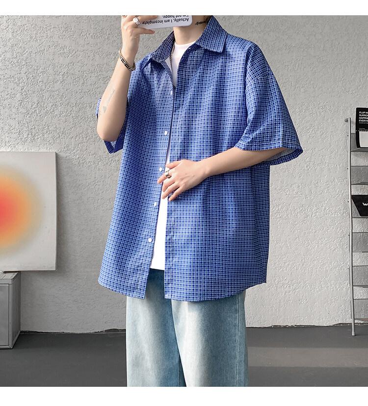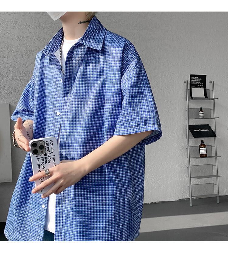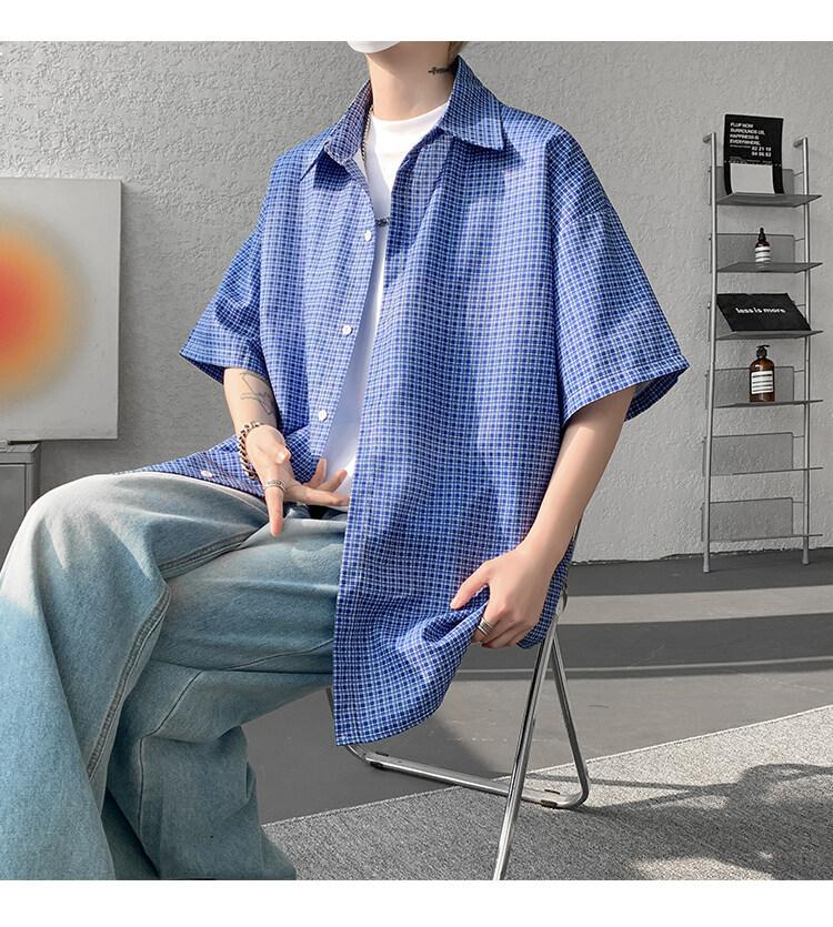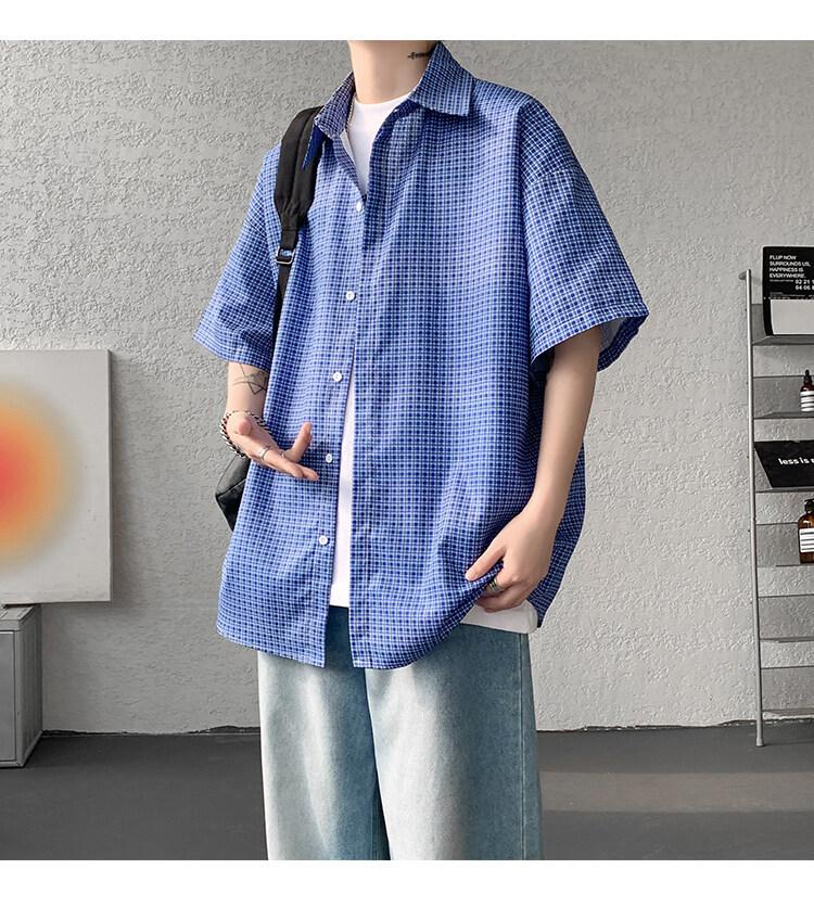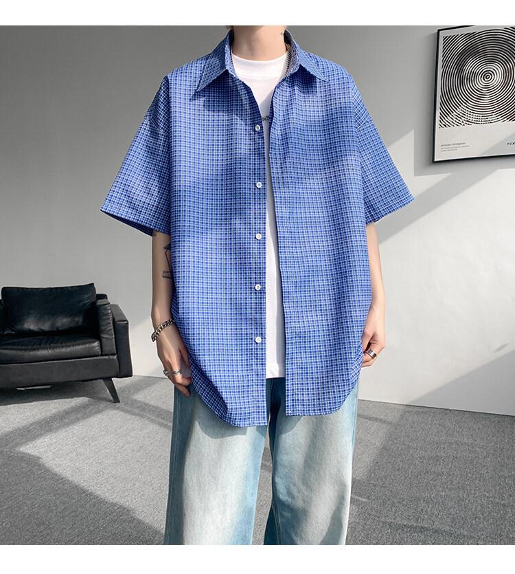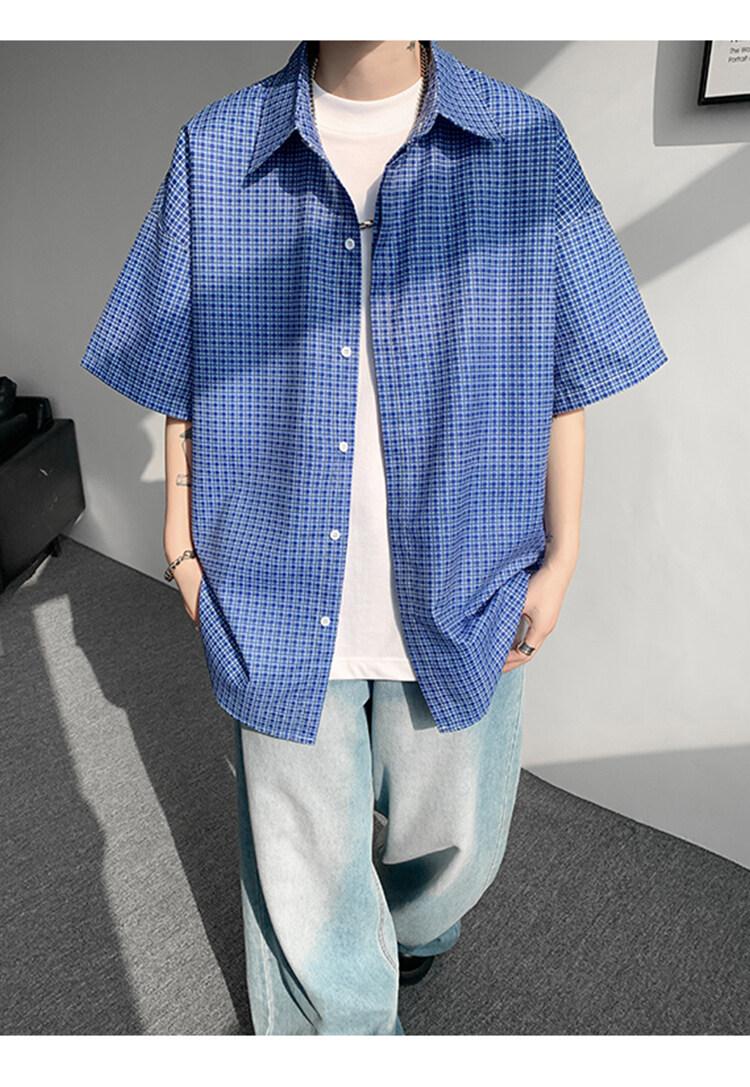 Camisa de manga corta a cuadros azules para hombre, tallas M-8XL, verano 2025, nueva, moderna, combinable, holgada, informal, de talla grande