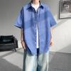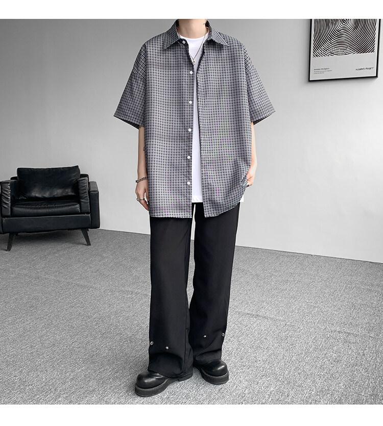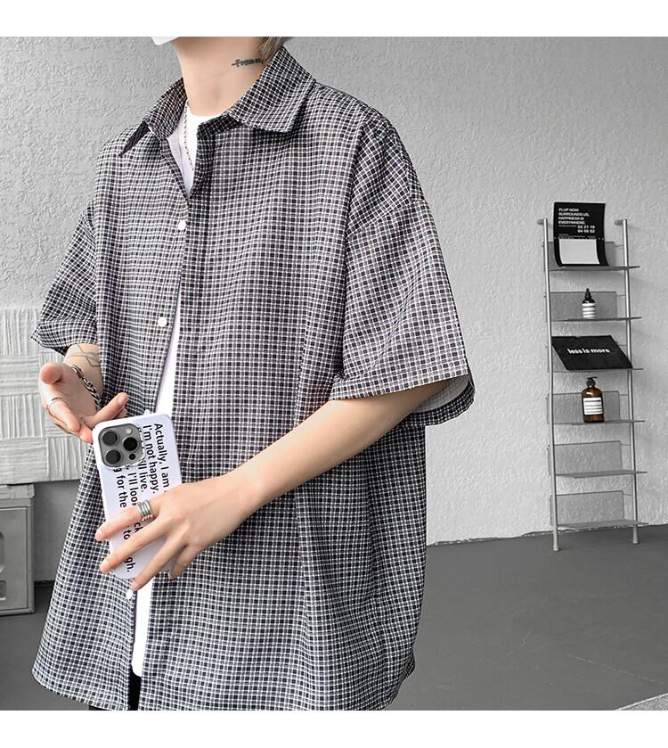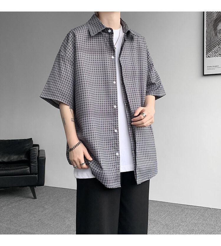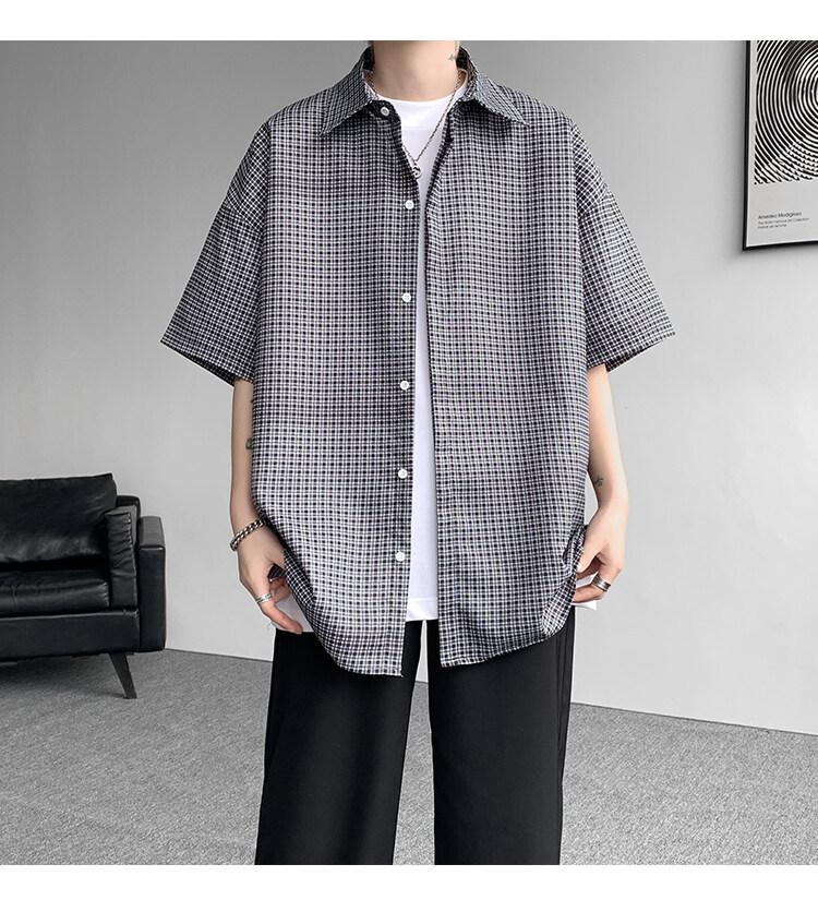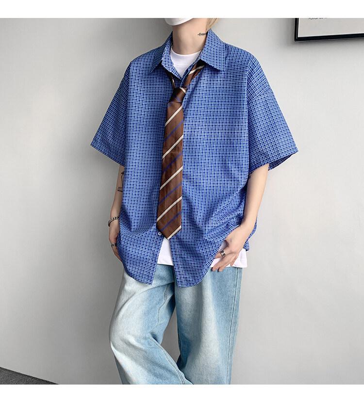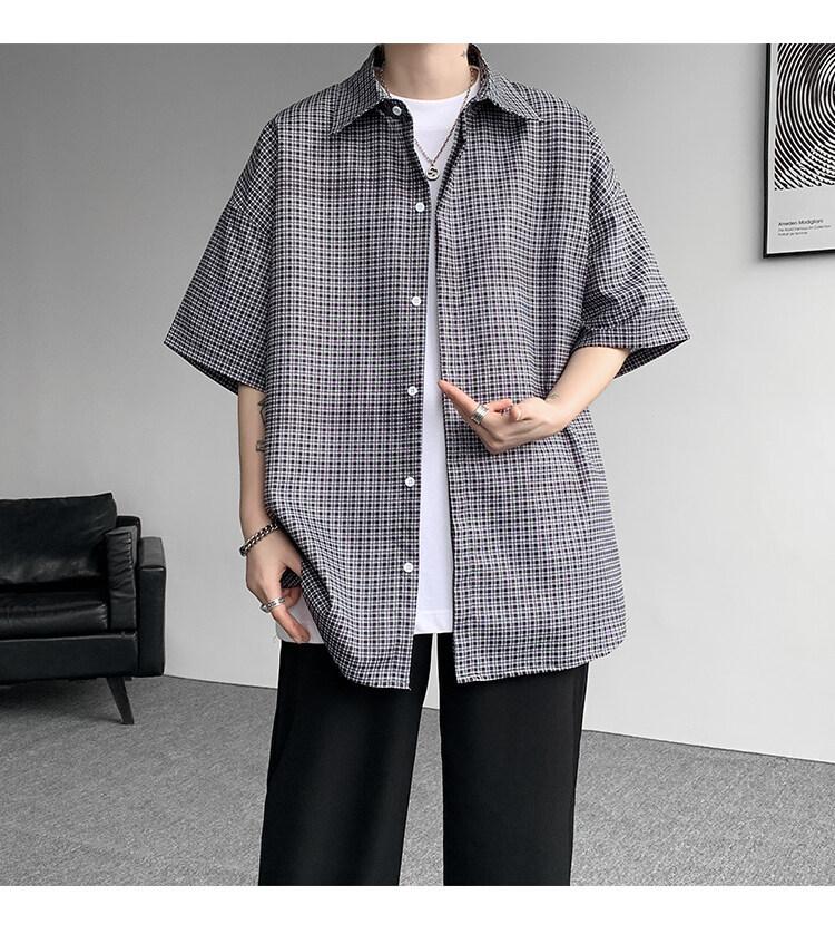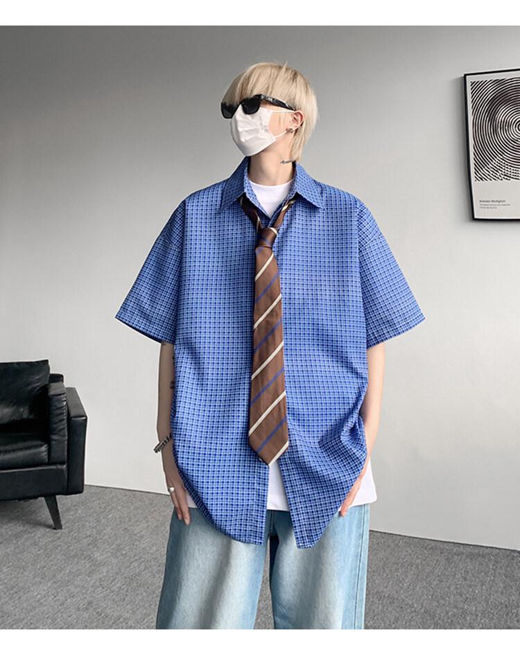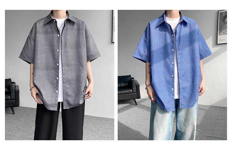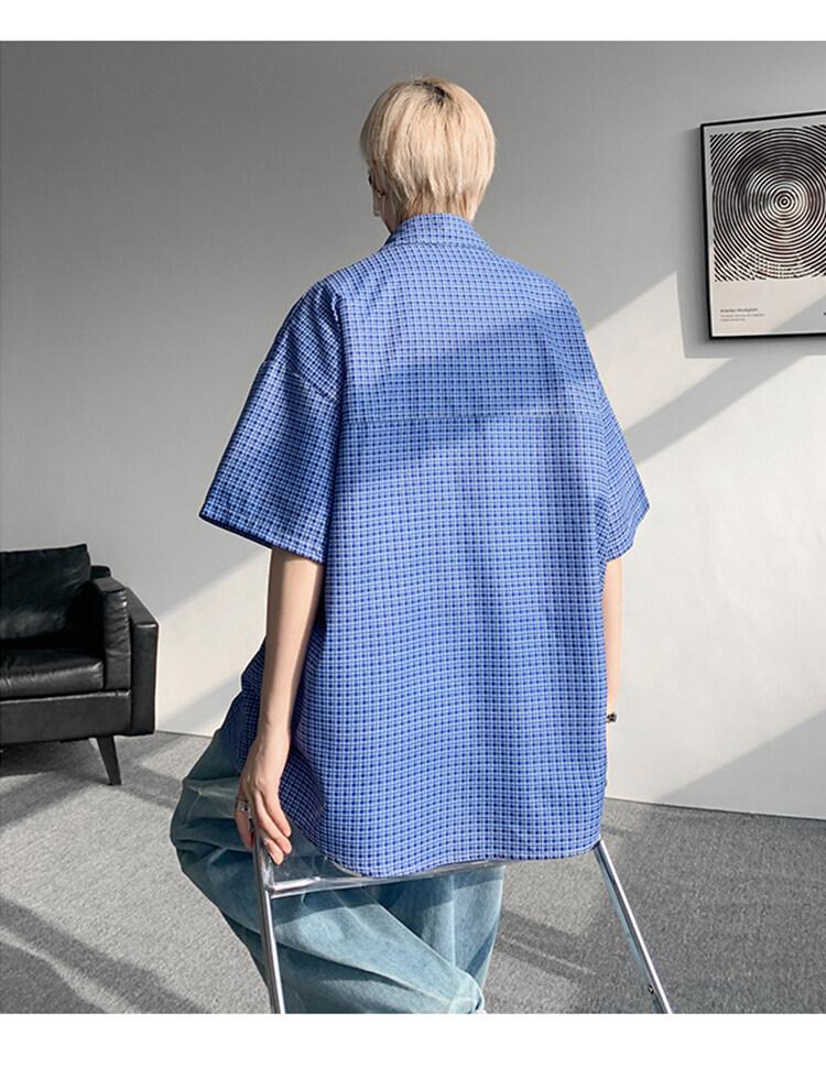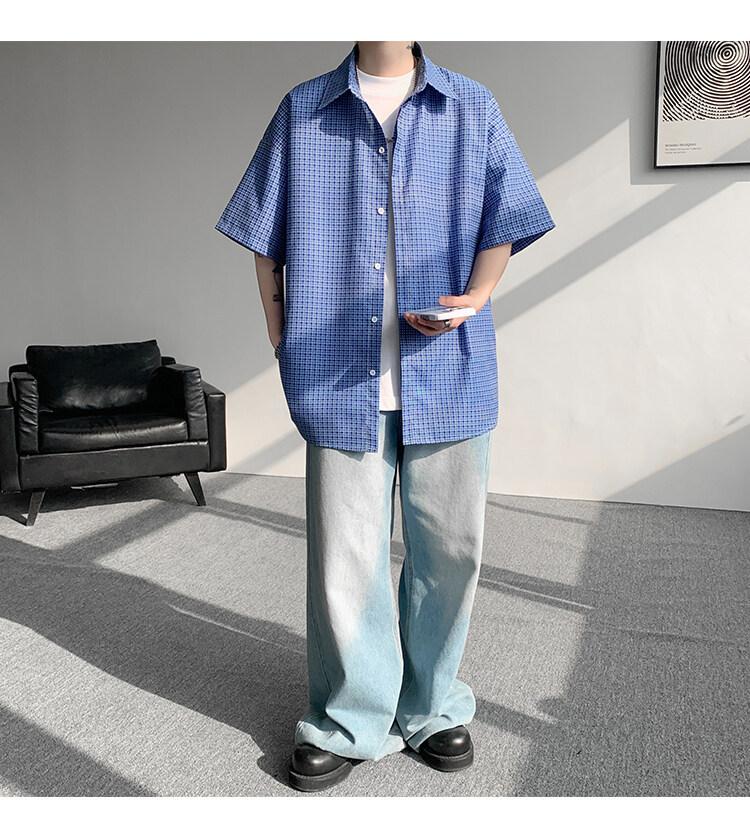 Camisa de manga corta a cuadros azules para hombre, tallas M-8XL, verano 2025, nueva, moderna, combinable, holgada, informal, de talla grande