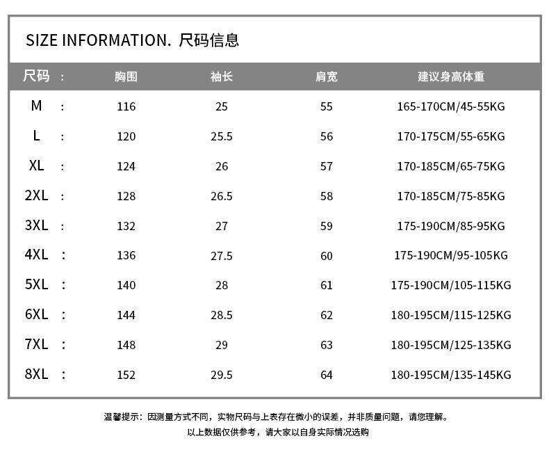 M, L, XL, 2XL, 3XL, 4XL, 5XL, 6XL, 7XL, 8XL