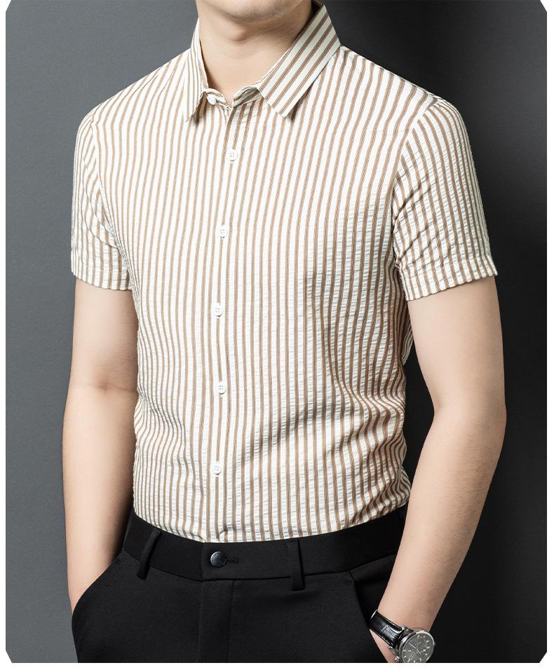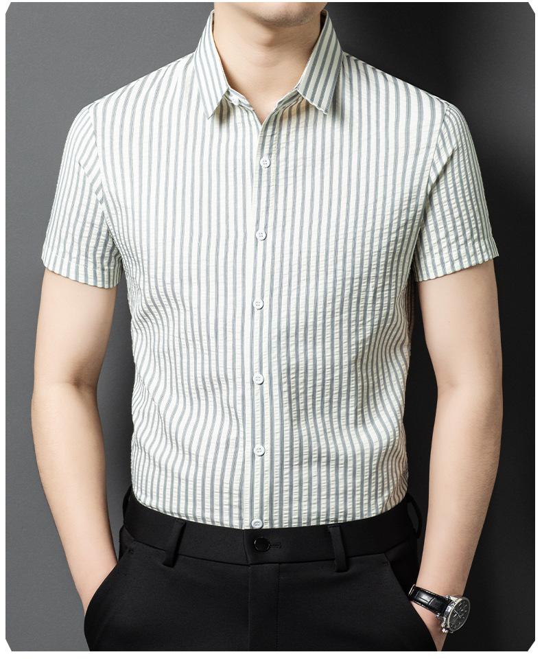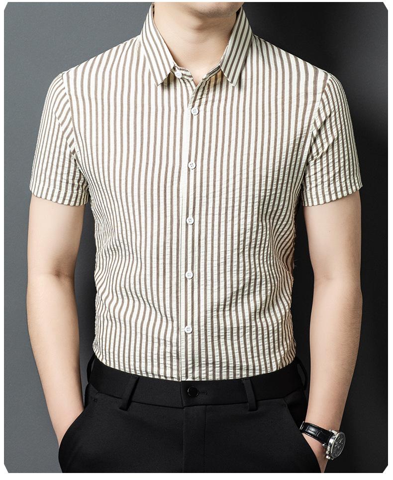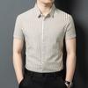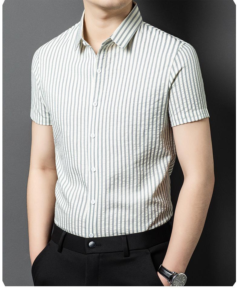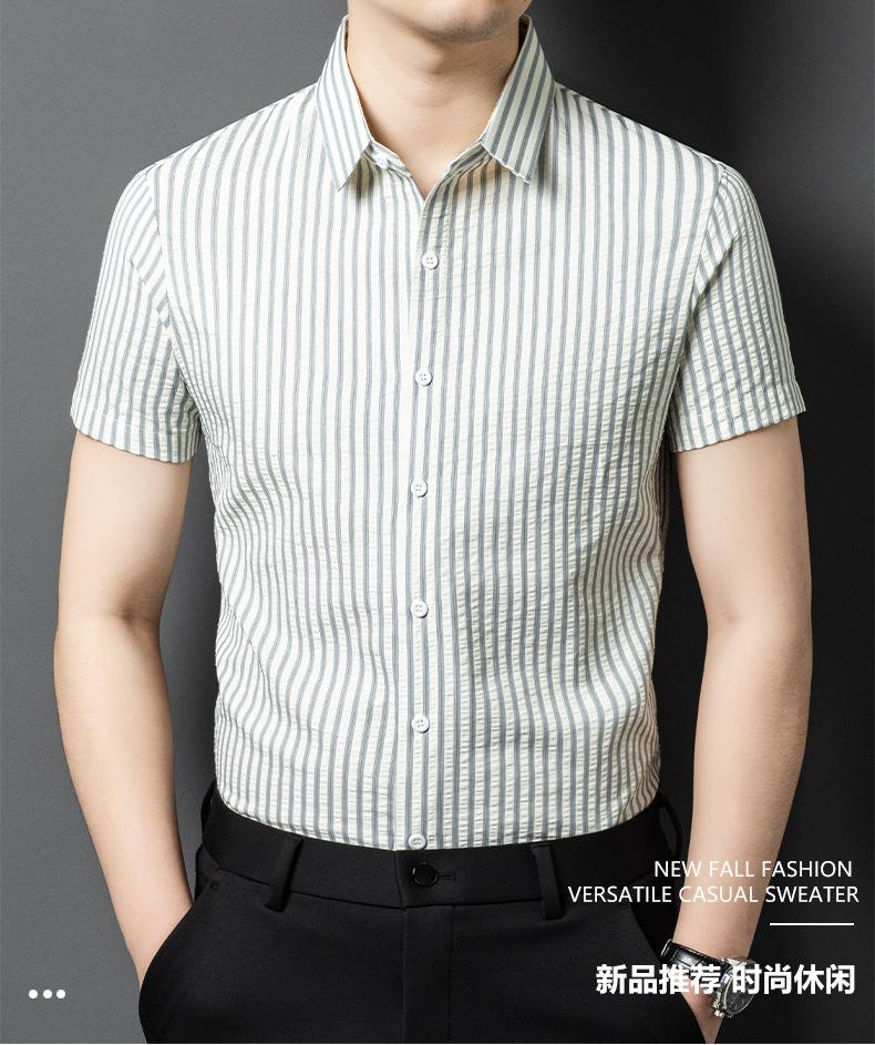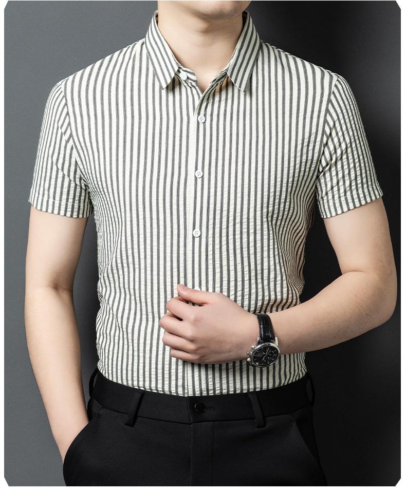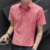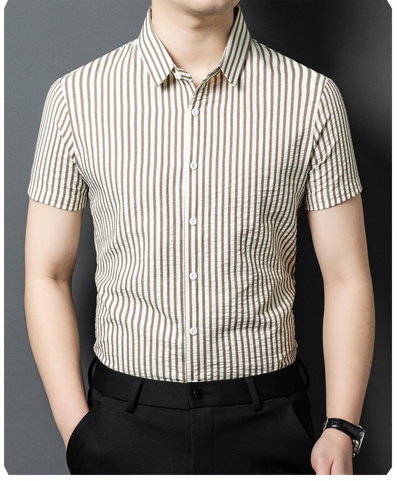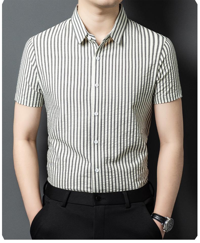 Camisa de Algodón de Manga Corta para Hombre 2025 Verano Nueva Moda Estilo Coreano Business Casual Media Manga Holgada a Rayas