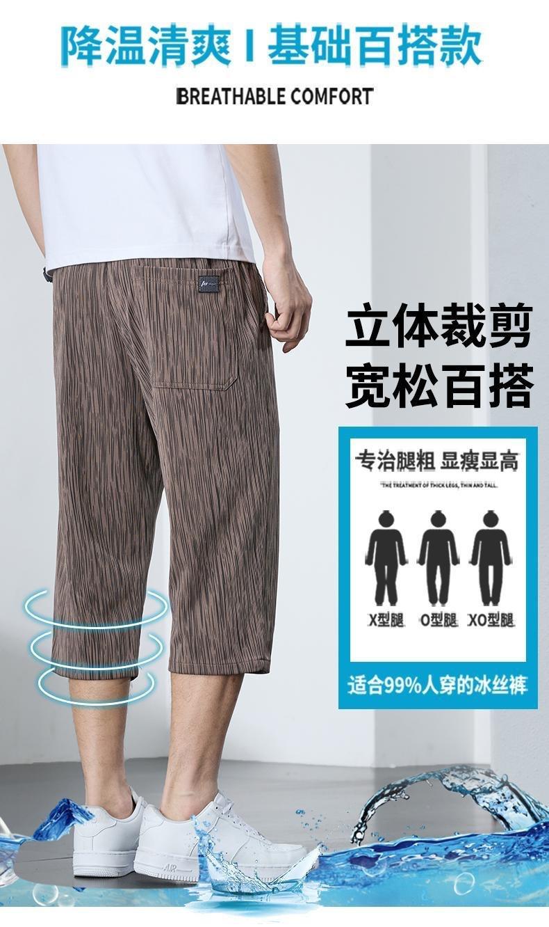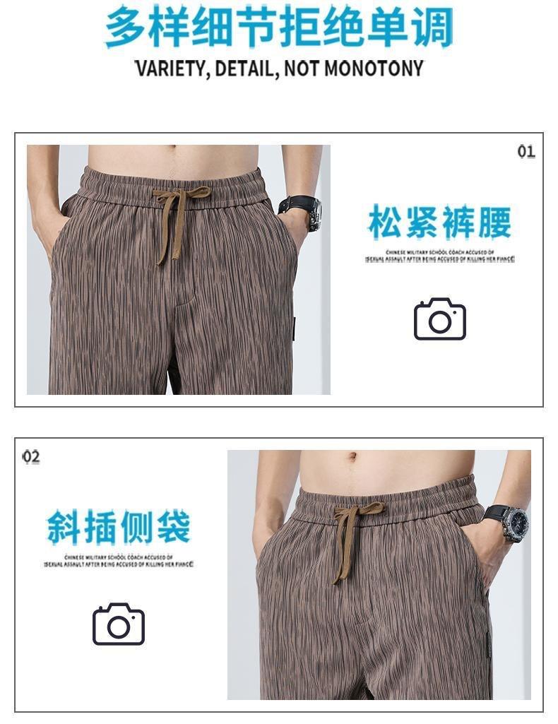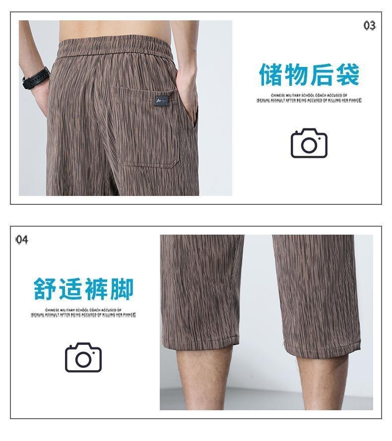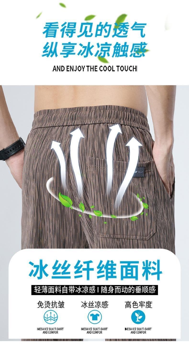 Pantalones cortos de seda fina de hielo para hombre, transpirables, informales, elásticos, de verano, a la moda, combinables, a rayas, deportivos