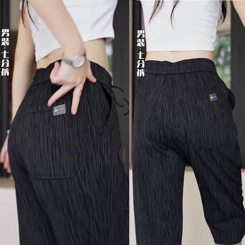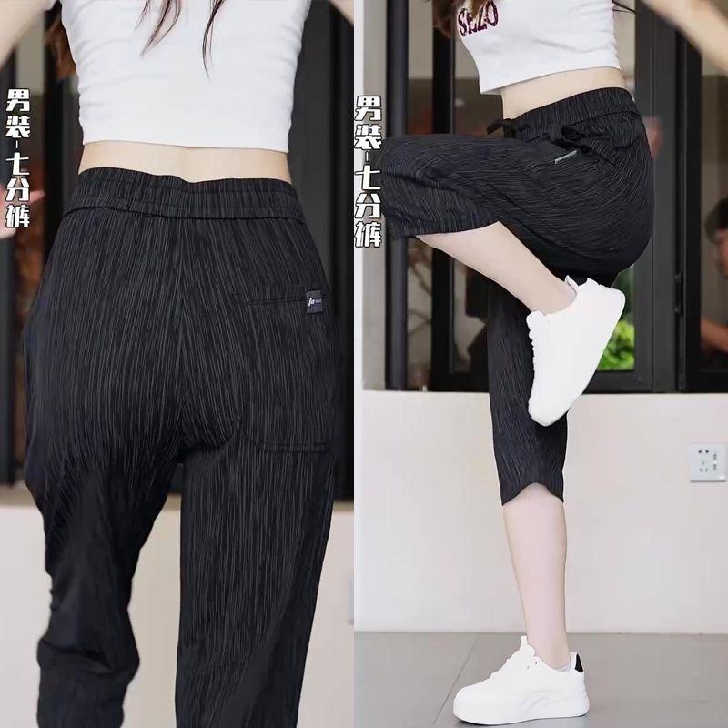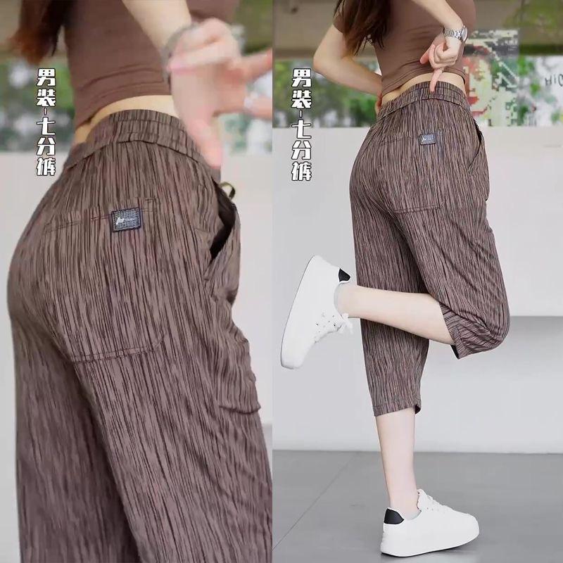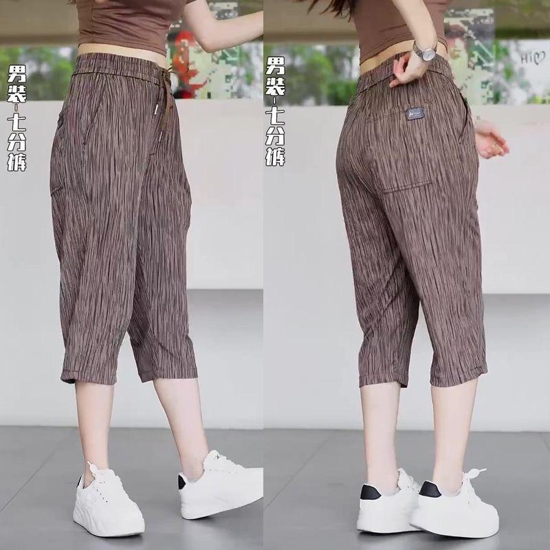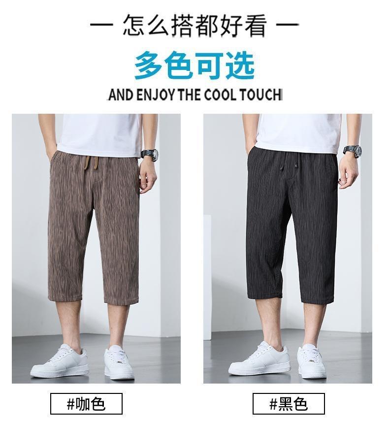 Pantalones cortos de seda fina de hielo para hombre, transpirables, informales, elásticos, de verano, a la moda, combinables, a rayas, deportivos