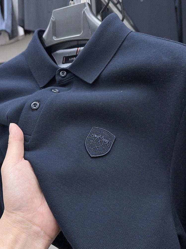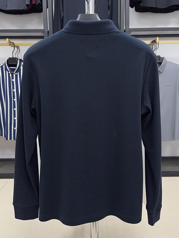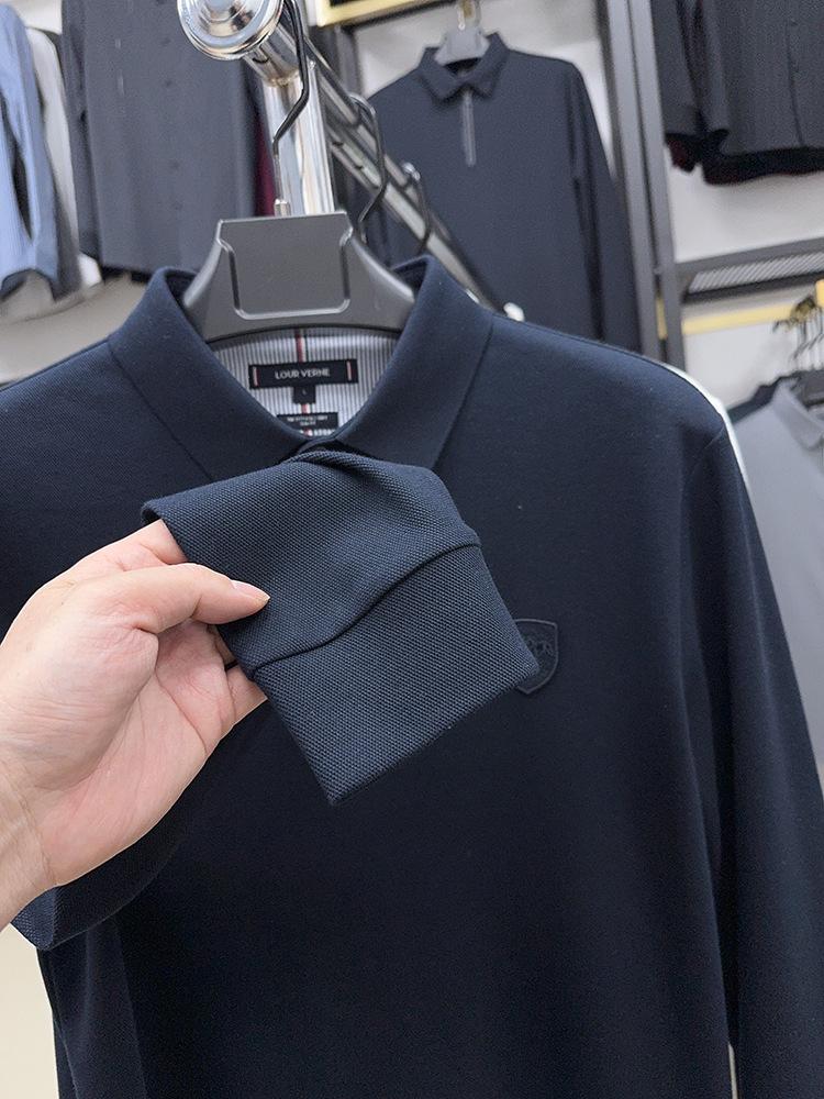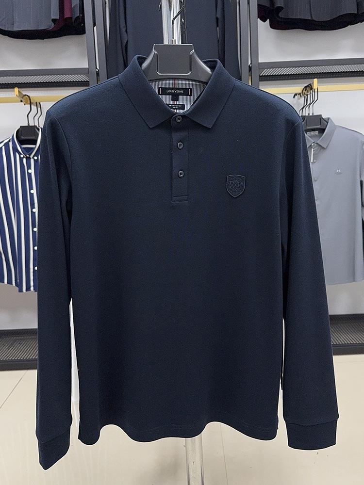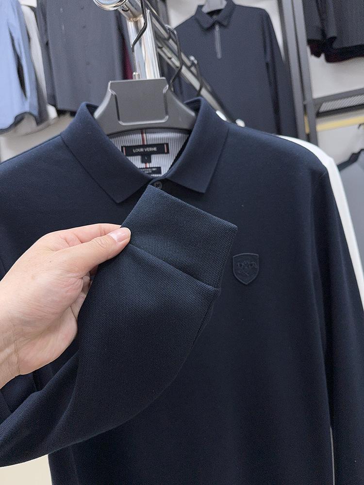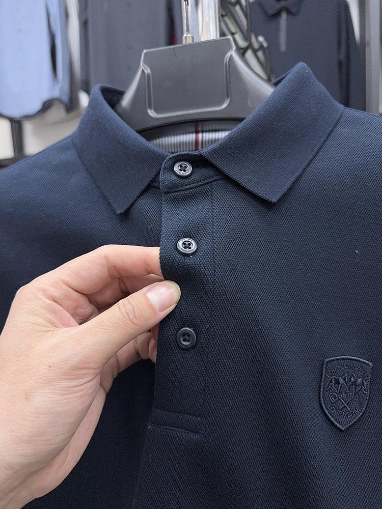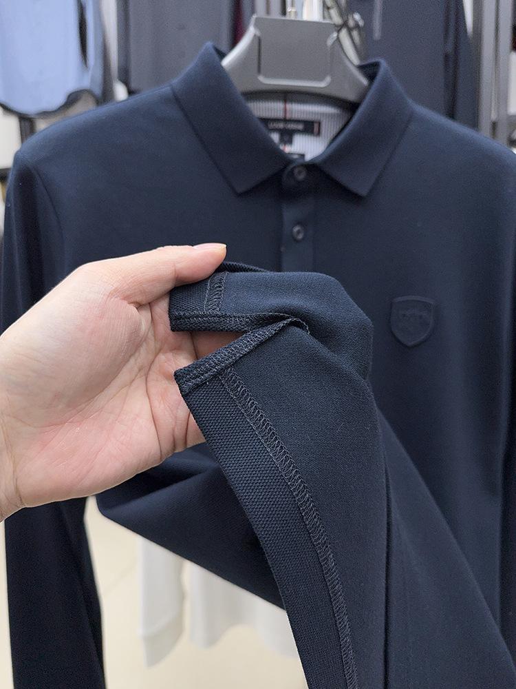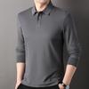 Camisa polo de manga larga dividida para hombre, primavera y otoño, sencilla, informal, para mediana edad y jóvenes, ropa masculina mercerizada de alta gama.