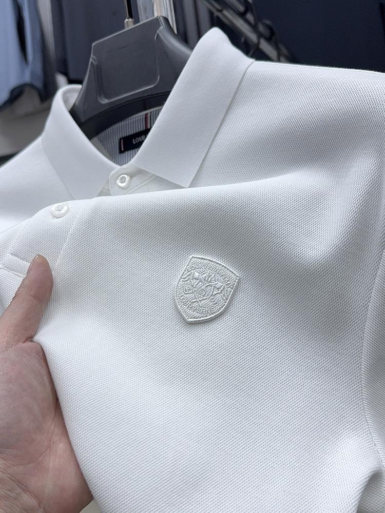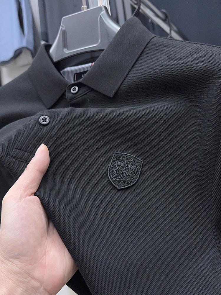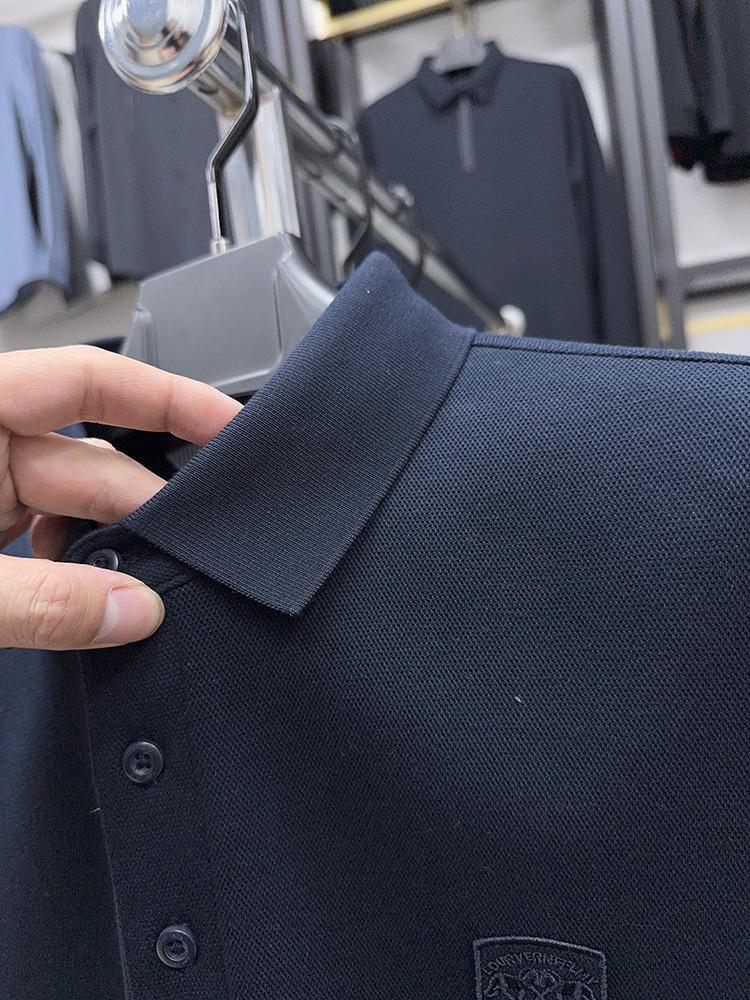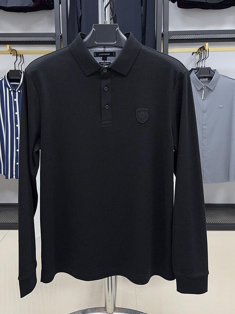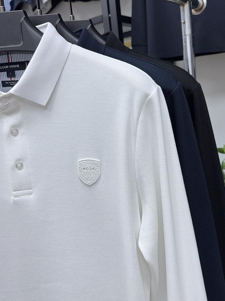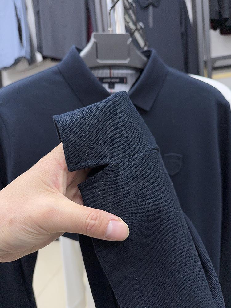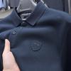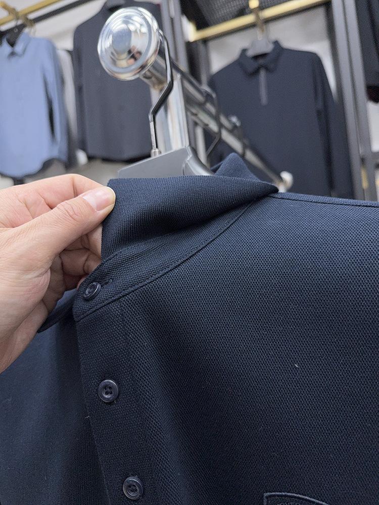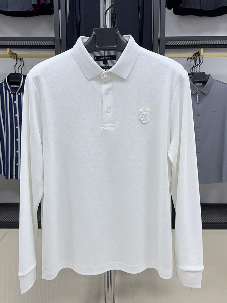 Camisa polo de manga larga dividida para hombre, primavera y otoño, sencilla, informal, para mediana edad y jóvenes, ropa masculina mercerizada de alta gama.