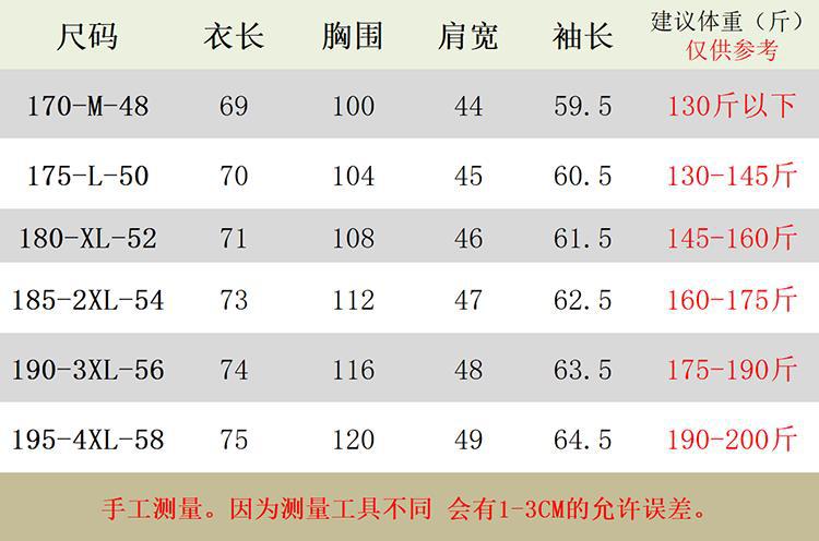 M -48, L -50, XL -52, 2XL -54, 3XL -56, 4XL -58
