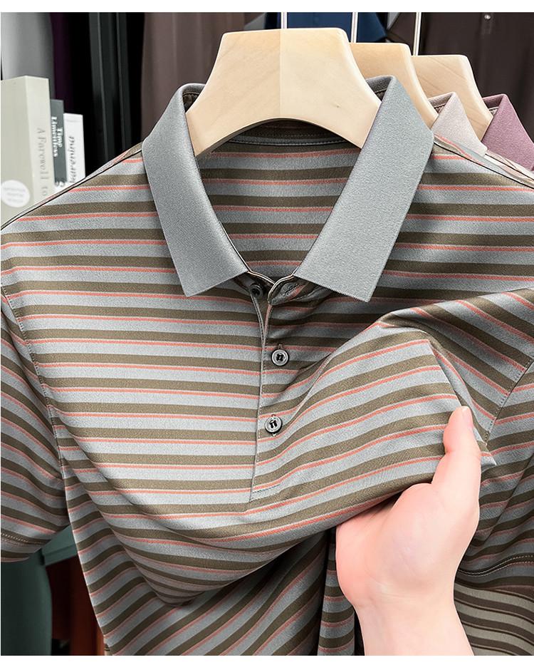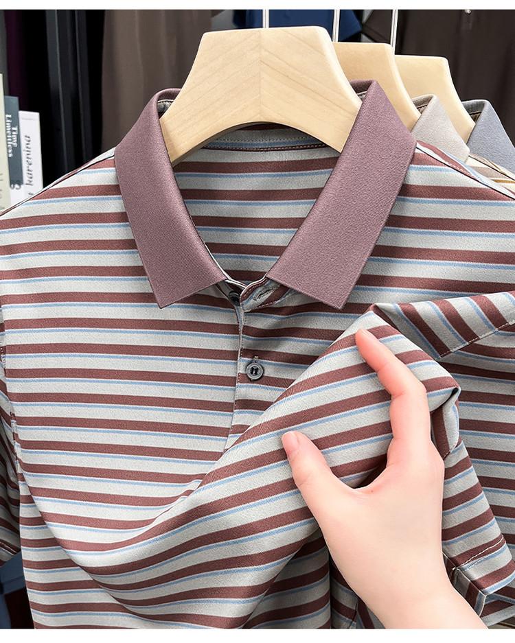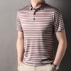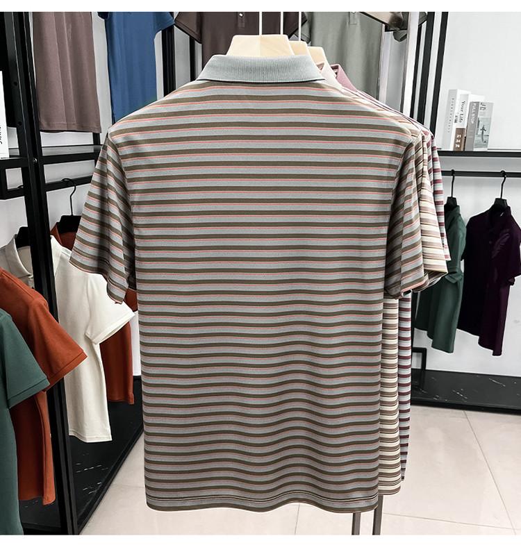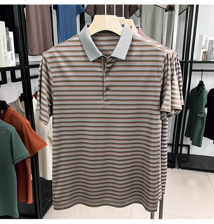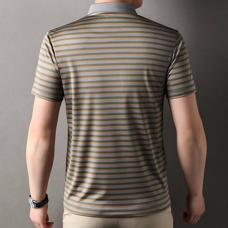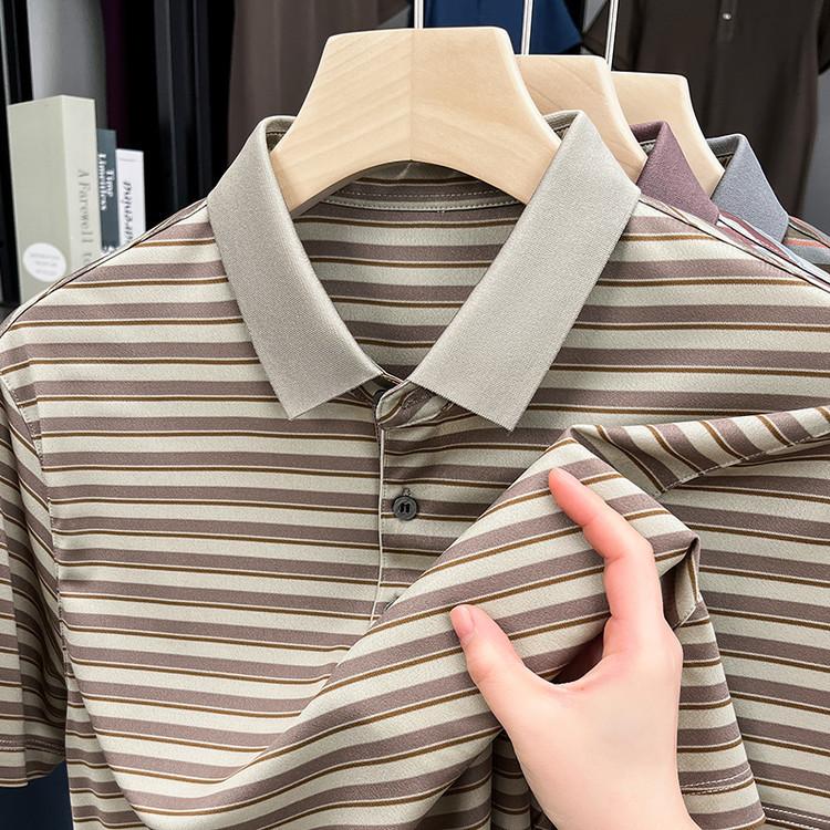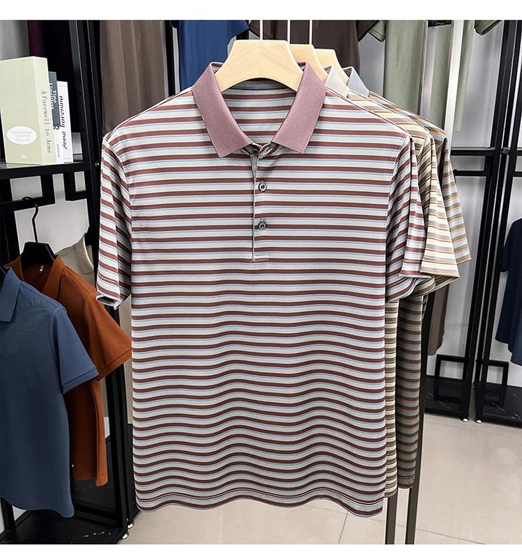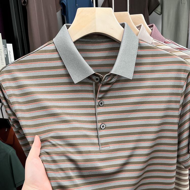 Compra Camiseta Polo de Solapa de Manga Corta para Hombre 2025 Verano de Alta Gama Seda de Morera Rayada Moda de Negocios Papá Camiseta de Media Manga al por mayor en Joom.pro
