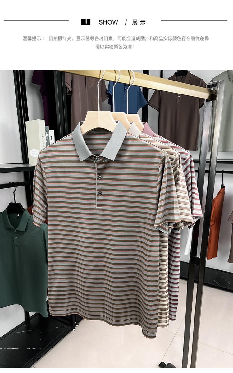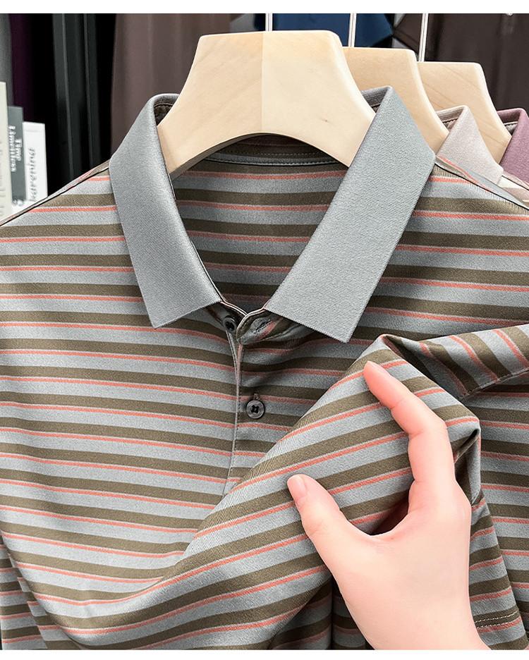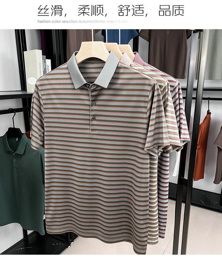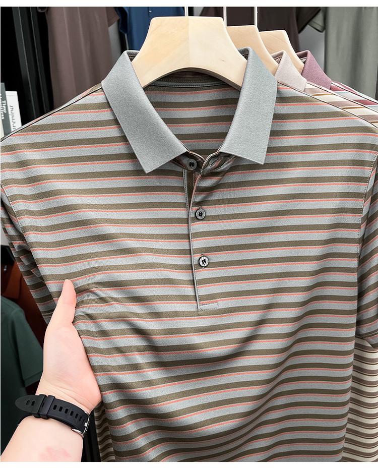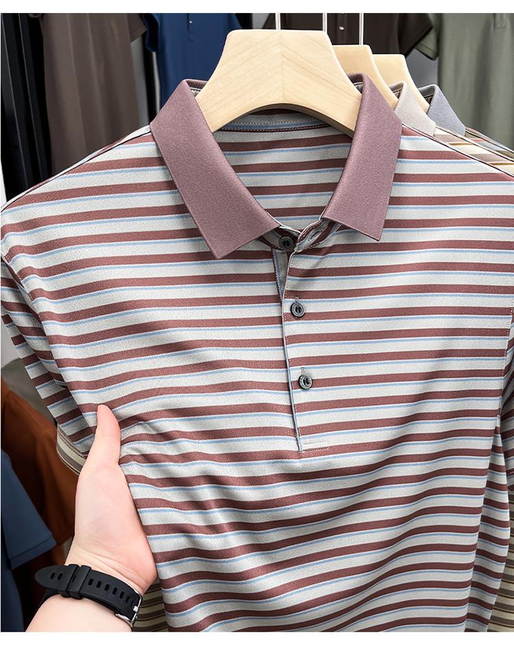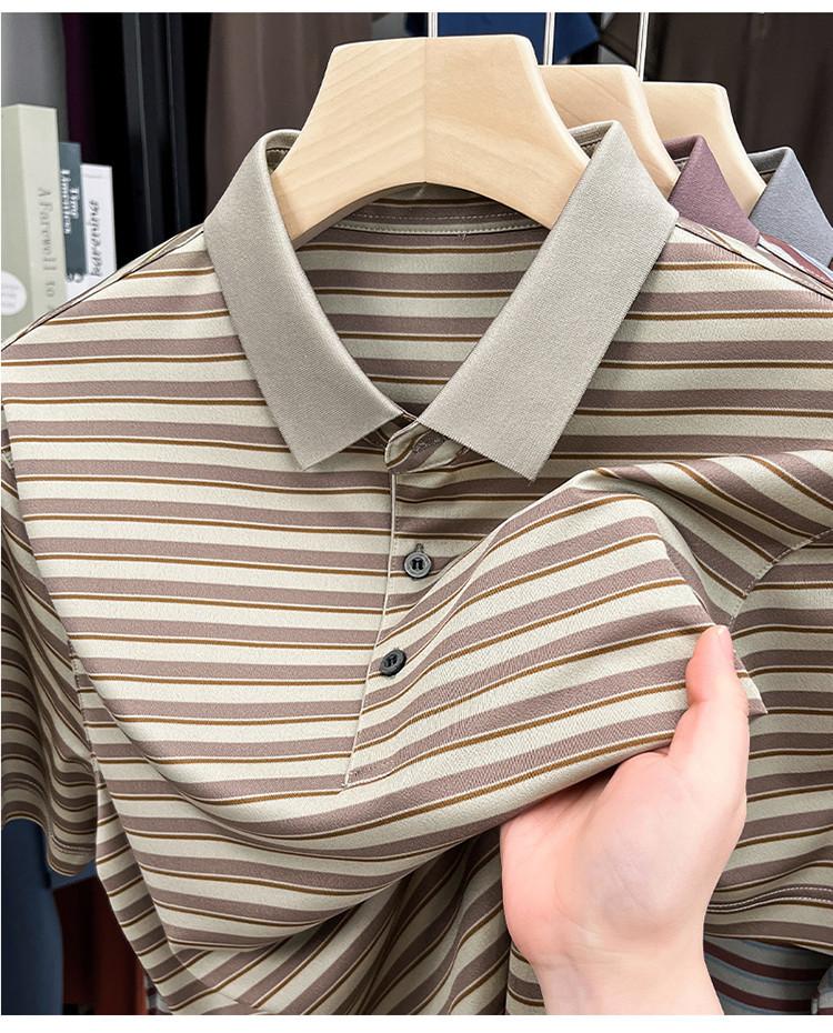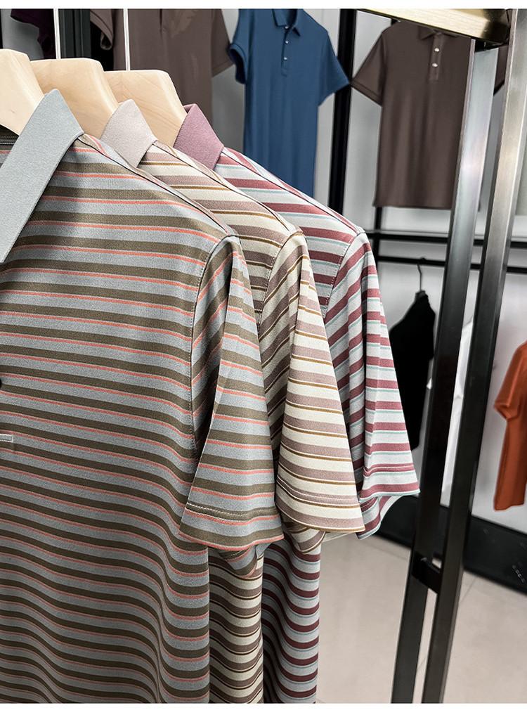 Compra Camiseta Polo de Solapa de Manga Corta para Hombre 2025 Verano de Alta Gama Seda de Morera Rayada Moda de Negocios Papá Camiseta de Media Manga al por mayor en Joom.pro
