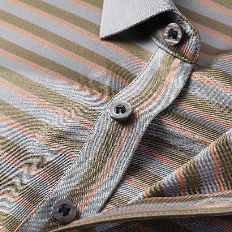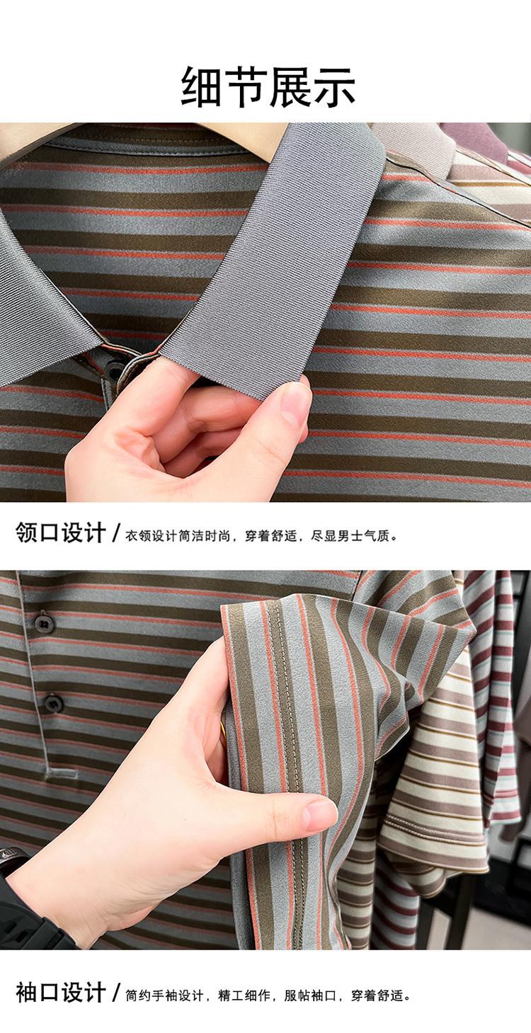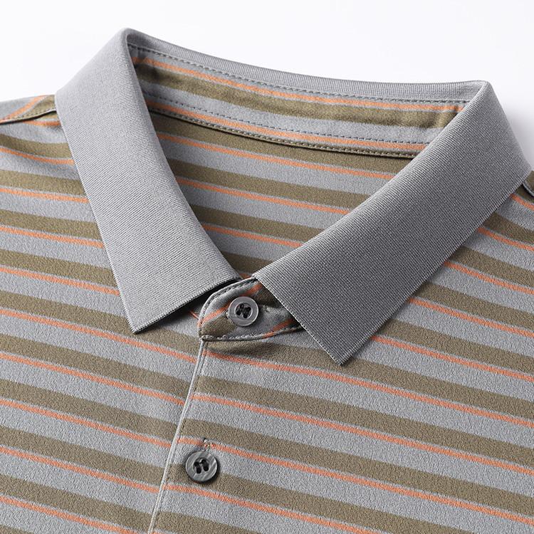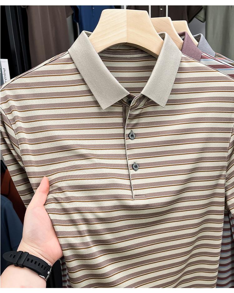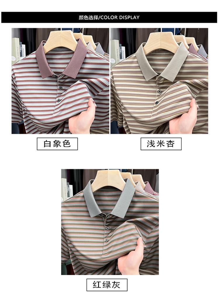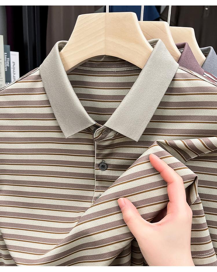 Compra Camiseta Polo de Solapa de Manga Corta para Hombre 2025 Verano de Alta Gama Seda de Morera Rayada Moda de Negocios Papá Camiseta de Media Manga al por mayor en Joom.pro