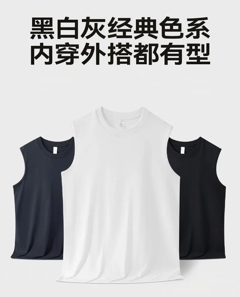 Camiseta sin mangas de algodón puro para hombre, peso pesado, hombros anchos, Camiseta sin mangas de algodón puro, Estilo de verano, Corte holgado, Cuello redondo, Versión casual de color sólido deportivo
