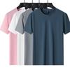 Camiseta de manga corta de secado rápido de seda de hielo para hombre, de verano, fina, transpirable, informal, deportiva, ajustada, con cuello redondo, de malla estampada