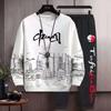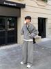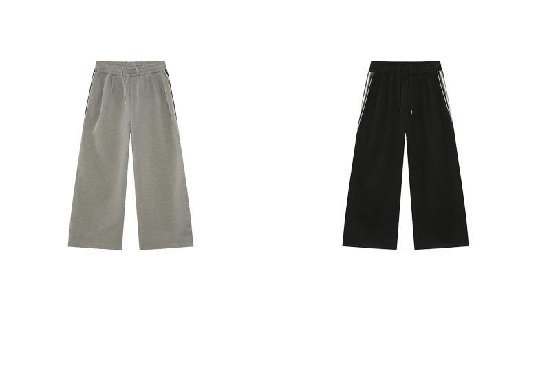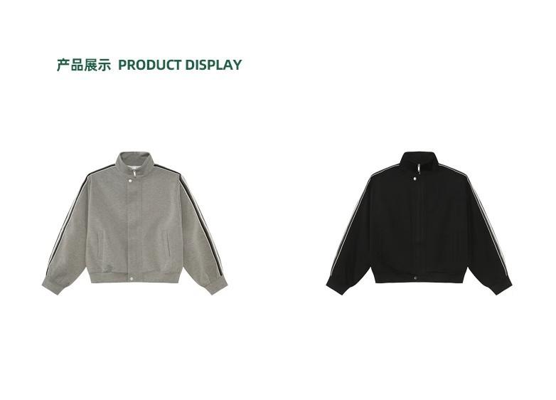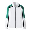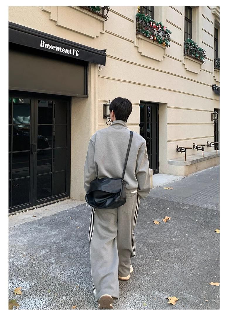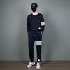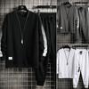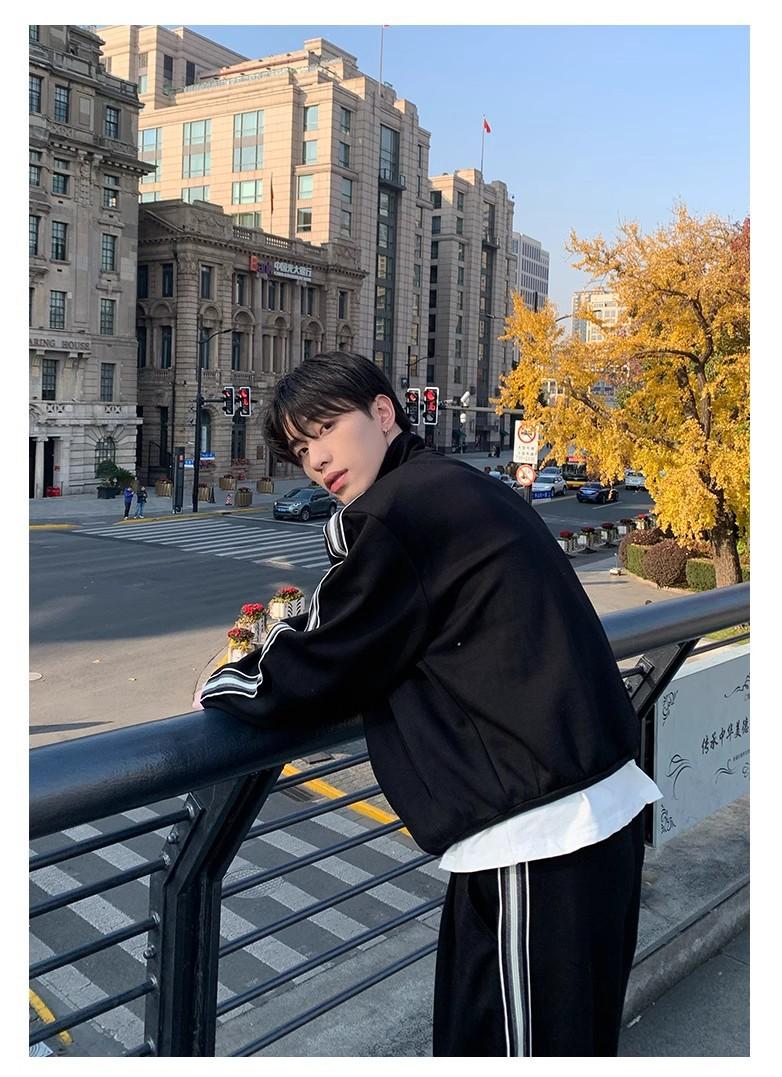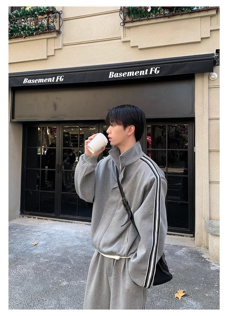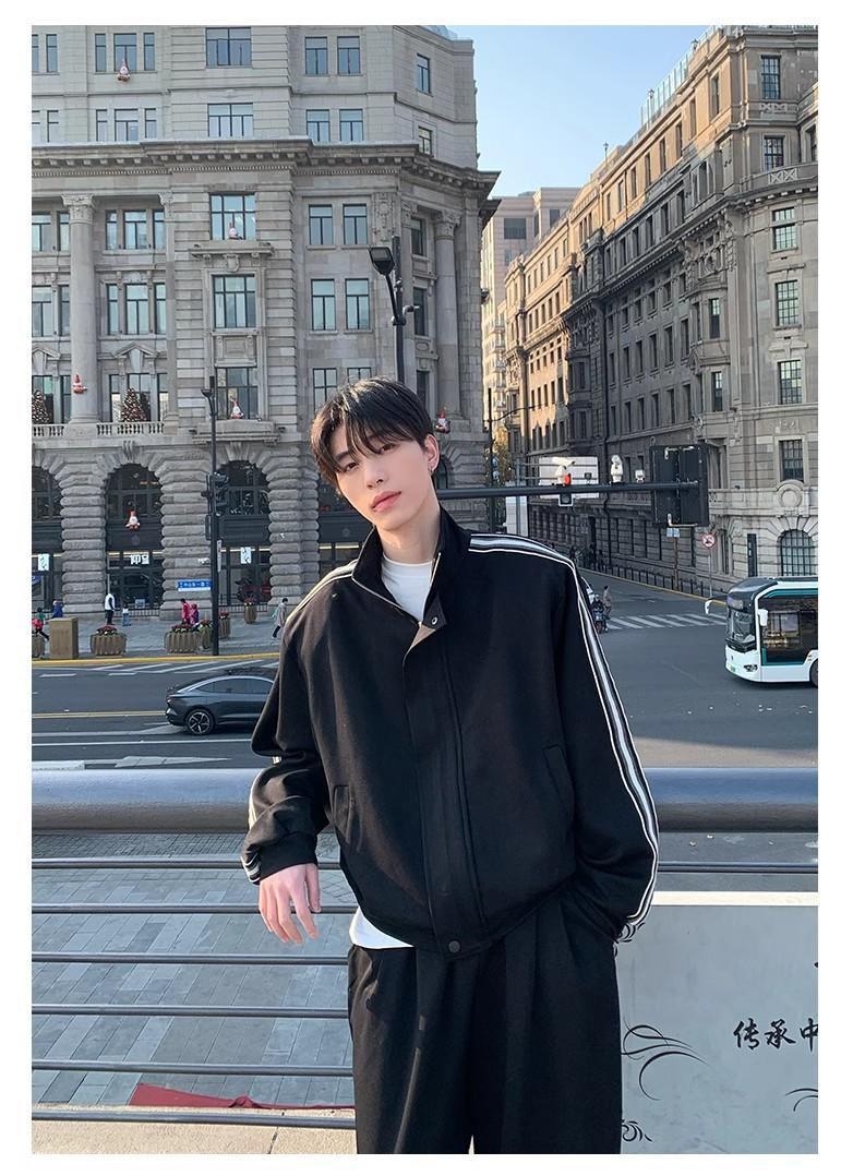 Traje deportivo casual de primavera 2025 con cuello mao y barra de color contrastante para hombre, chaqueta holgada nueva de primavera, pantalones de pierna ancha
