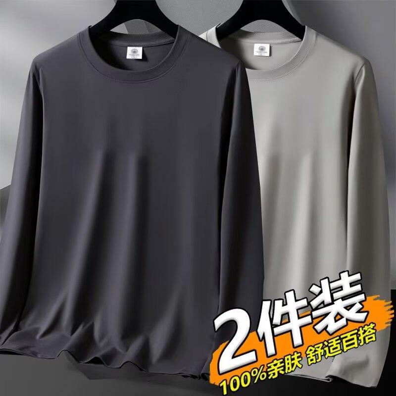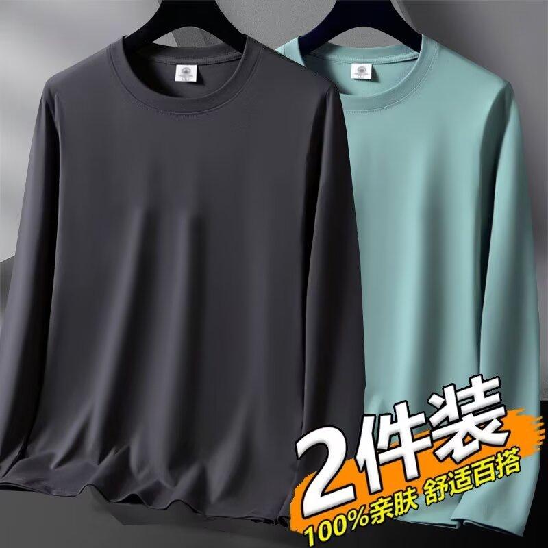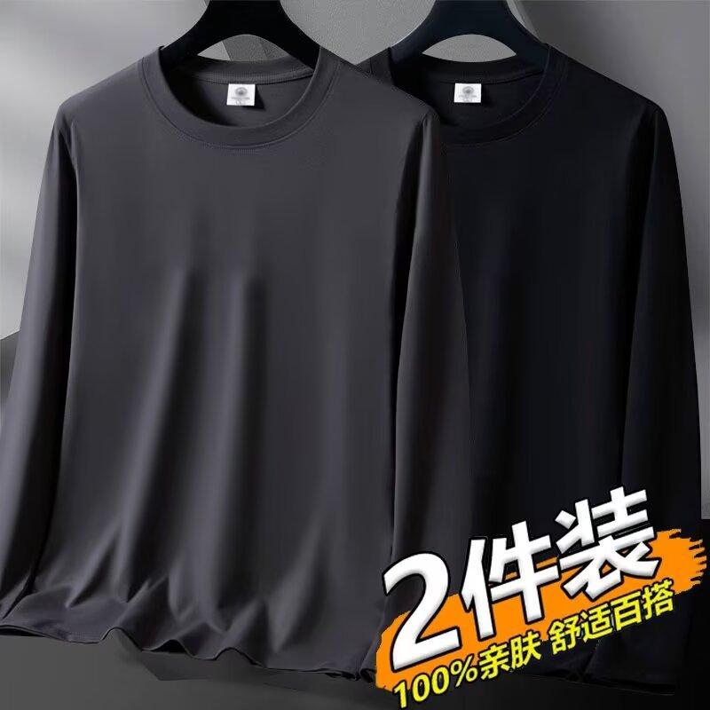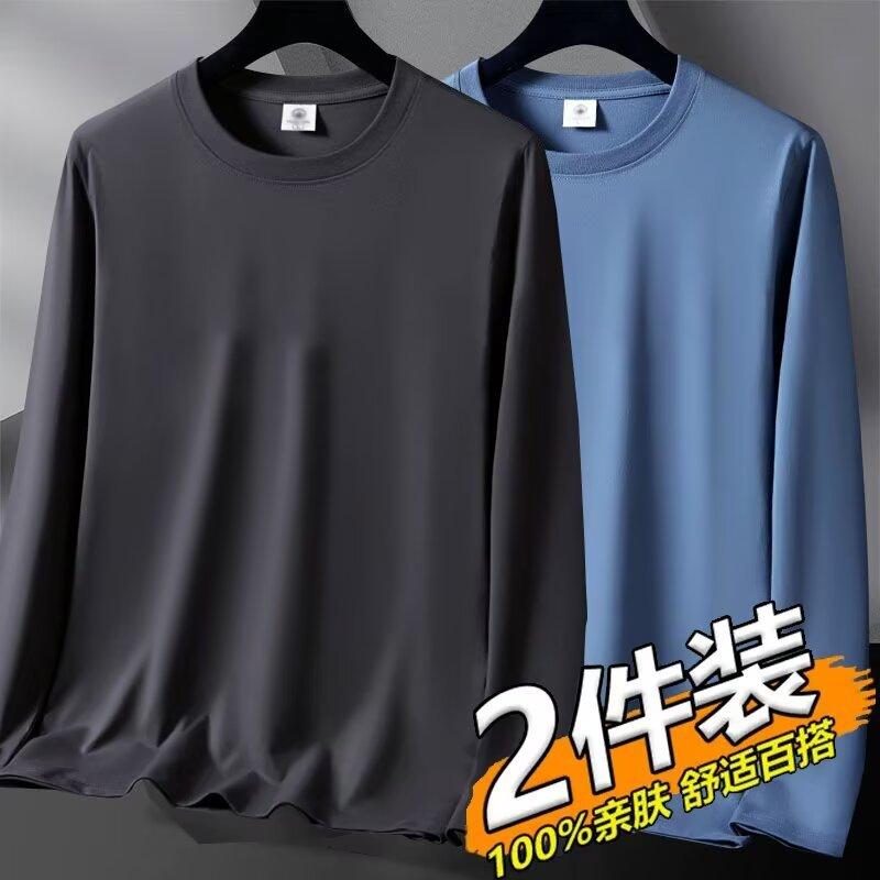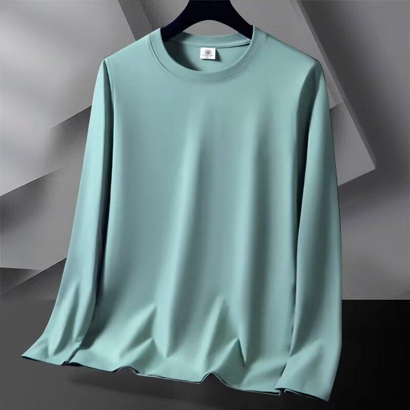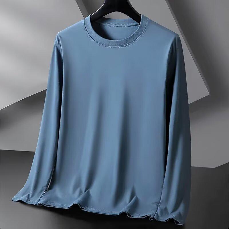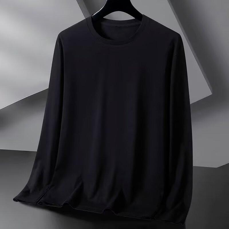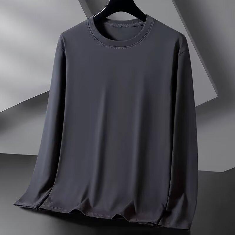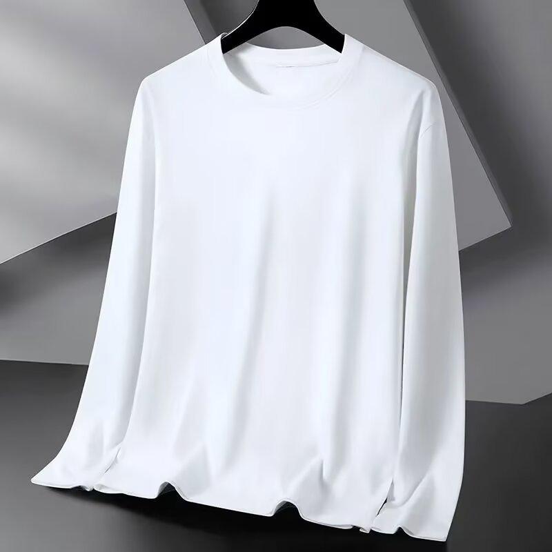 Camiseta de manga larga con cuello redondo de color liso para hombre, ropa holgada de otoño para hombre, camiseta deportiva informal de moda de talla grande