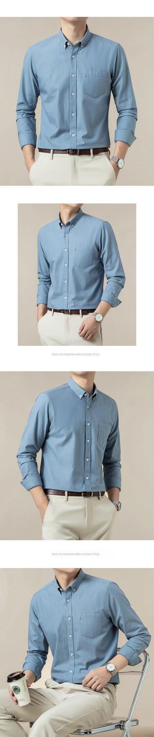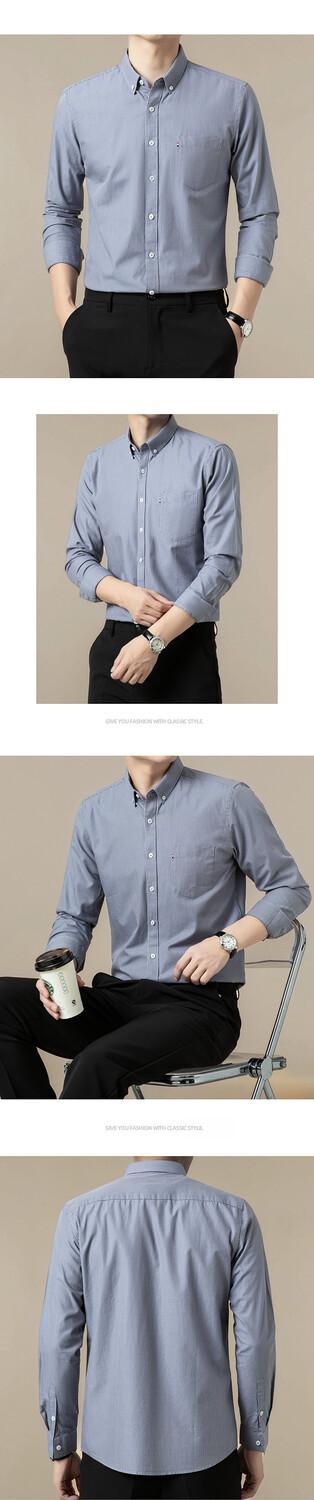 Camisa de Algodón de Manga Larga para Hombre con Rayas Finas y Bolsillos, Adecuada para Primavera y Otoño, Top Chaqueta Camisa Casual de Negocios