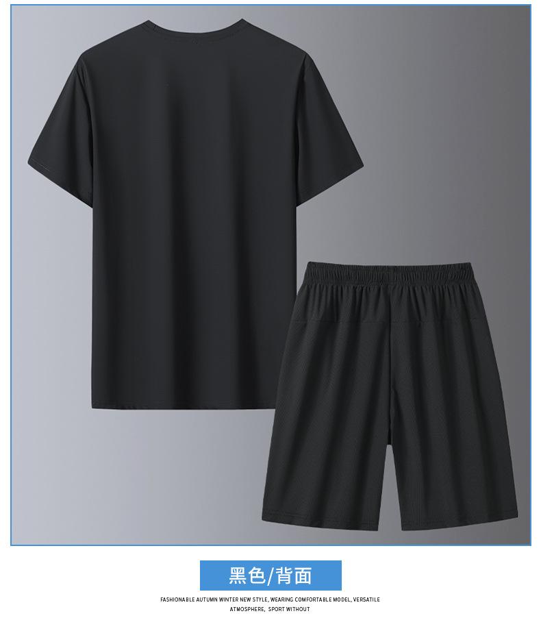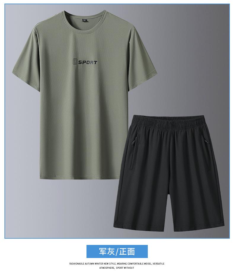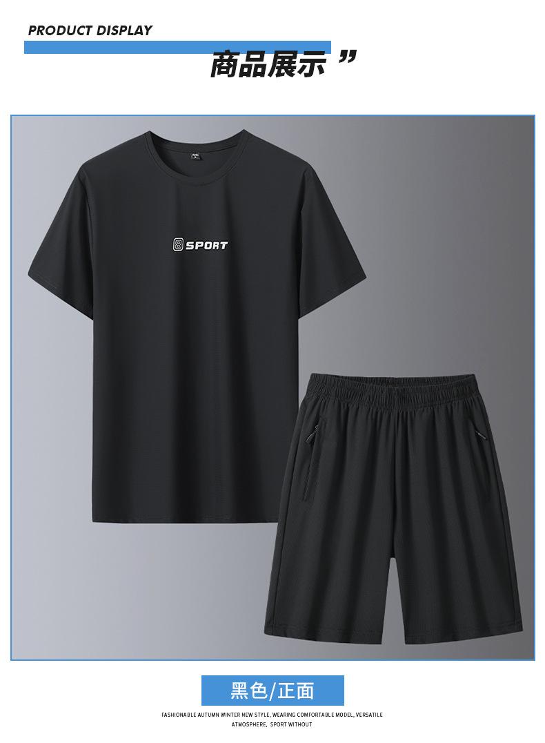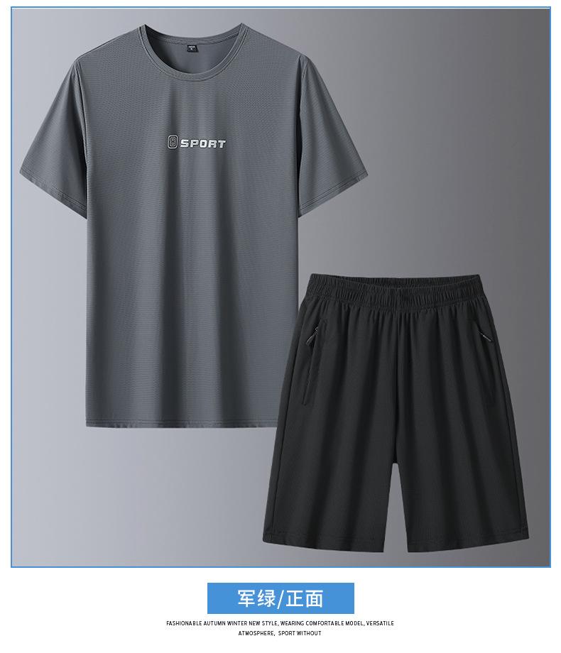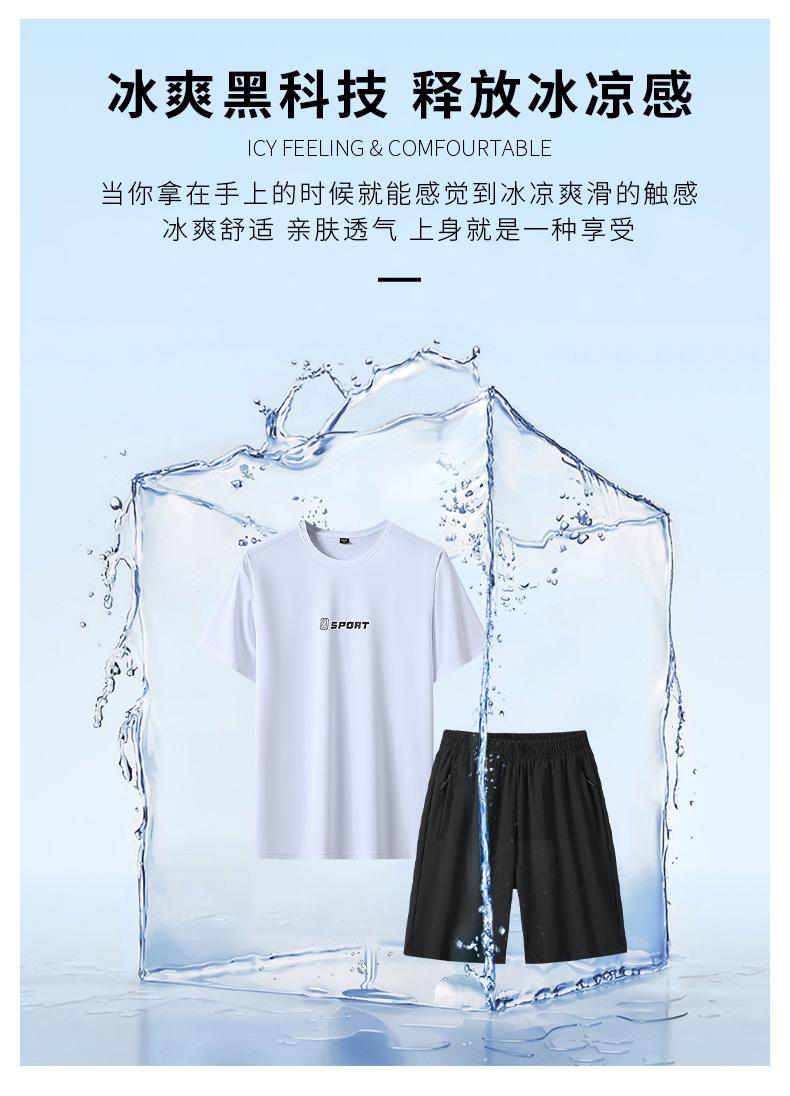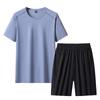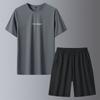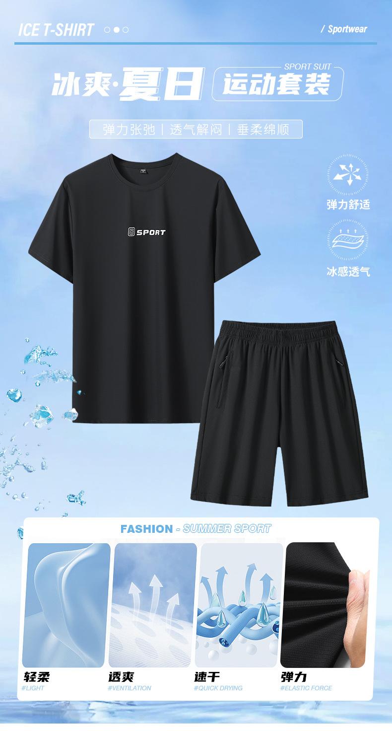 Traje de seda de hielo para hombre, verano, fresco, de secado rápido, elástico, camiseta de manga corta, pantalones cortos, traje deportivo de dos piezas de moda transfronteriza.