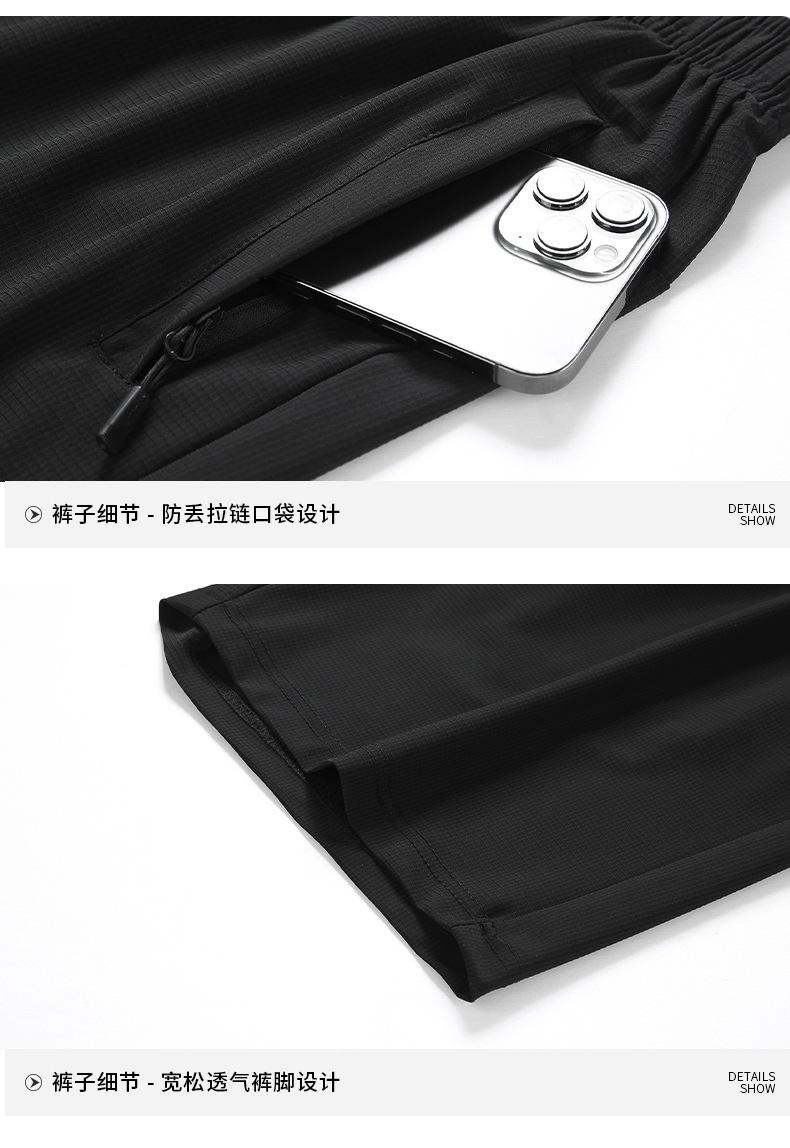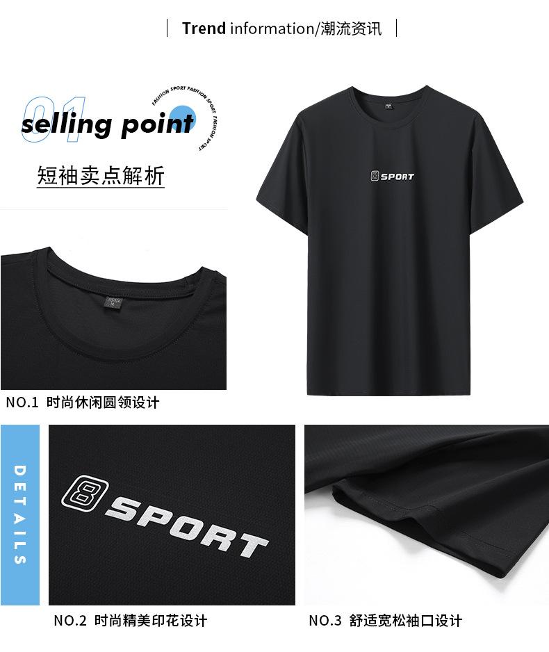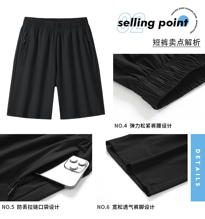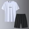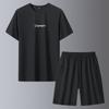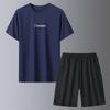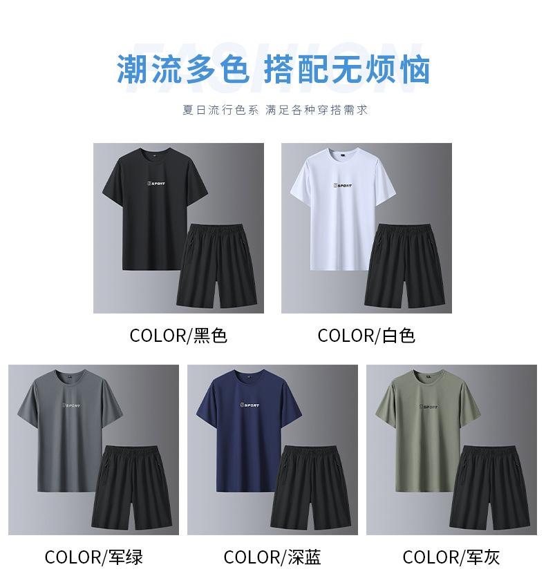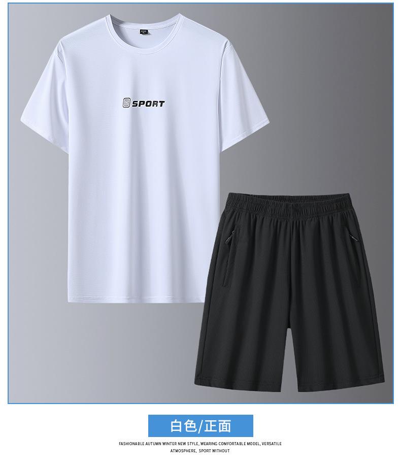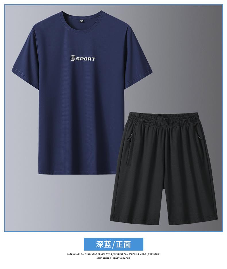 Traje de seda de hielo para hombre, verano, fresco, de secado rápido, elástico, camiseta de manga corta, pantalones cortos, traje deportivo de dos piezas de moda transfronteriza.