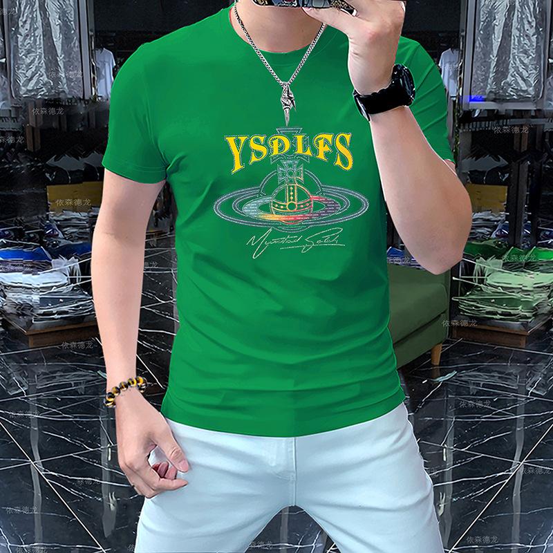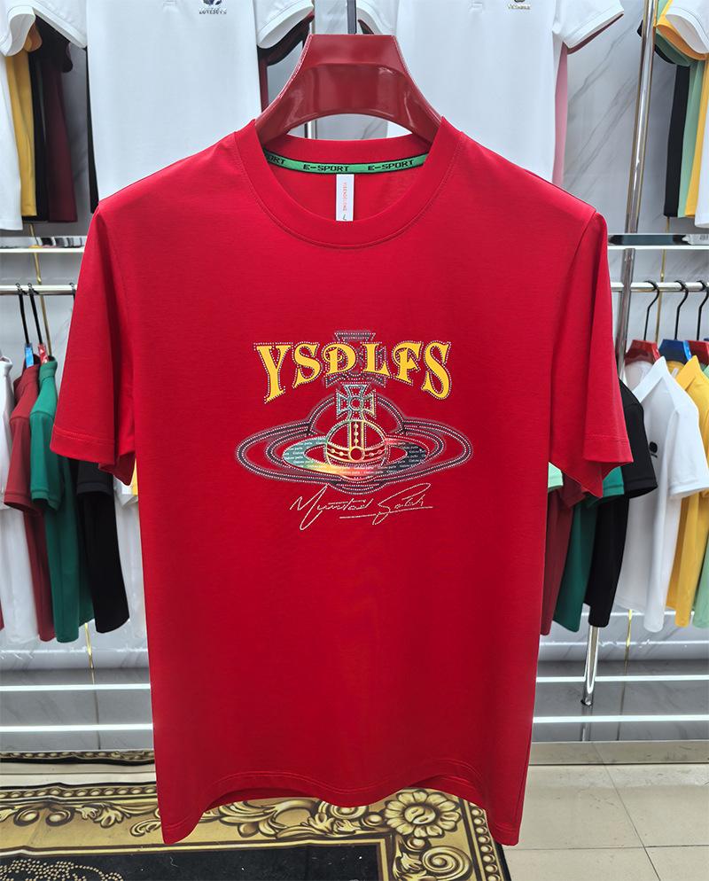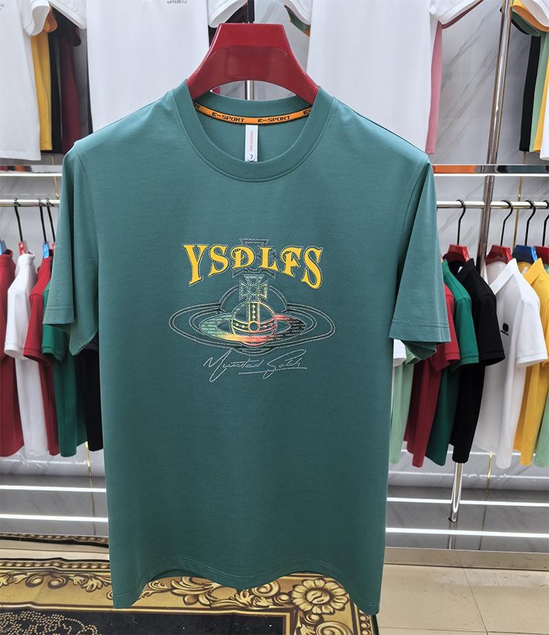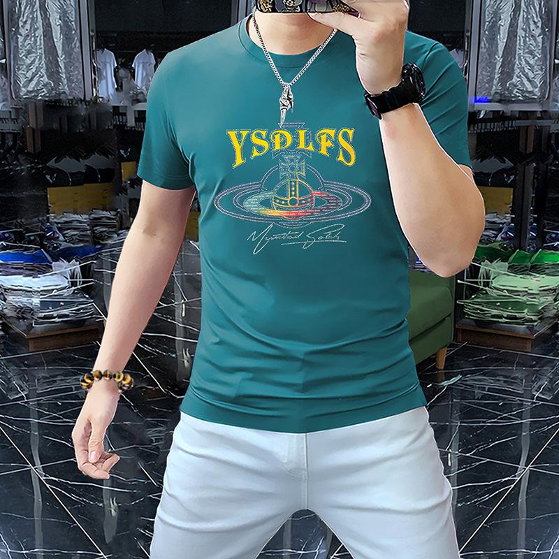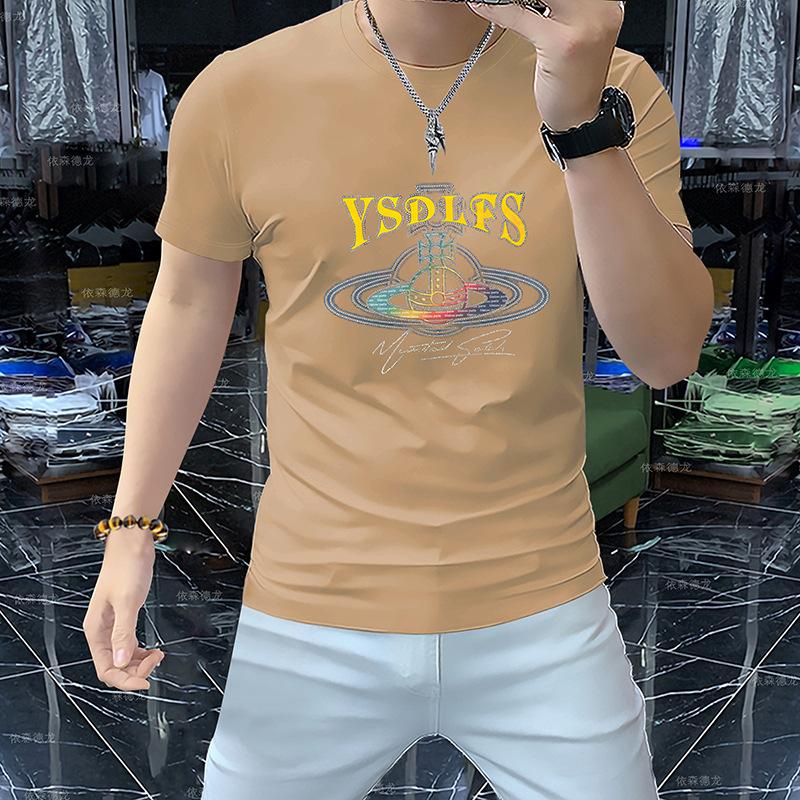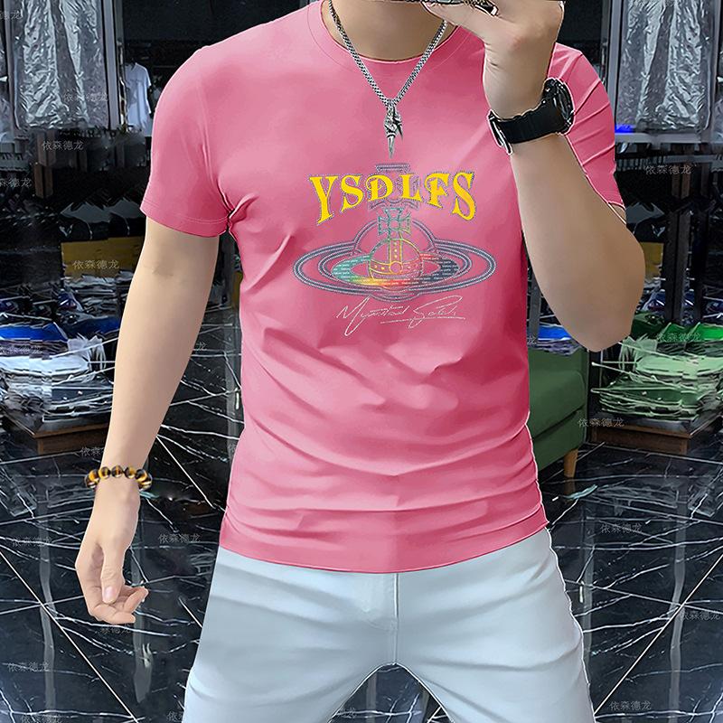 Verano nuevo algodón mercerizado europeo de alta gama casual para hombre cuello redondo relieve tridimensional manga corta top camiseta para hombre