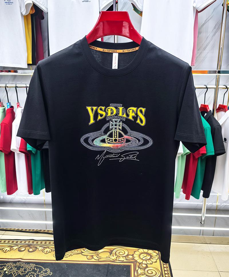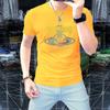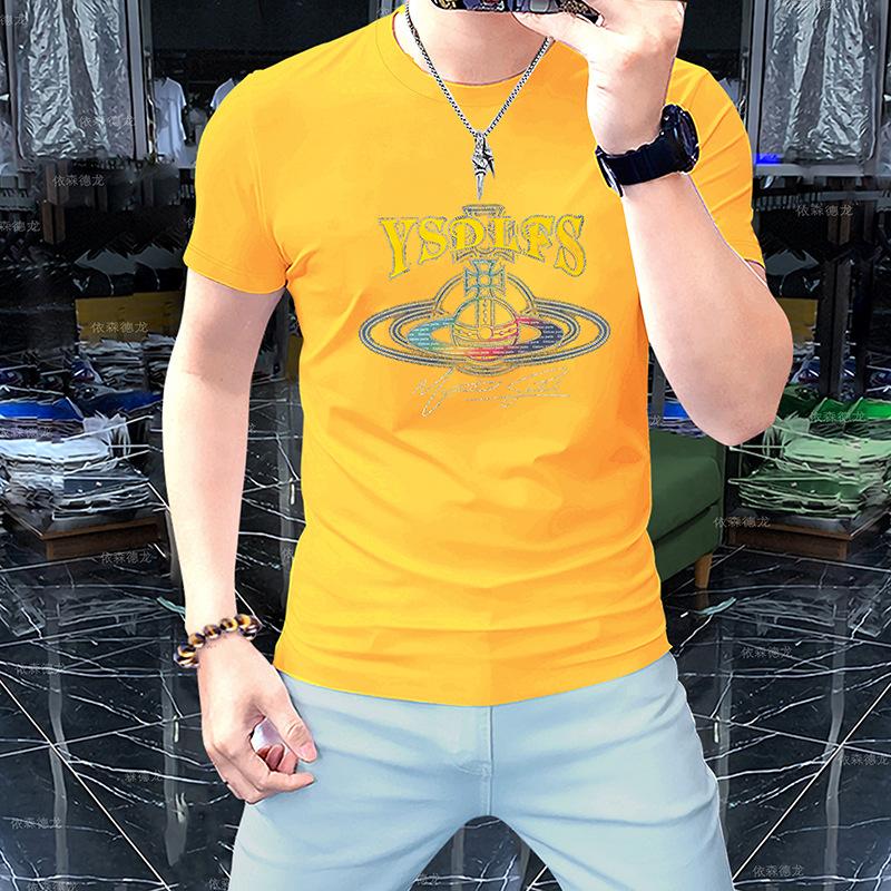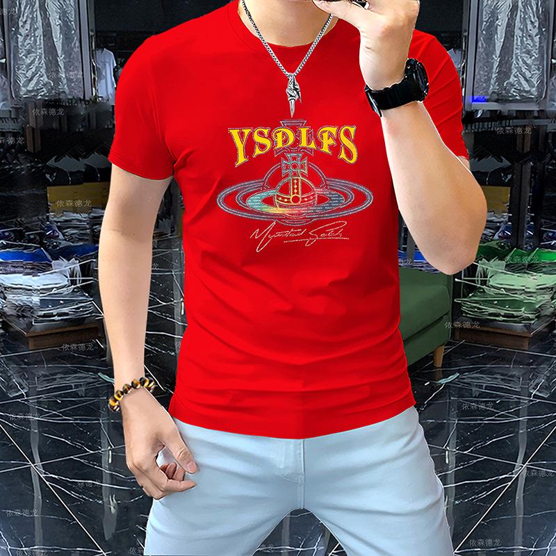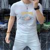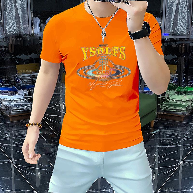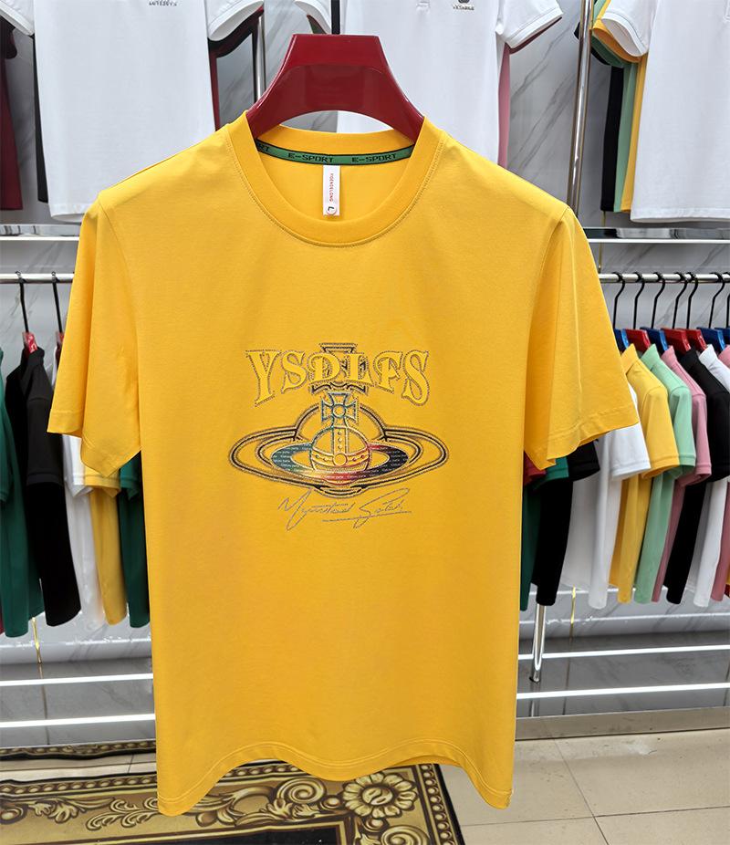 Verano nuevo algodón mercerizado europeo de alta gama casual para hombre cuello redondo relieve tridimensional manga corta top camiseta para hombre