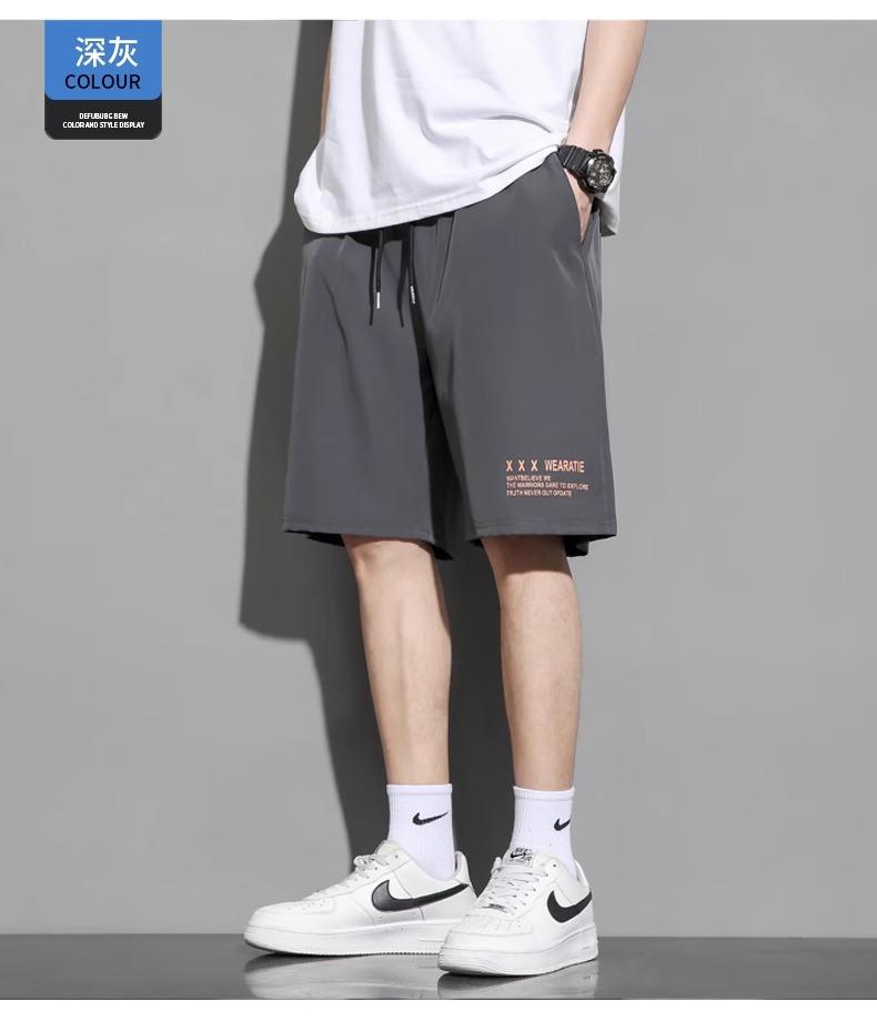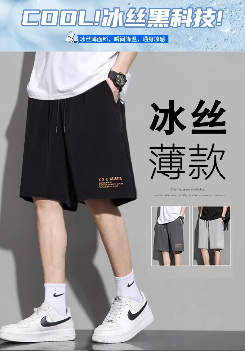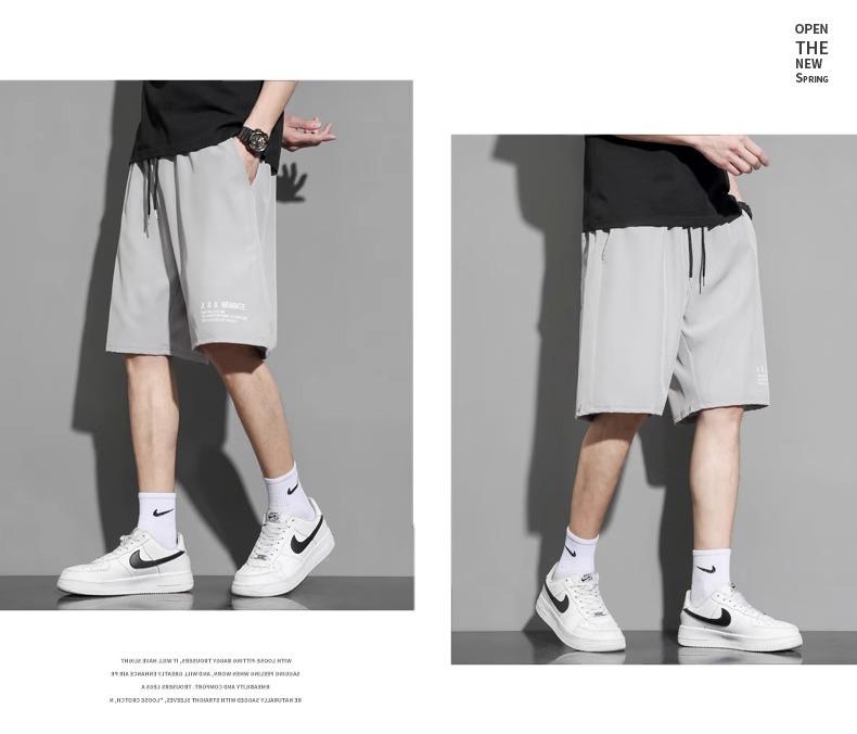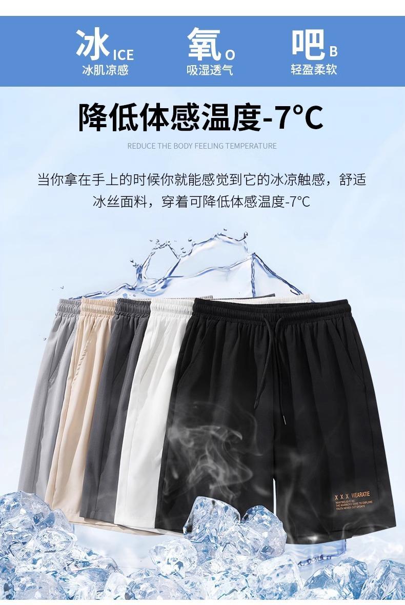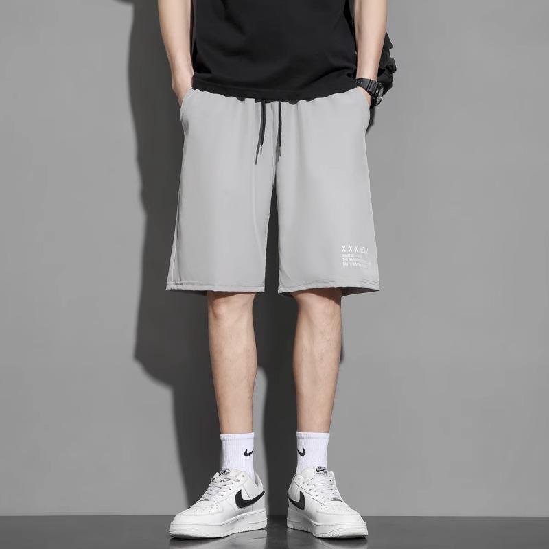 Pantalones cortos finos de seda de hielo para hombre, verano 2025, nuevos pantalones deportivos casuales, de secado rápido, transpirables, sueltos, con aire acondicionado, cinco