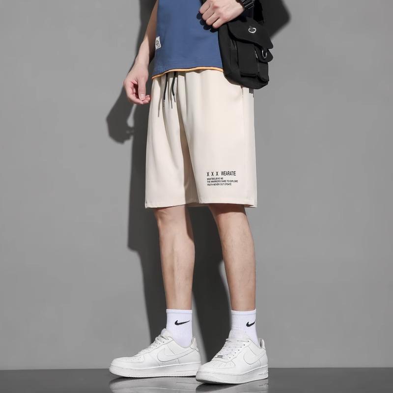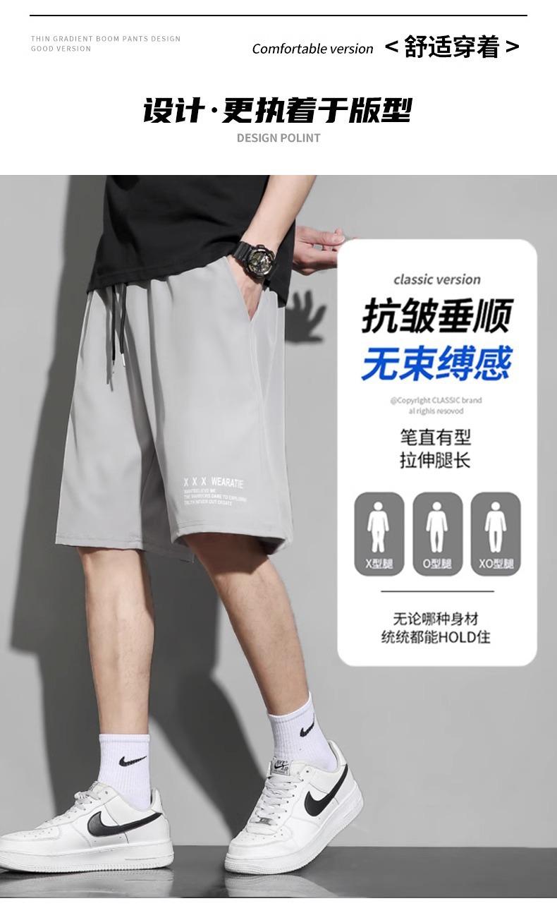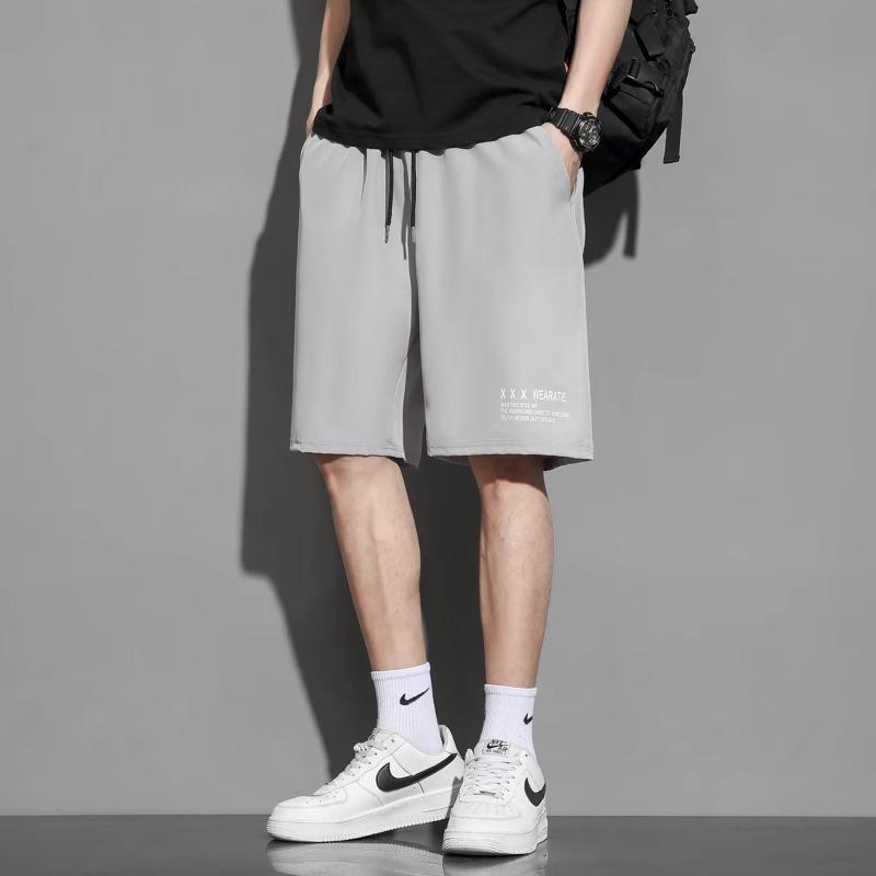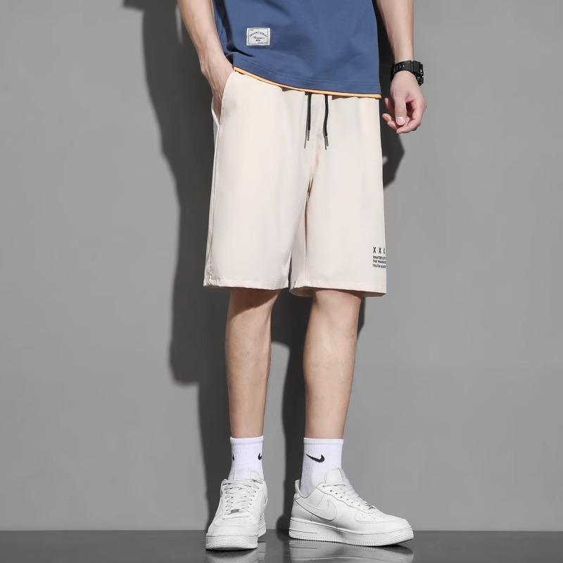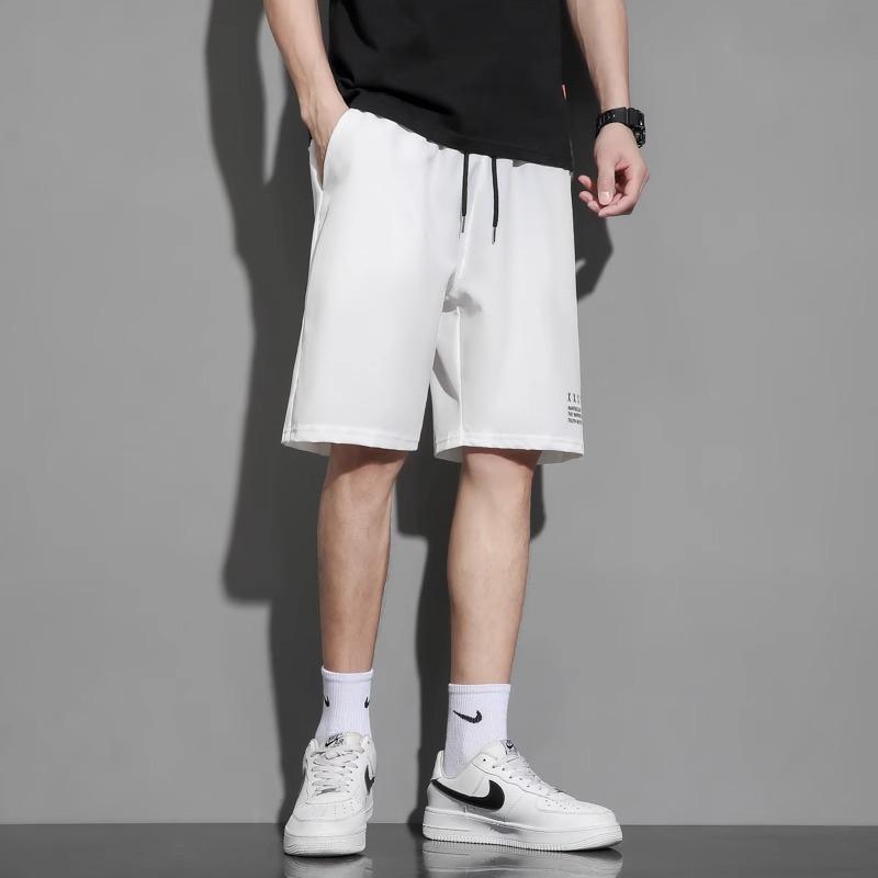 Pantalones cortos finos de seda de hielo para hombre, verano 2025, nuevos pantalones deportivos casuales, de secado rápido, transpirables, sueltos, con aire acondicionado, cinco