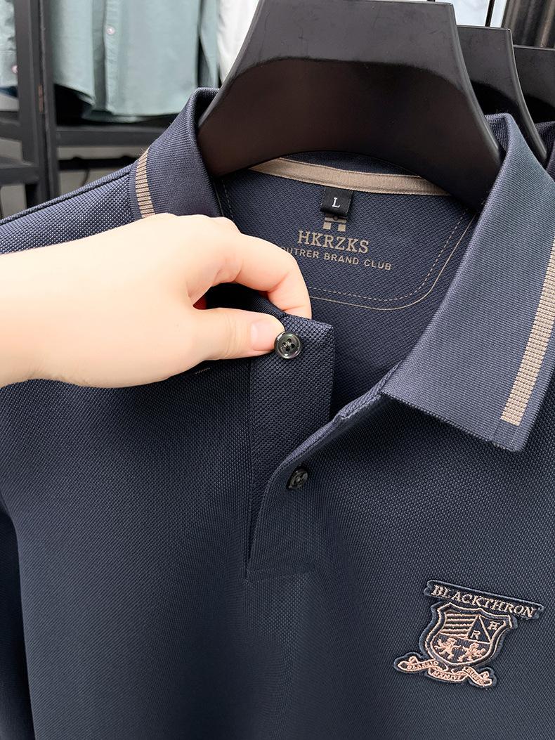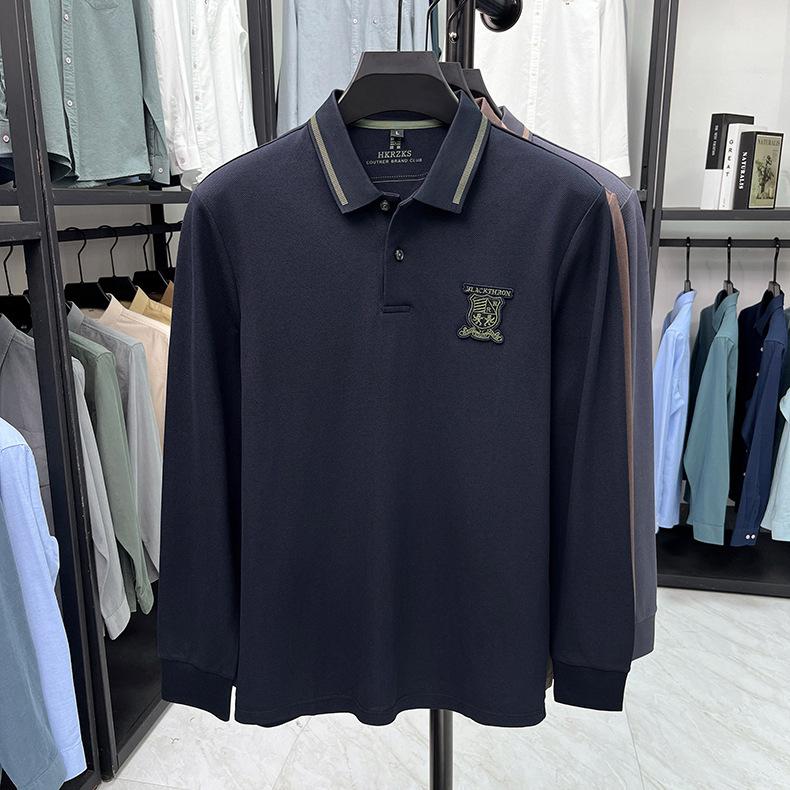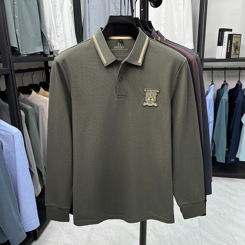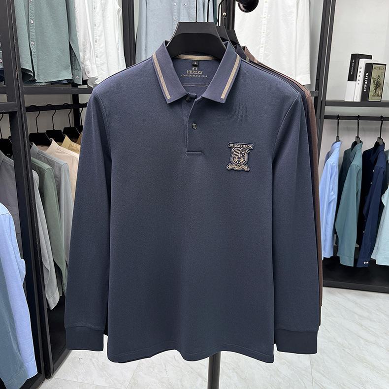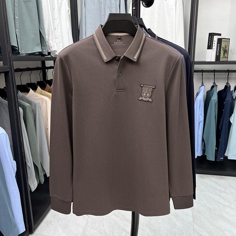 Camisa polo de primavera y otoño para hombre, nueva camisa de algodón de manga larga con solapa para hombre de mediana edad, informal, de negocios, de algodón para papá.