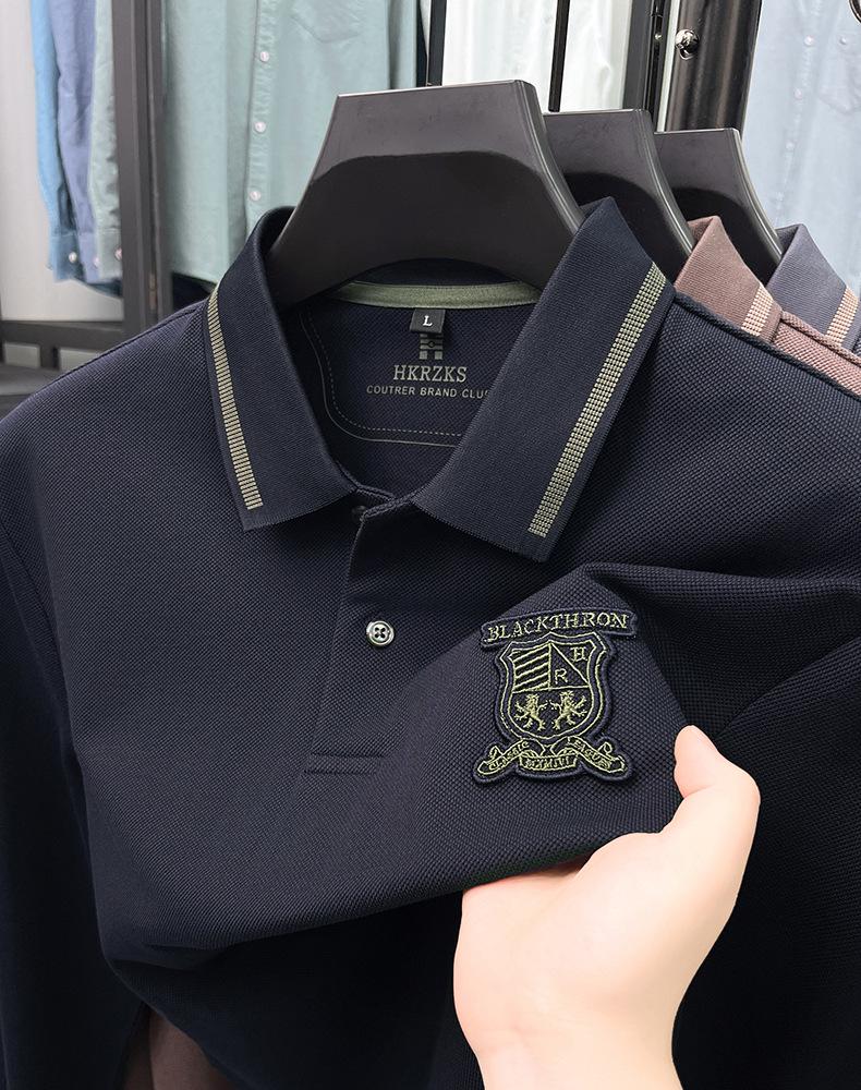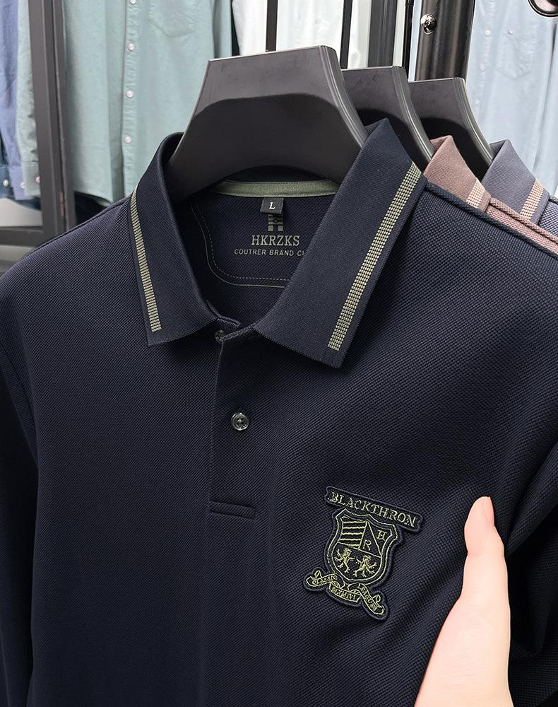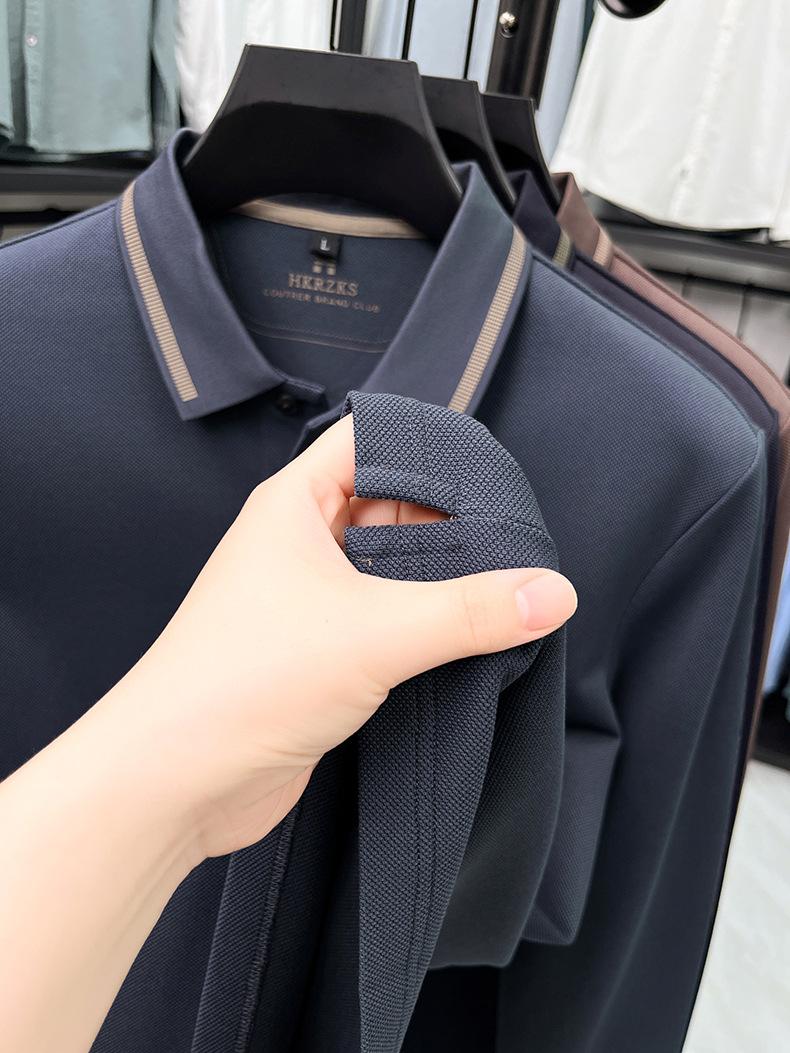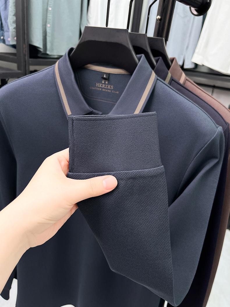 Camisa polo de primavera y otoño para hombre, nueva camisa de algodón de manga larga con solapa para hombre de mediana edad, informal, de negocios, de algodón para papá.