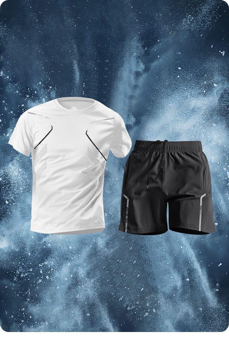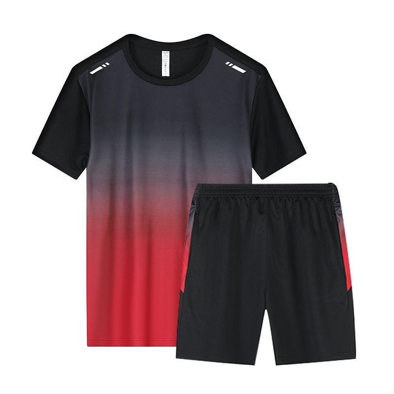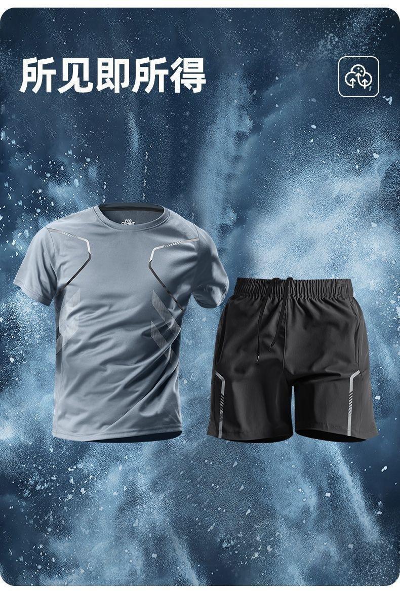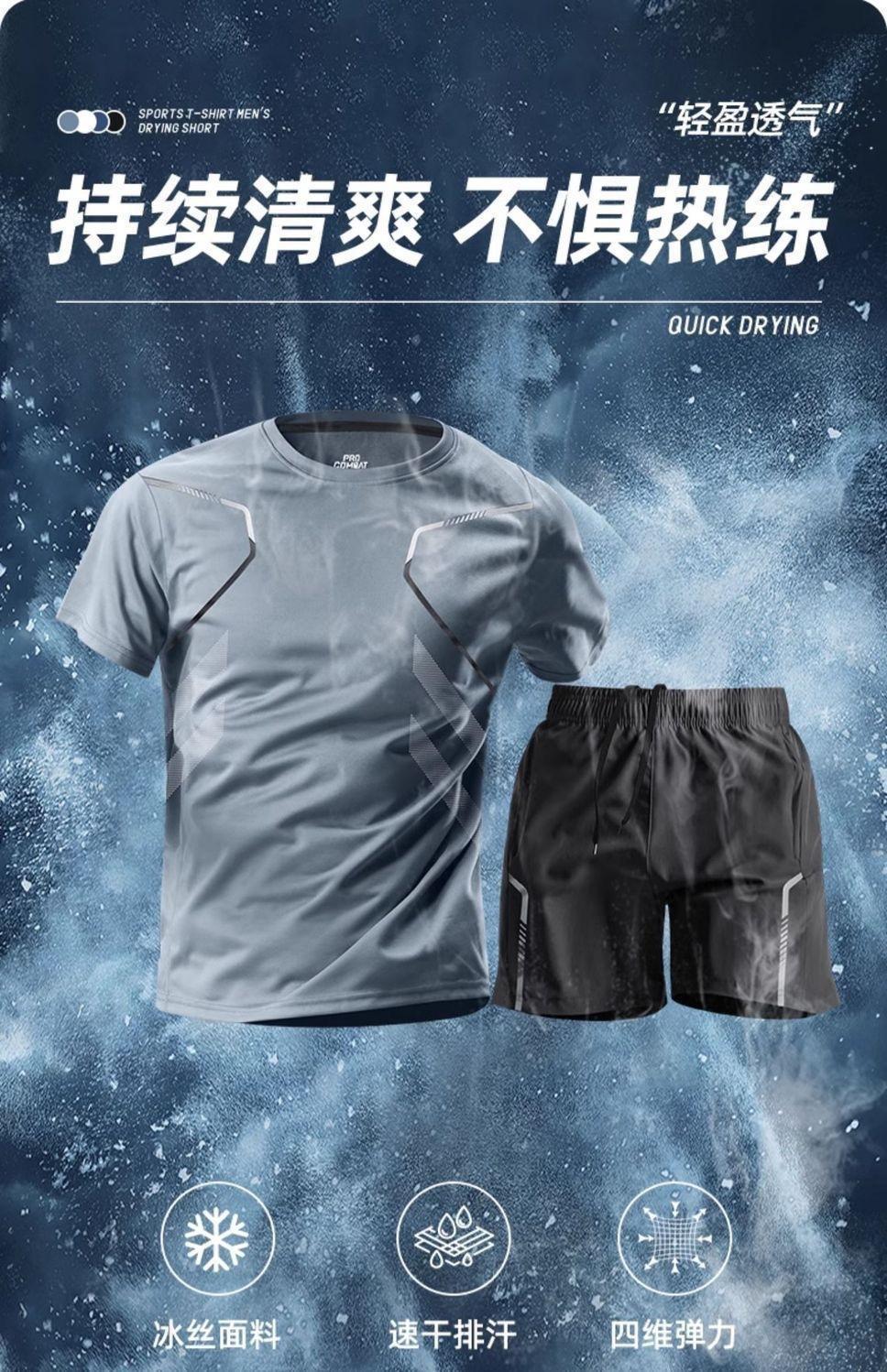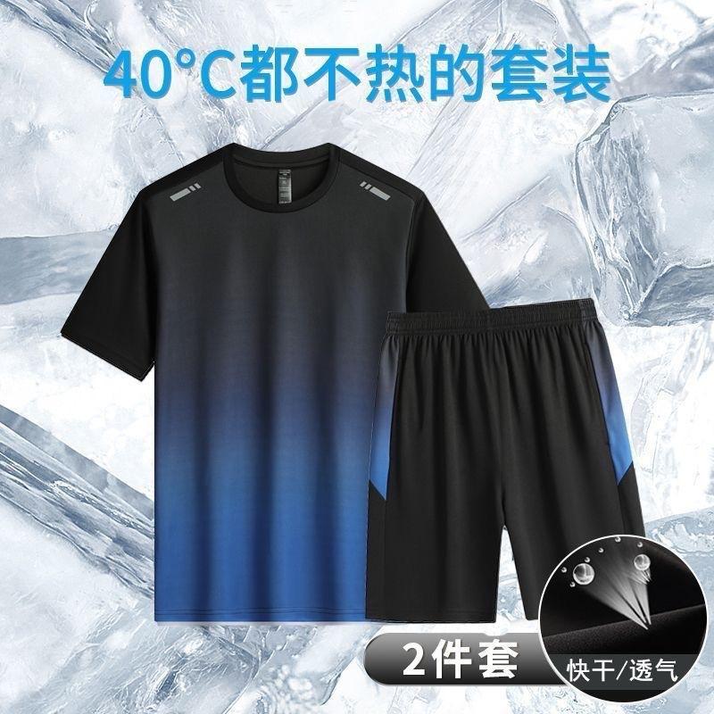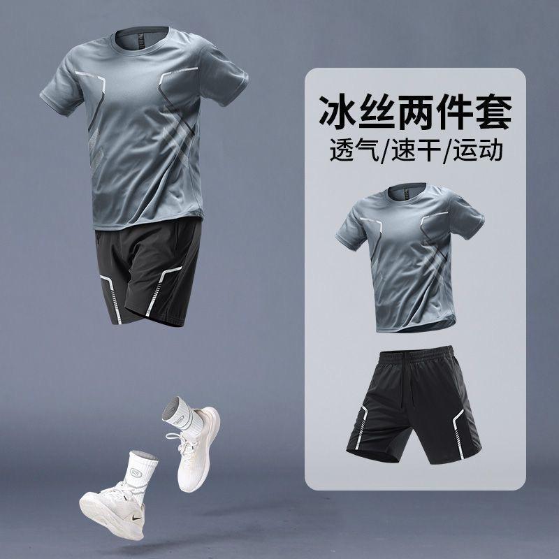 Traje deportivo para hombre Venta al por mayor Verano Transpirable para correr Seda de hielo Estampado Ropa de secado rápido Camiseta de manga corta Entrenamiento transpirable Fitness