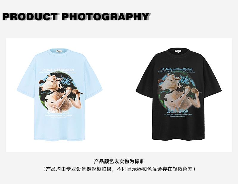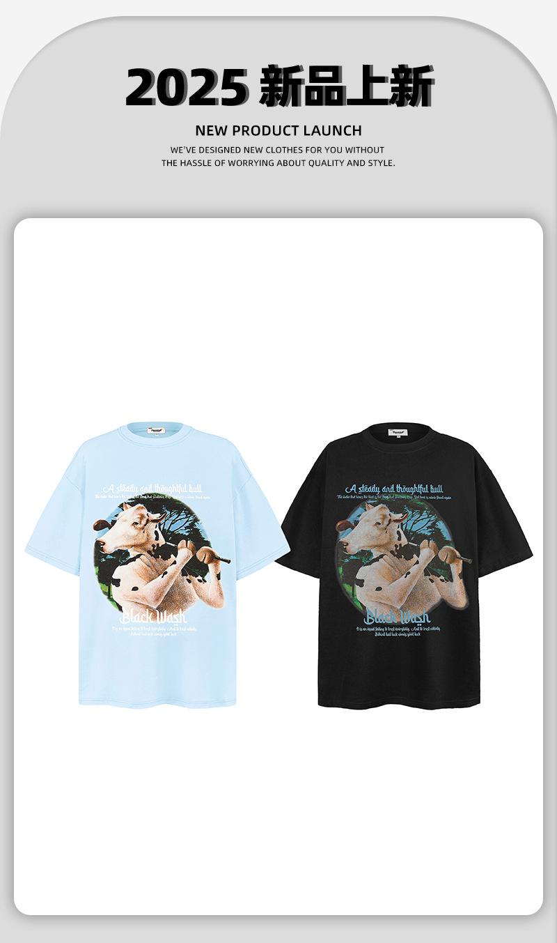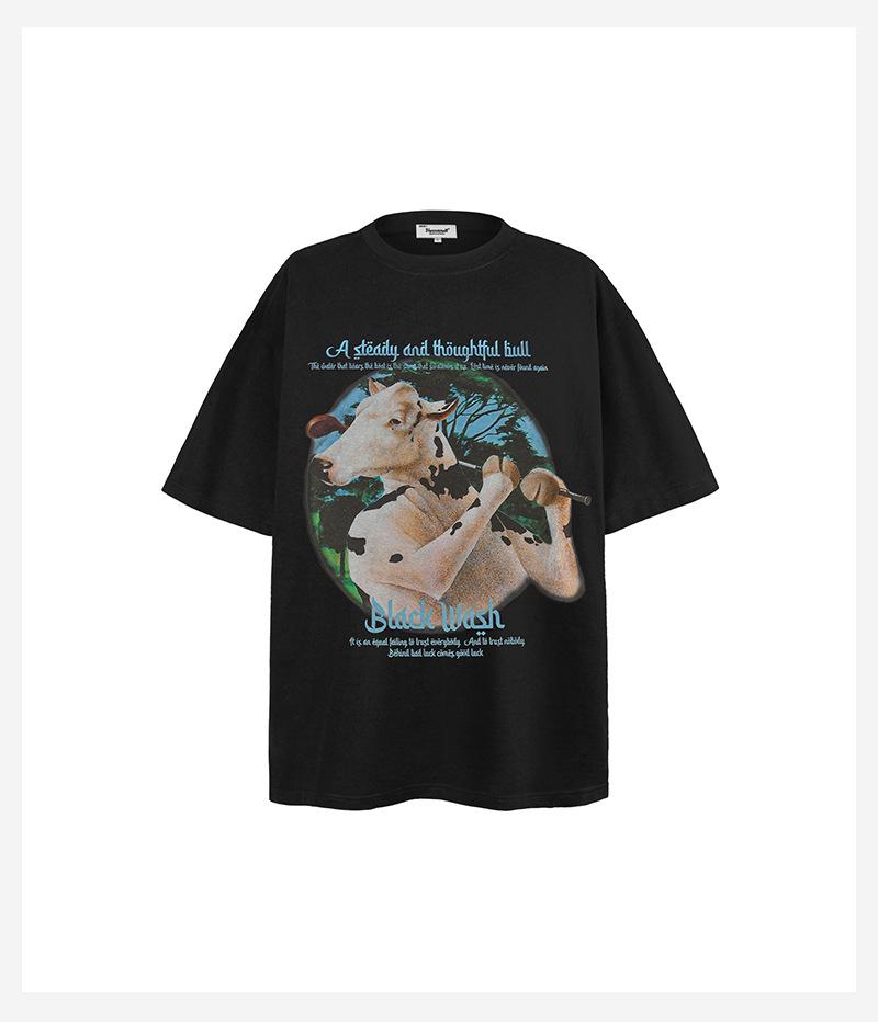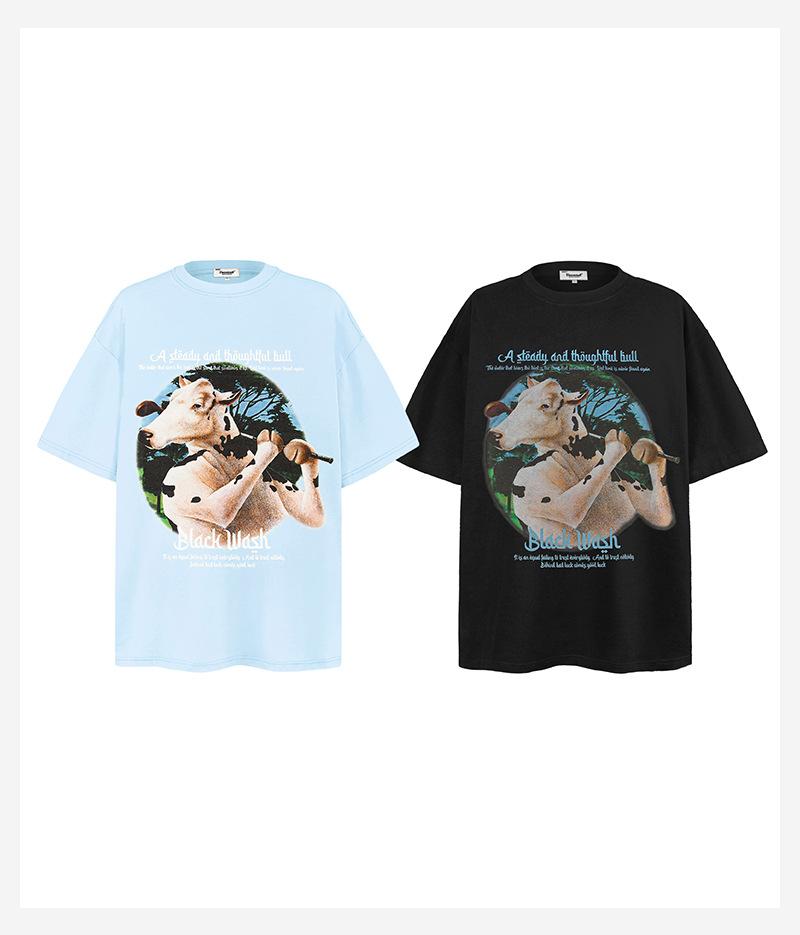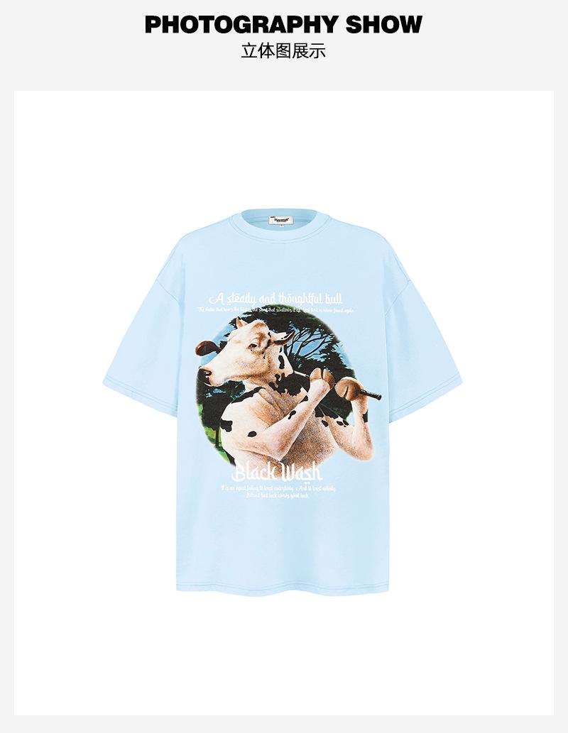 Camiseta de manga corta con estampado divertido de dibujos animados americanos de algodón pesado de 250 g para hombres y mujeres, holgada de verano, marca de tendencia de calle alta, venta al por mayor