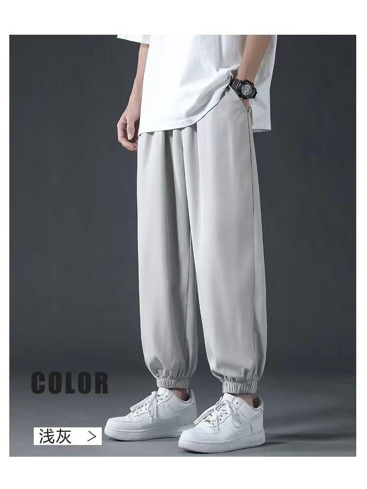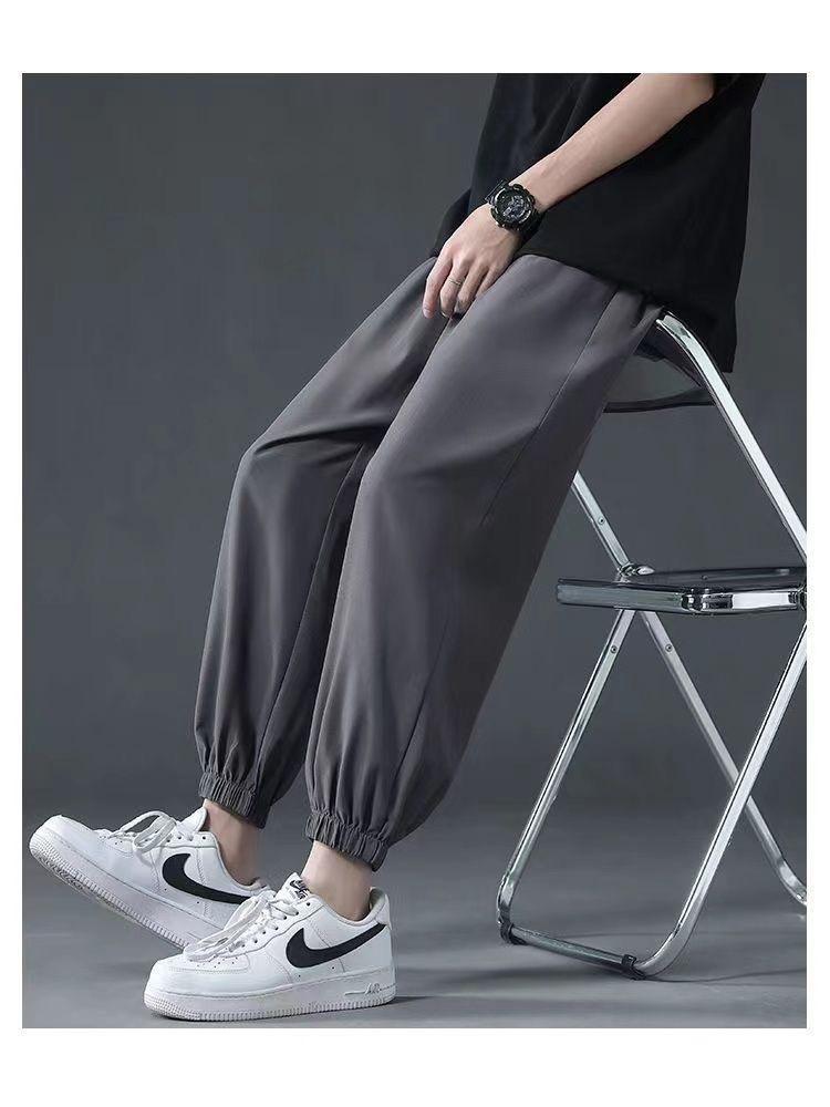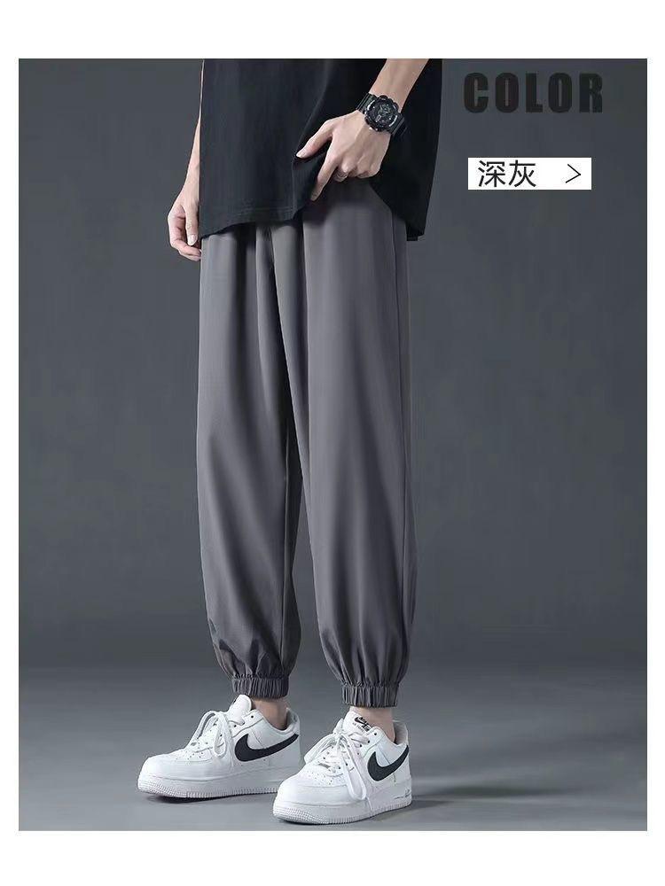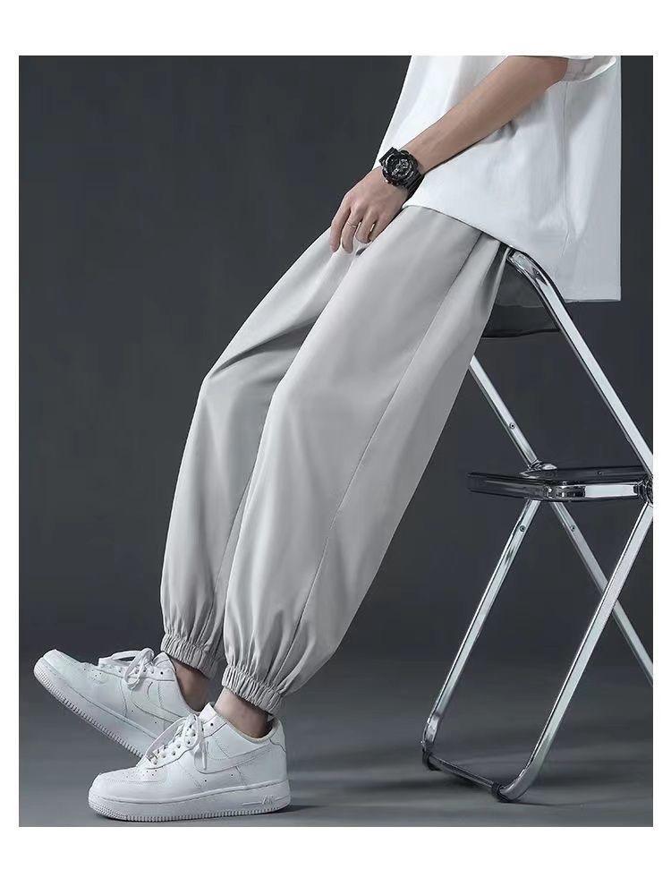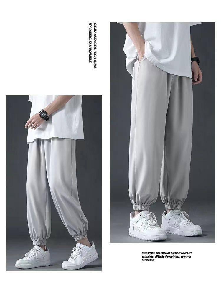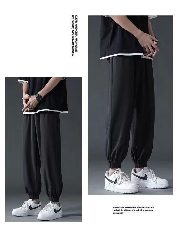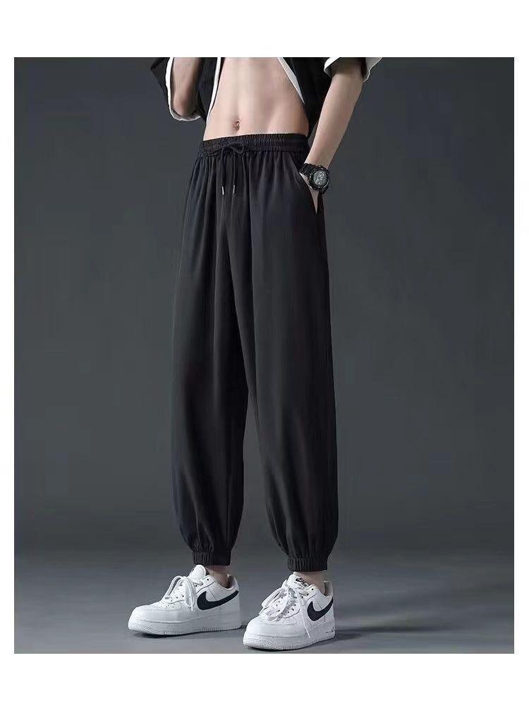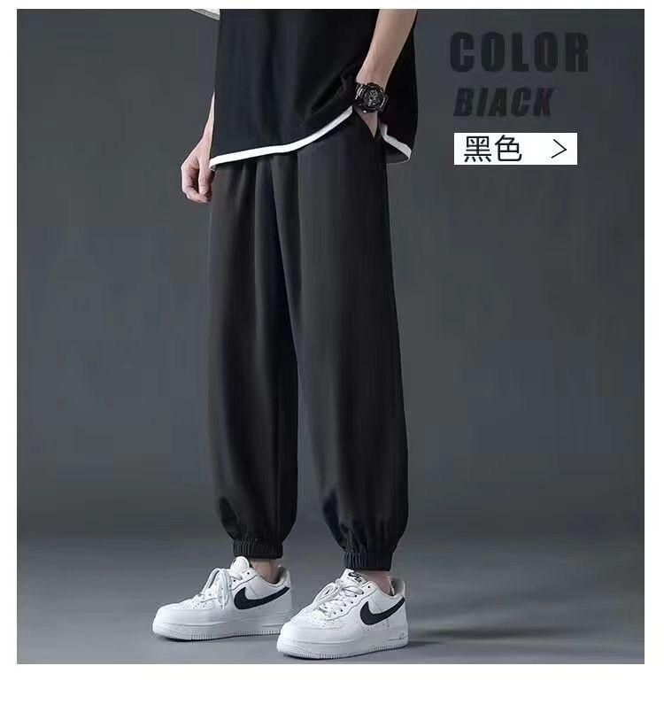 Pantalones Capri Casuales Frescos de Seda de Hielo para Hombre Verano Nuevo Pantalones de Jogger Negros Sueltos Modernos para Jóvenes