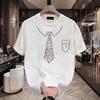 Camiseta blanca de manga corta para hombre, verano 2025, nueva, holgada, de marca moderna, estilo americano, informal, de media manga.