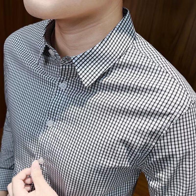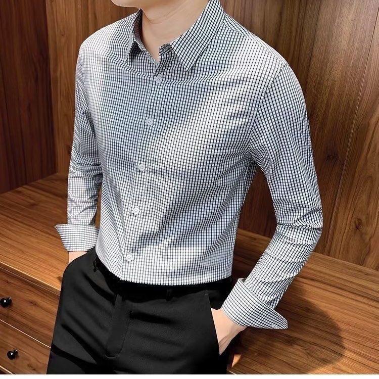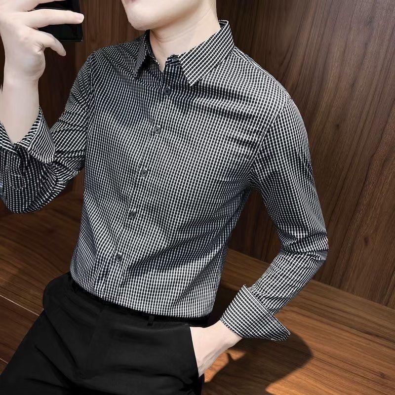 Primavera y verano nuevo 2024 camisa de cuadros de manga larga slim para hombre camisa de negocios versión coreana de camisa casual británica