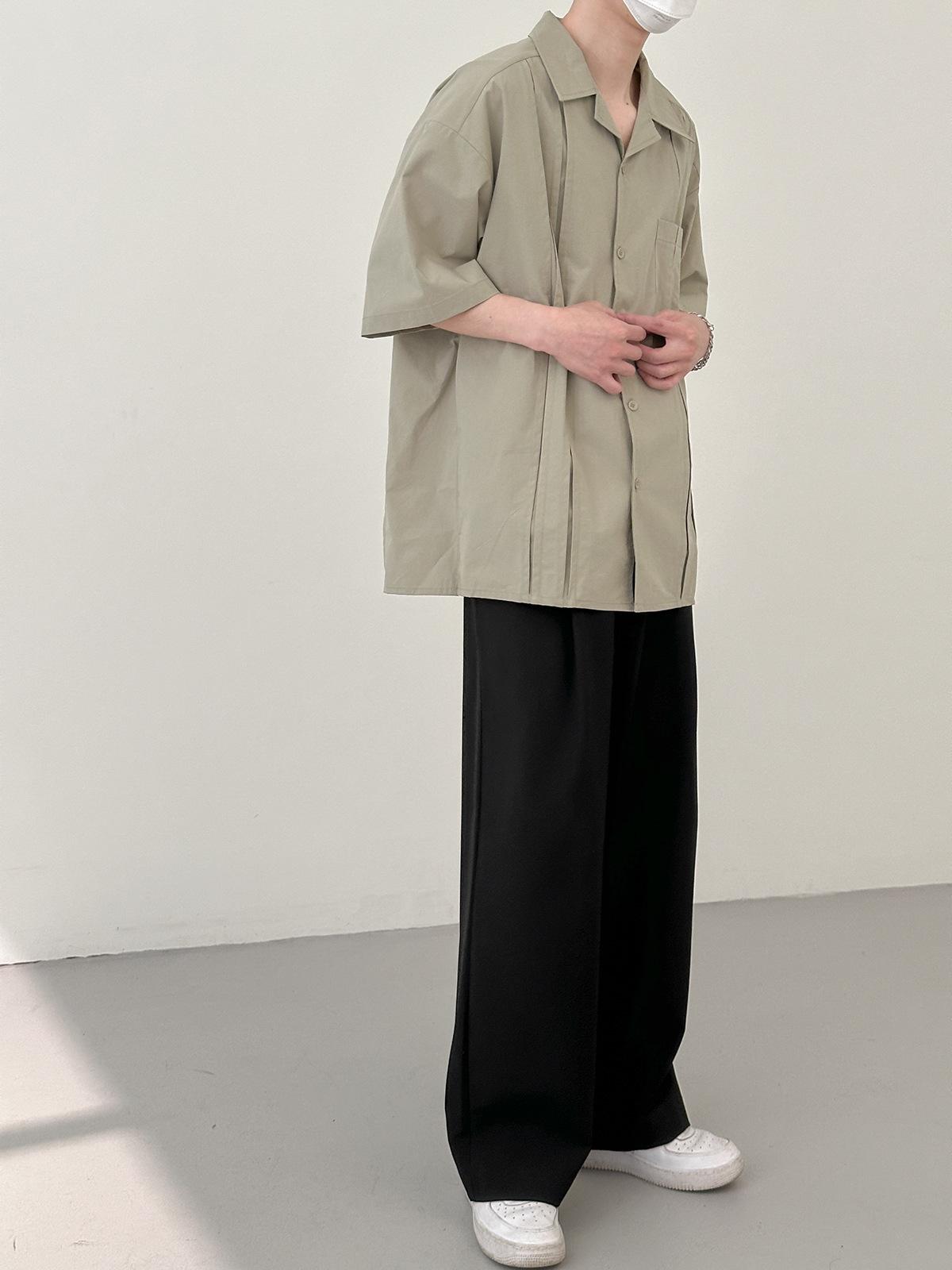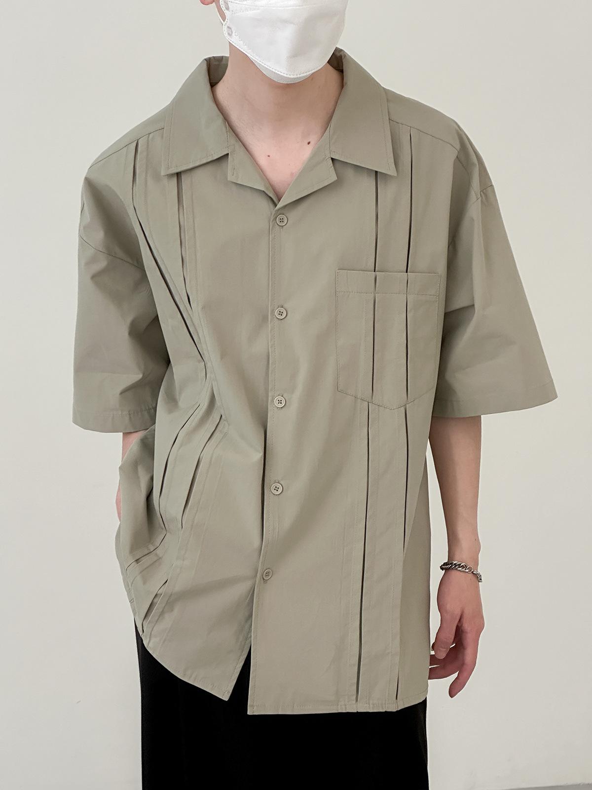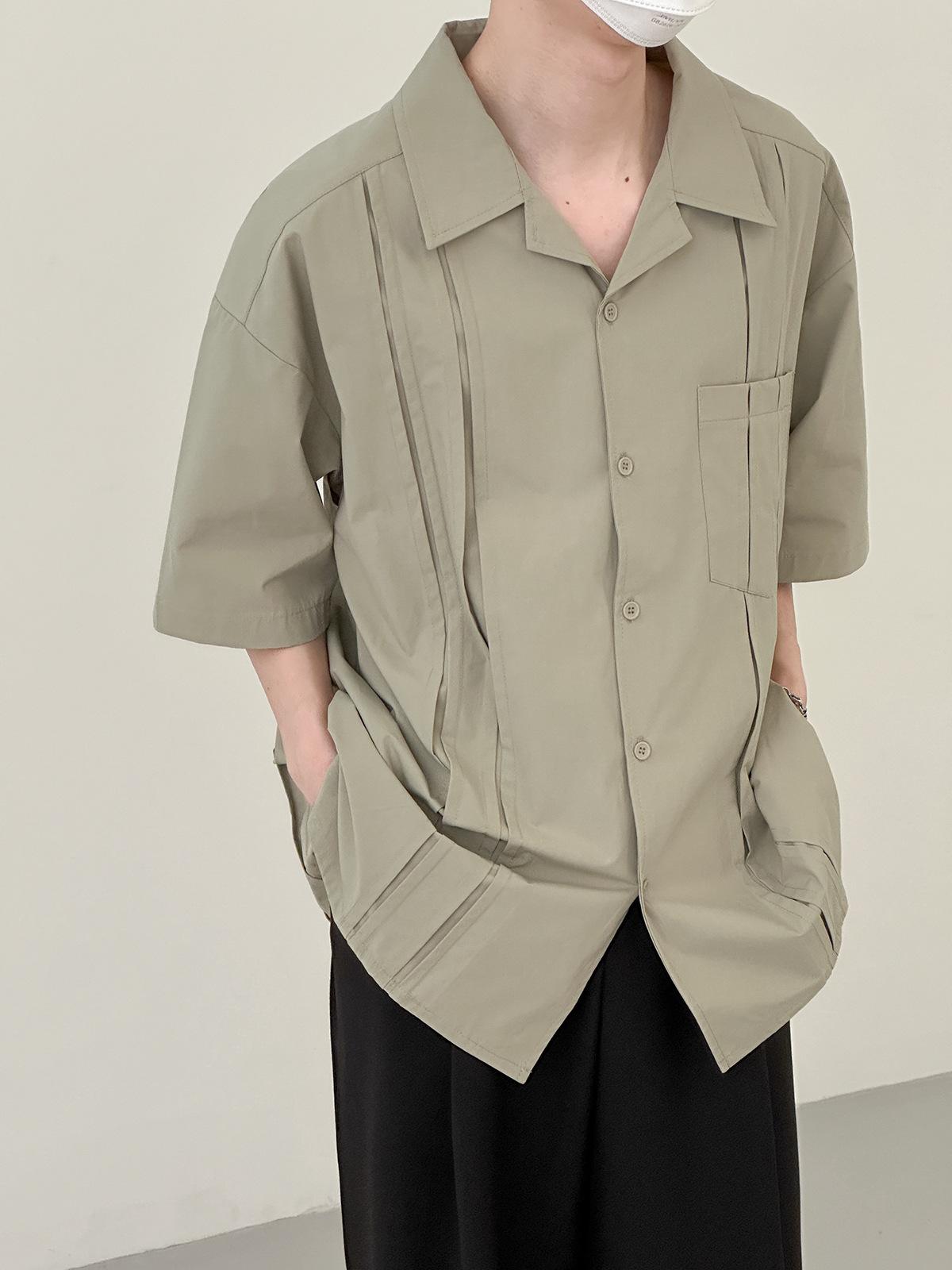 Camisa de manga corta de alta gama para hombre, estilo informal, holgada, con cuello cubano y diseño de nicho, de verano 2025