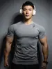 Camiseta transfronteriza ajustada de secado rápido, traje de entrenamiento deportivo para correr, camisa de base altamente elástica, traje de fitness para correr por la mañana de media manga para hombres